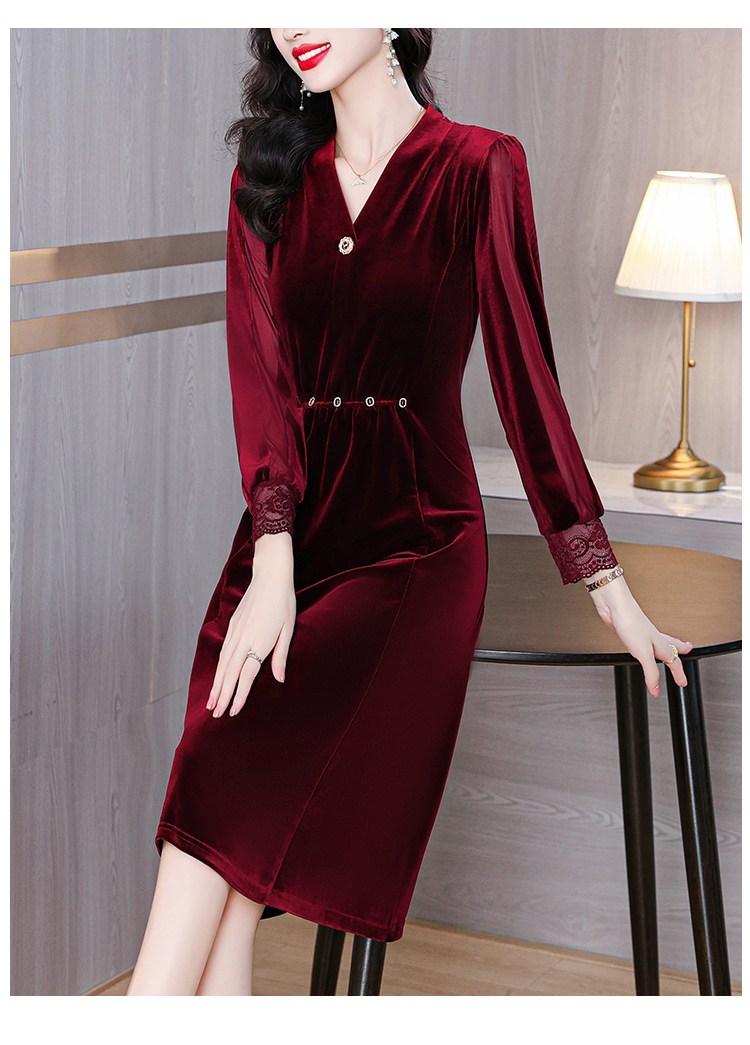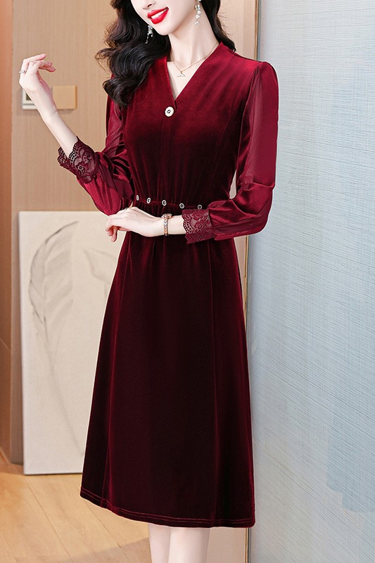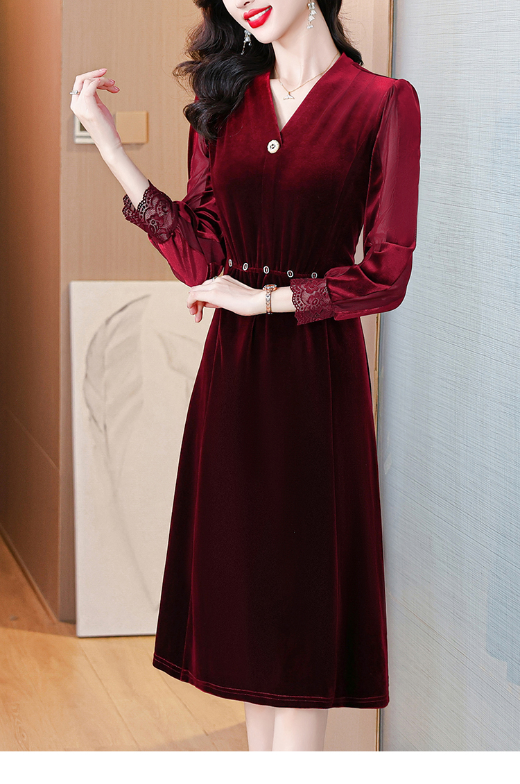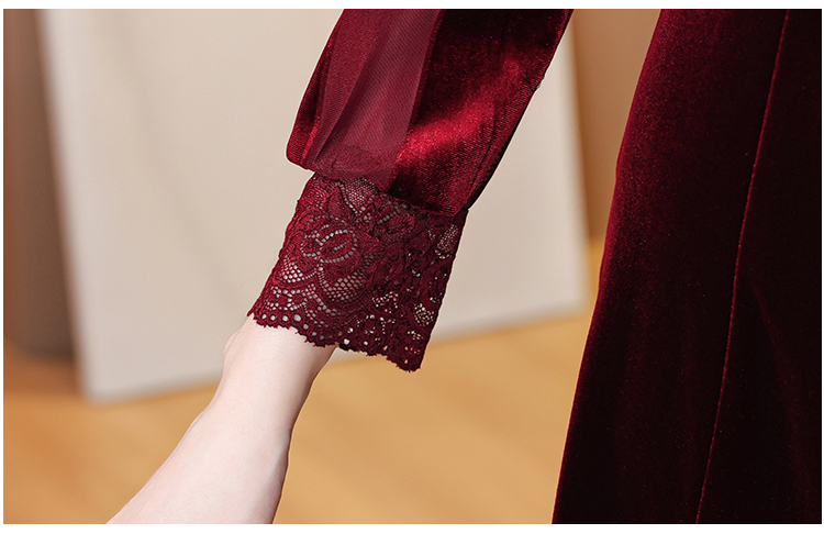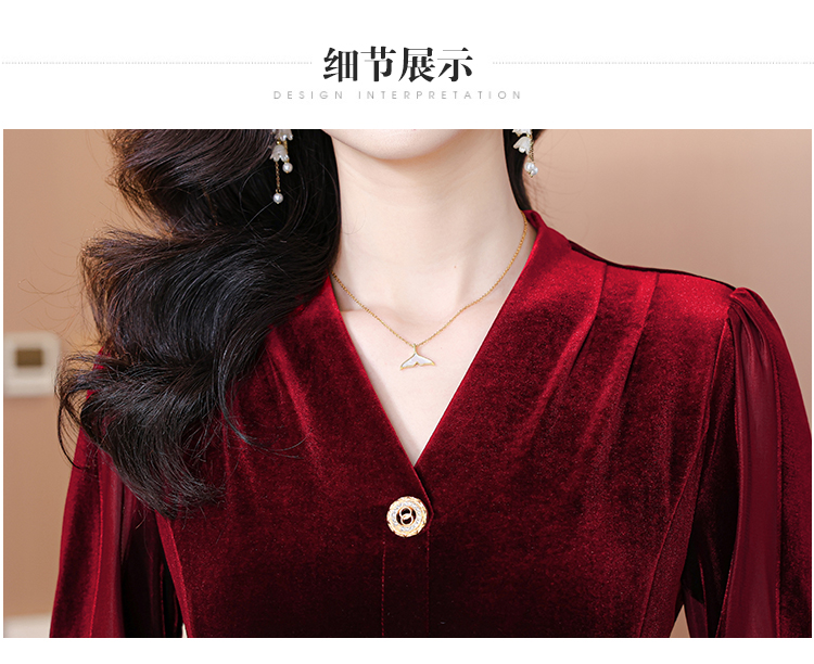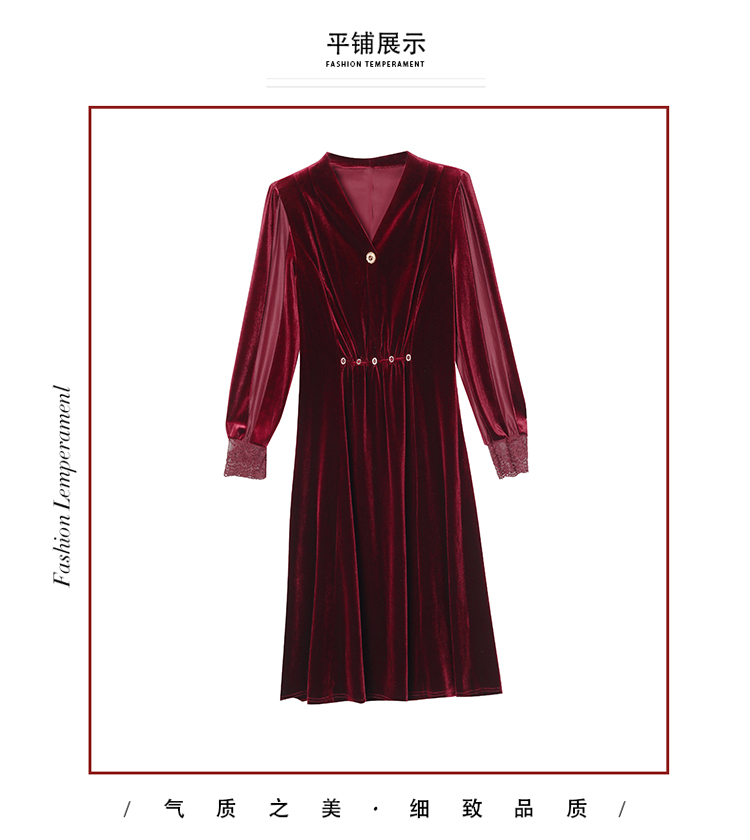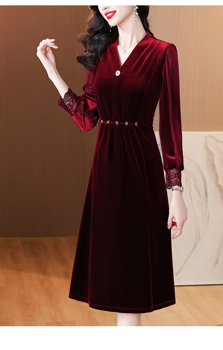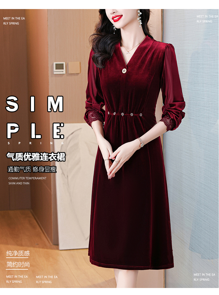 MY13976# 新款洋气高端婚宴妈妈内搭打底酒红色喜婆婆金丝绒连衣裙女裝貨源服裝批發