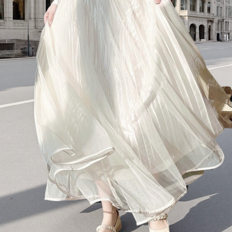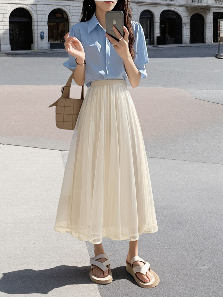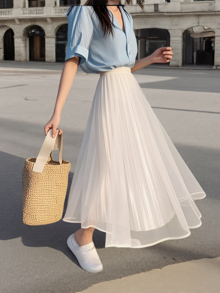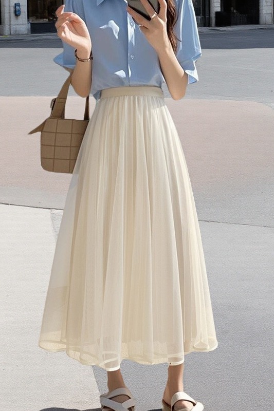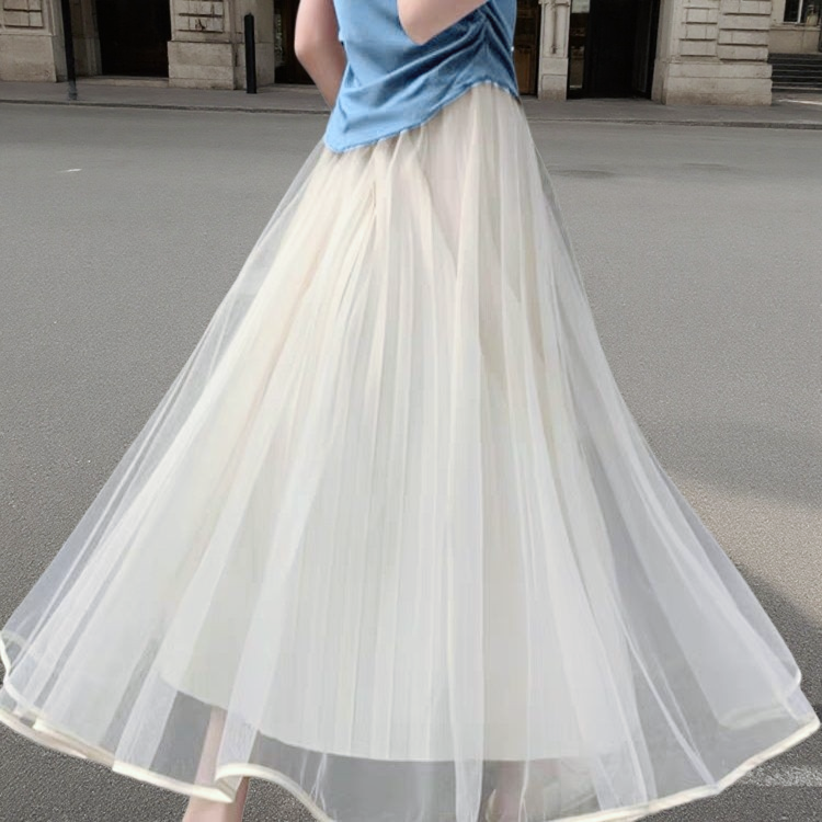 MY13984# 正反两面穿网纱裙 新款网纱百褶半身裙 女中长款仙女大摆a字裙子女裝貨源服裝批發