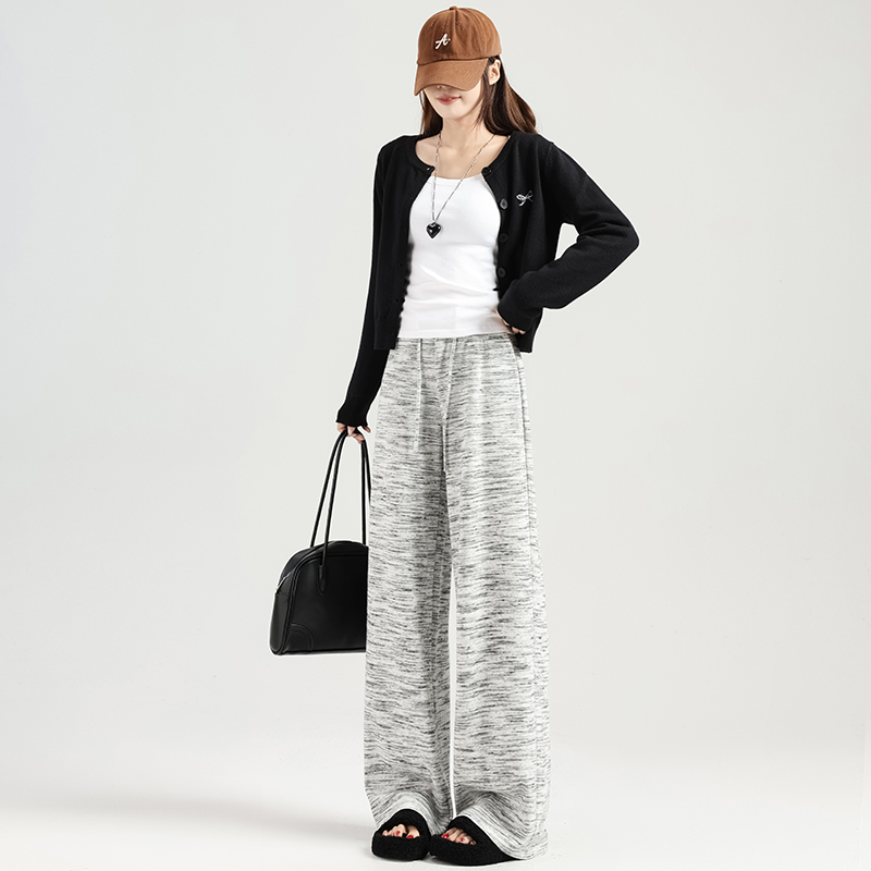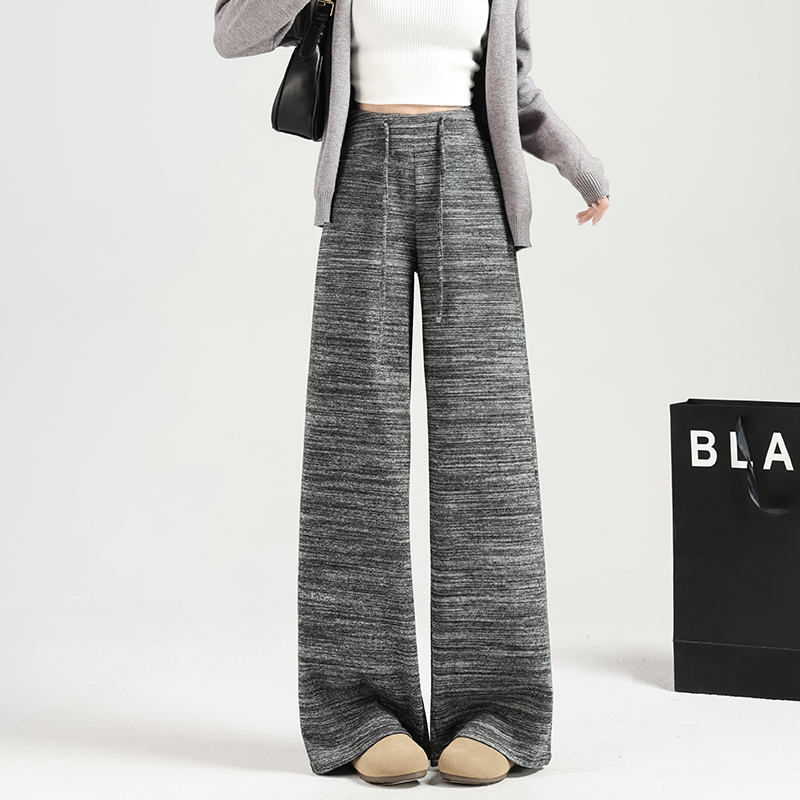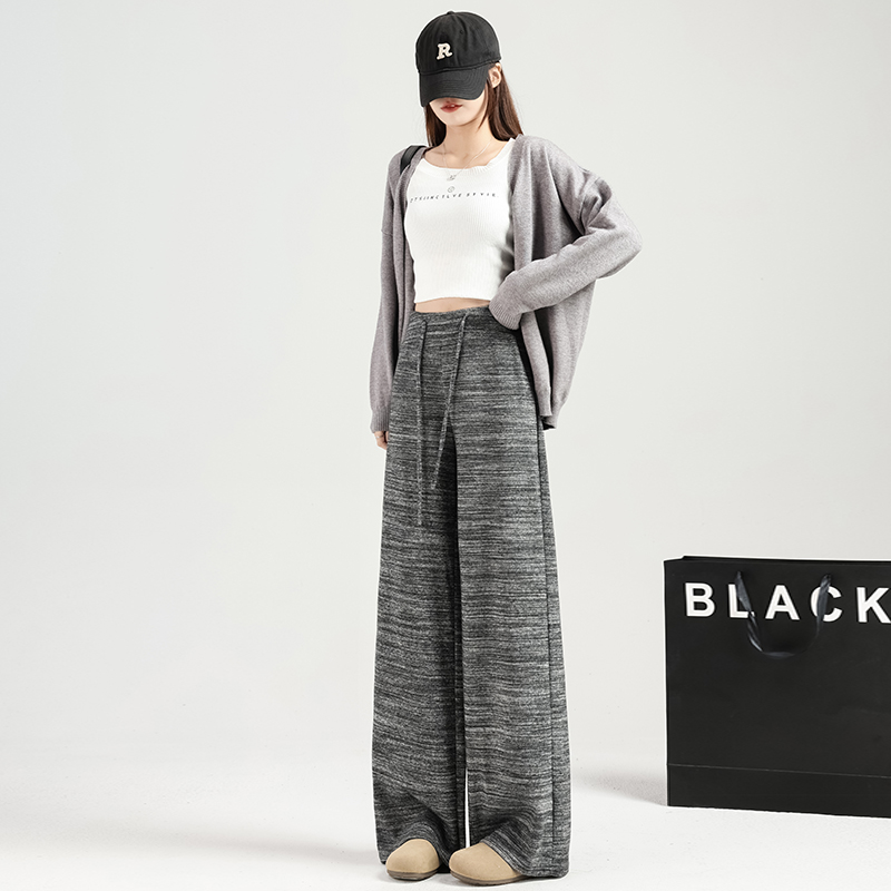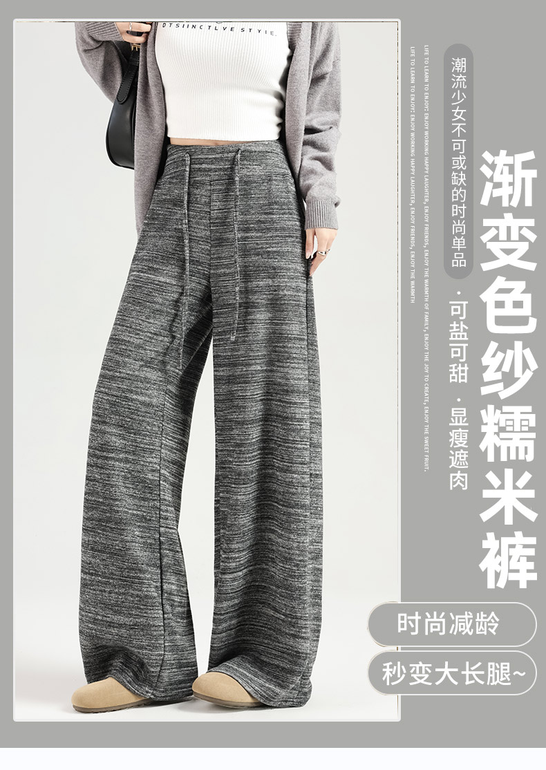 MY14015# 软糯条纹糯米裤慵懒感高腰扎染裤复古针织休闲长裤女裝貨源服裝批發