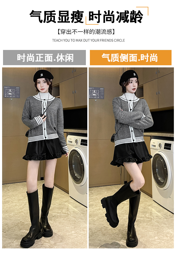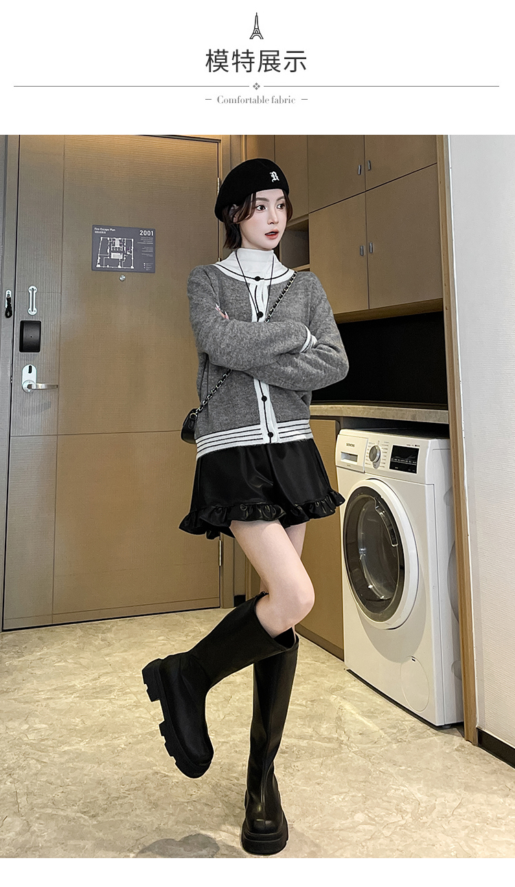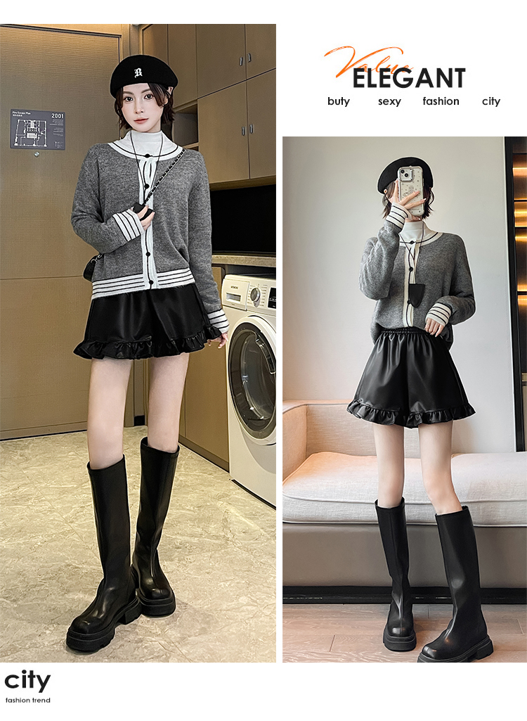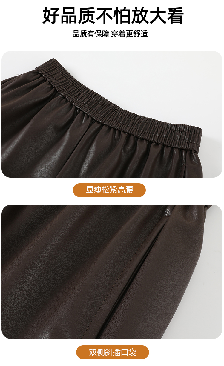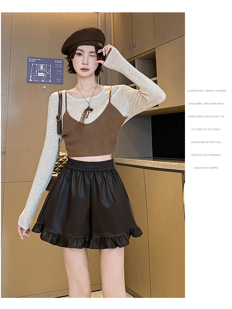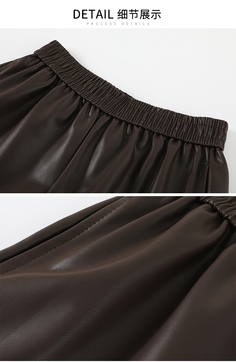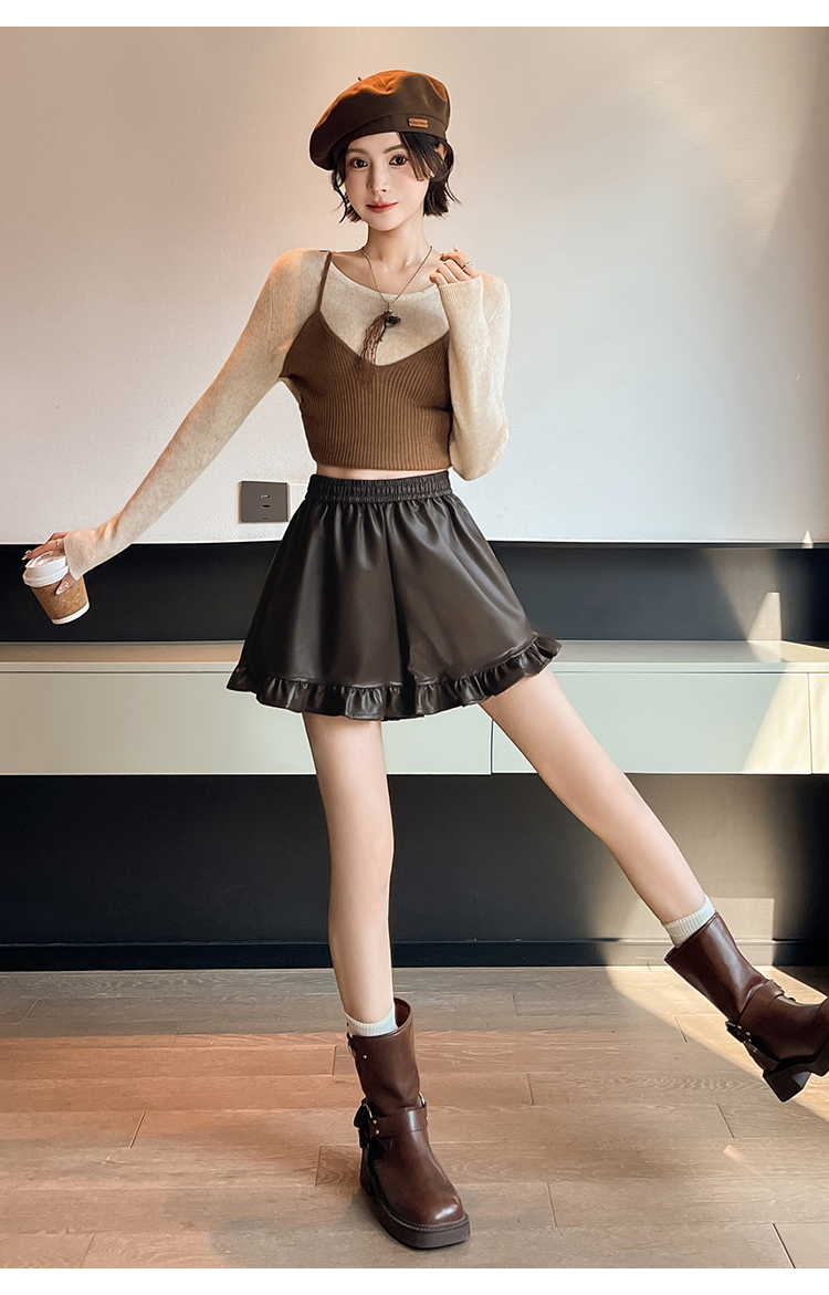 MY14017# 黑色木耳边PU皮休闲短裤外穿气质百搭款式显瘦阔腿短裤子女裝貨源服裝批發