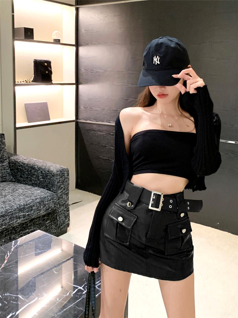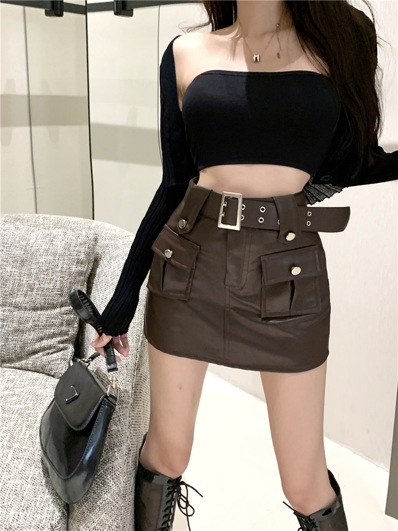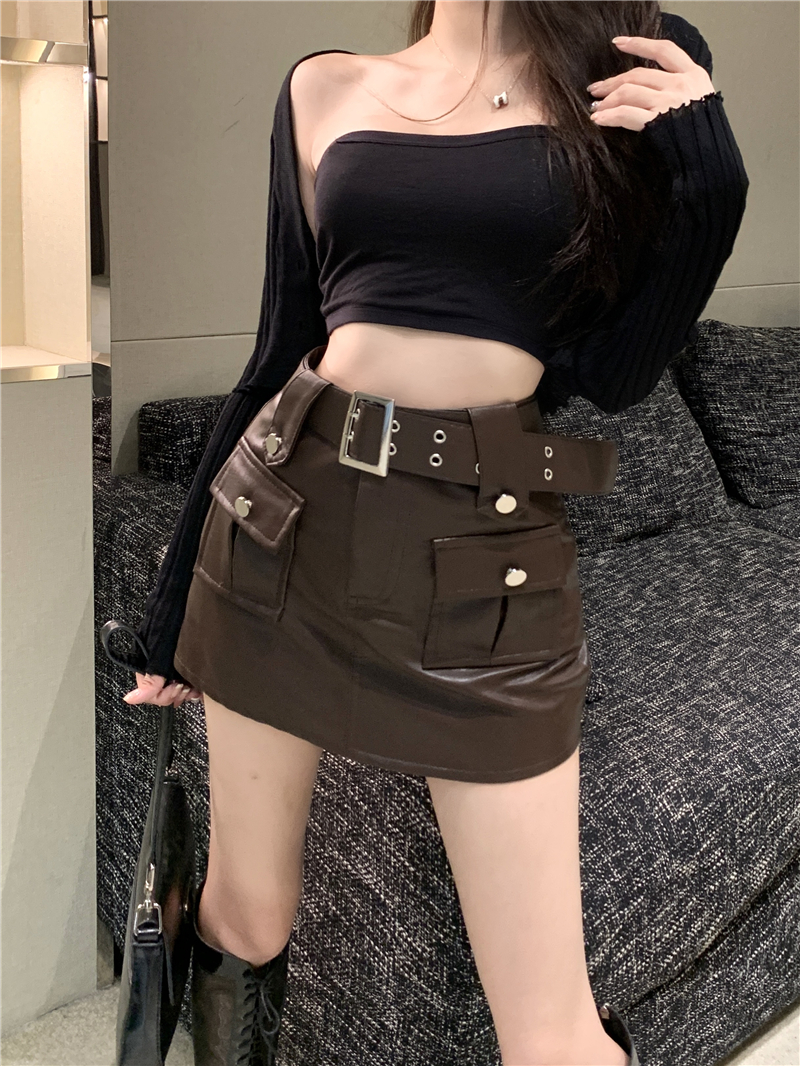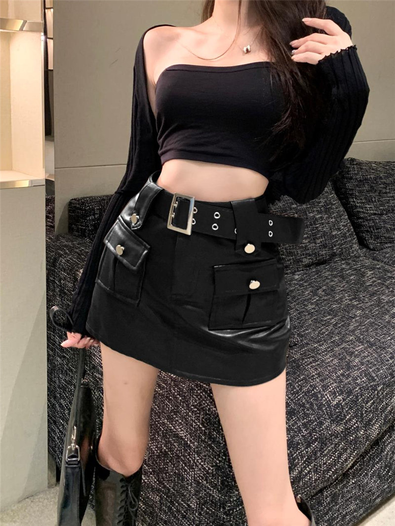 MY14080# 百搭洋气时尚气质辣妹工装风PU皮短裙A字裙半身裙女女裝貨源服裝批發