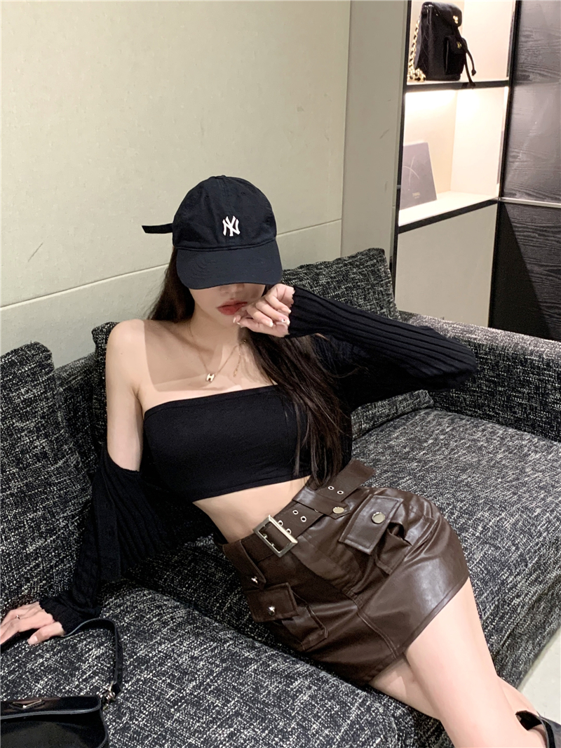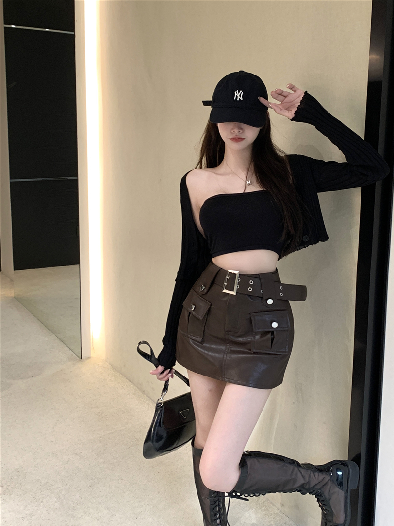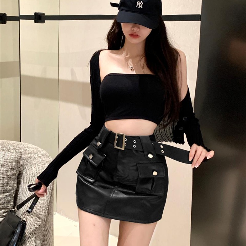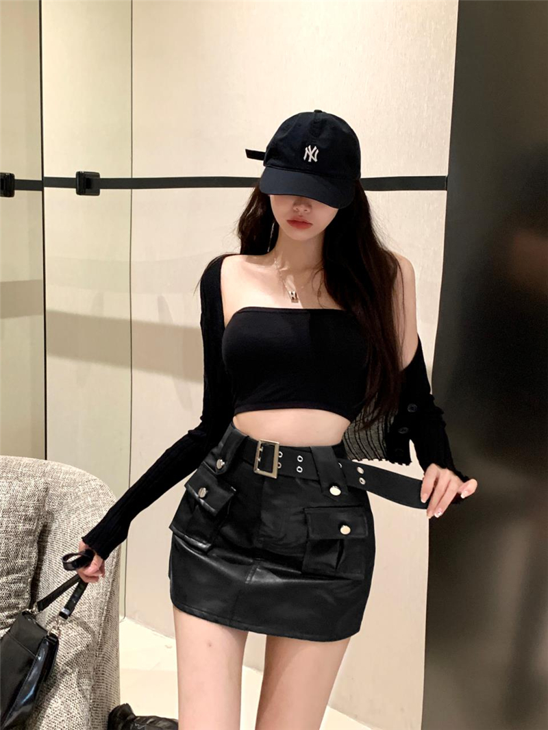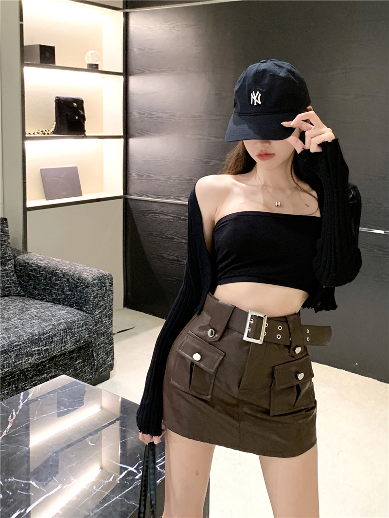 MY14080# 百搭洋气时尚气质辣妹工装风PU皮短裙A字裙半身裙女女裝貨源服裝批發