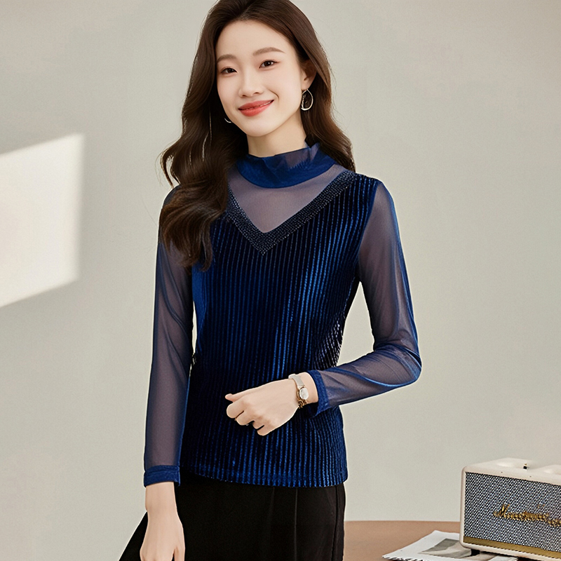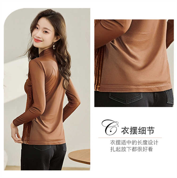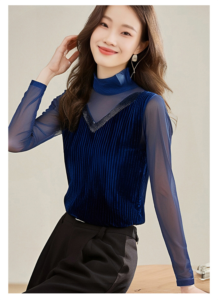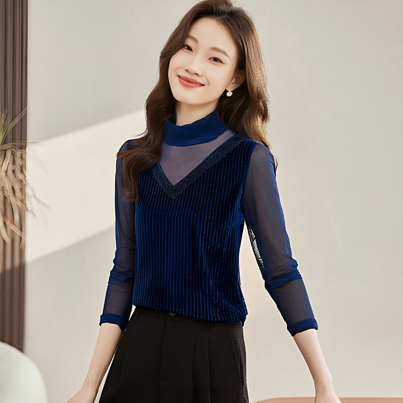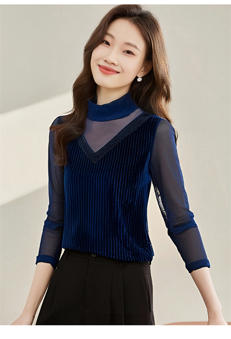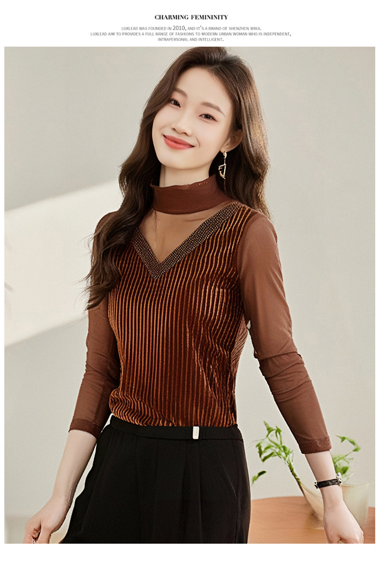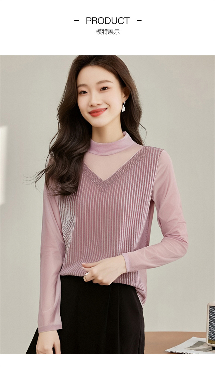 MY14126# 新款金丝绒竖条设计感洋气内搭T恤高领烫钻打底小衫女裝貨源服裝批發