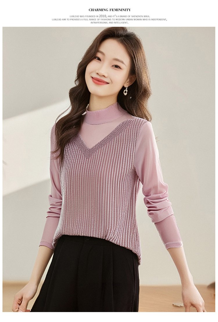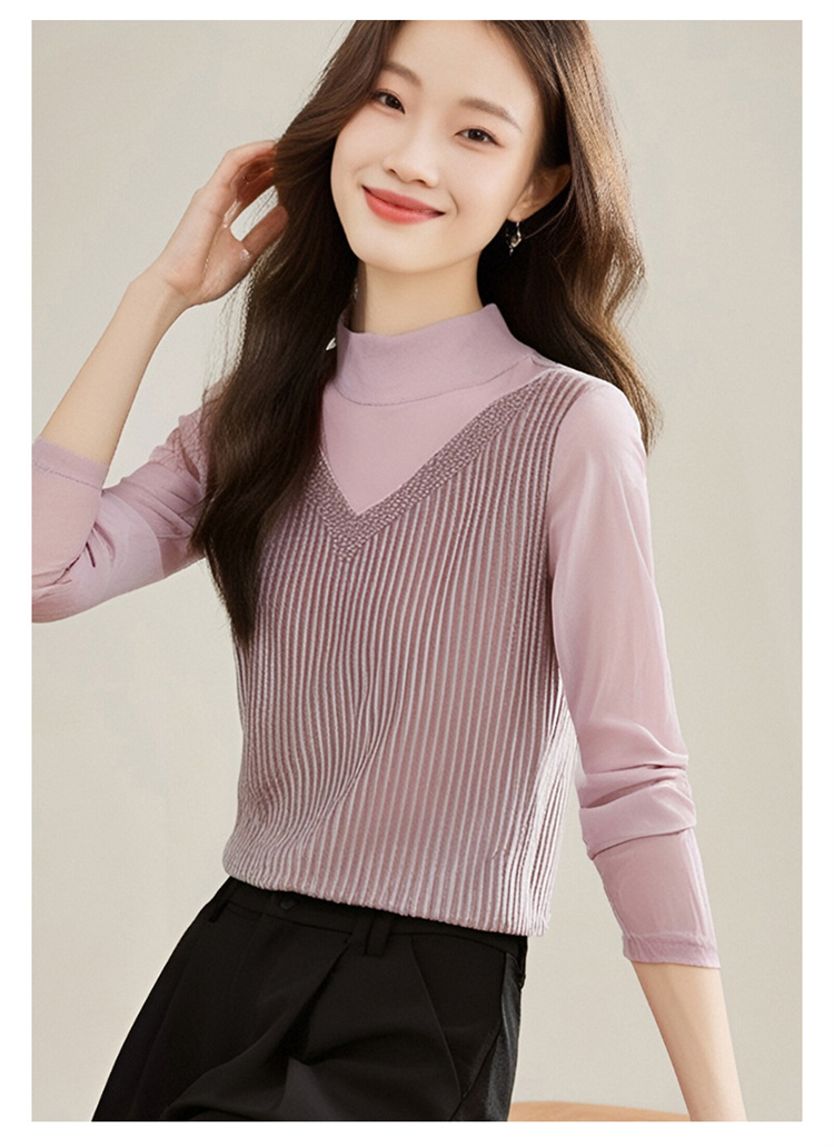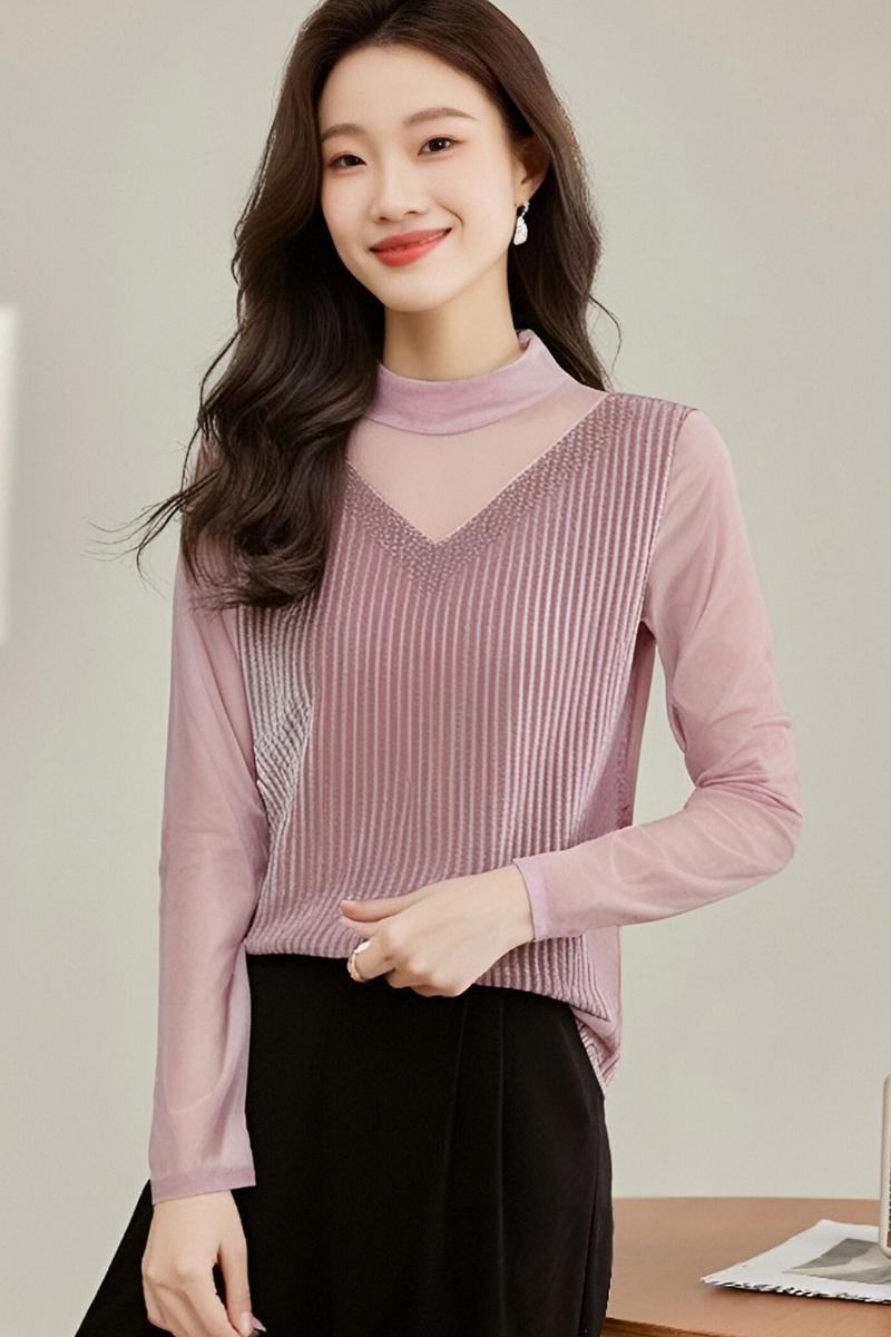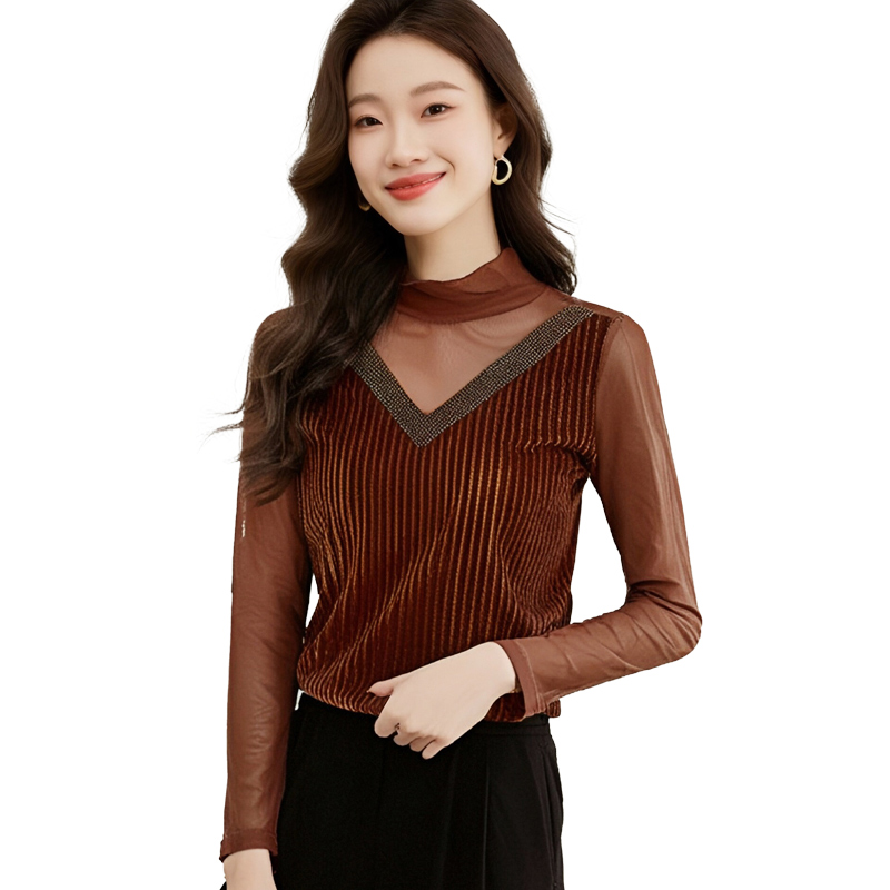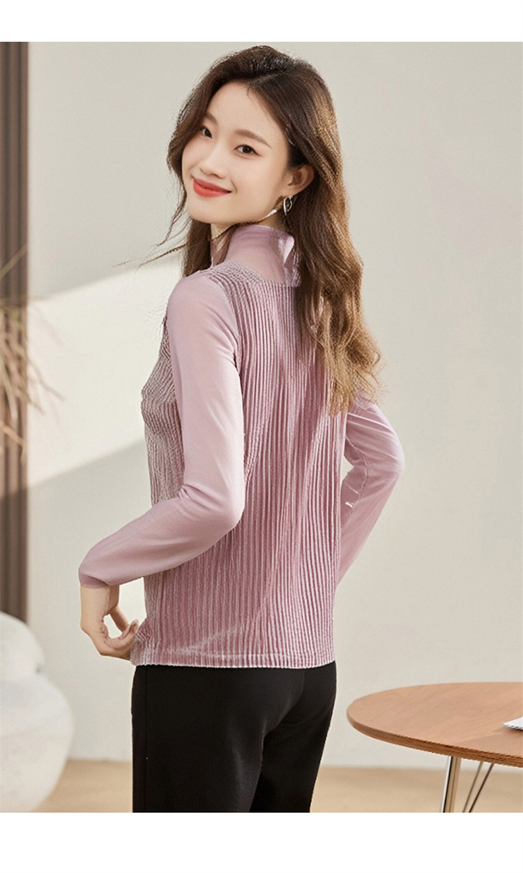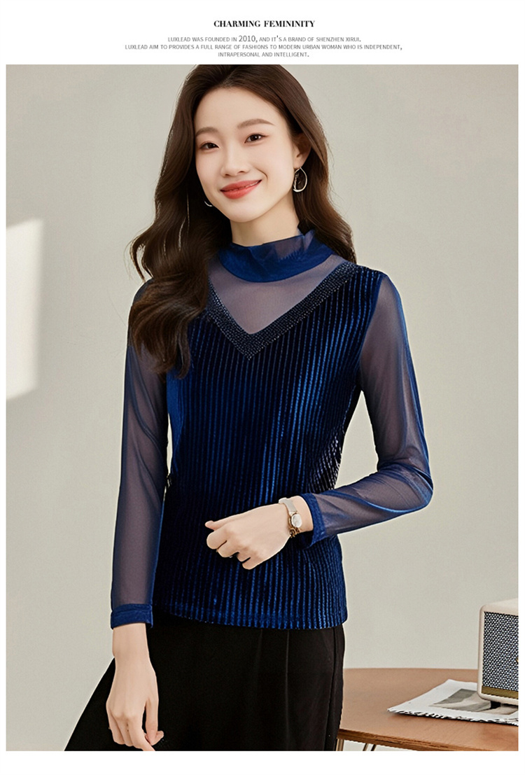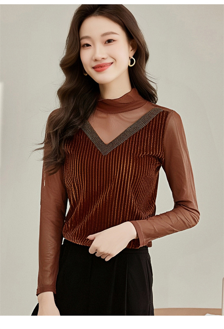 MY14126# 新款金丝绒竖条设计感洋气内搭T恤高领烫钻打底小衫女裝貨源服裝批發