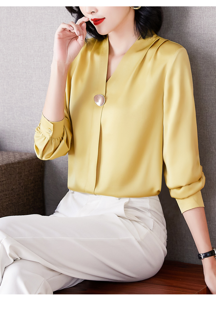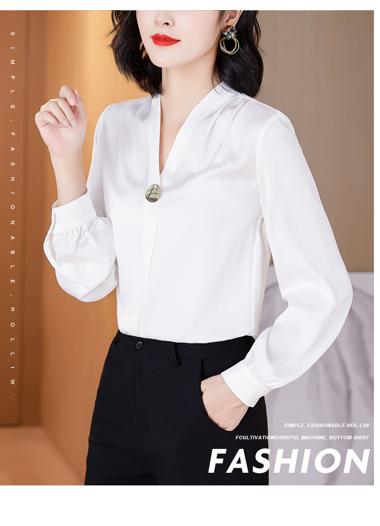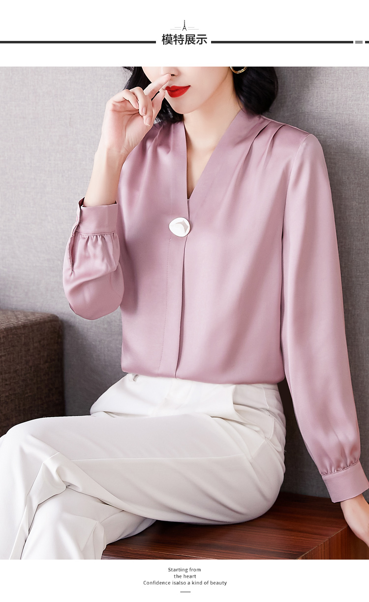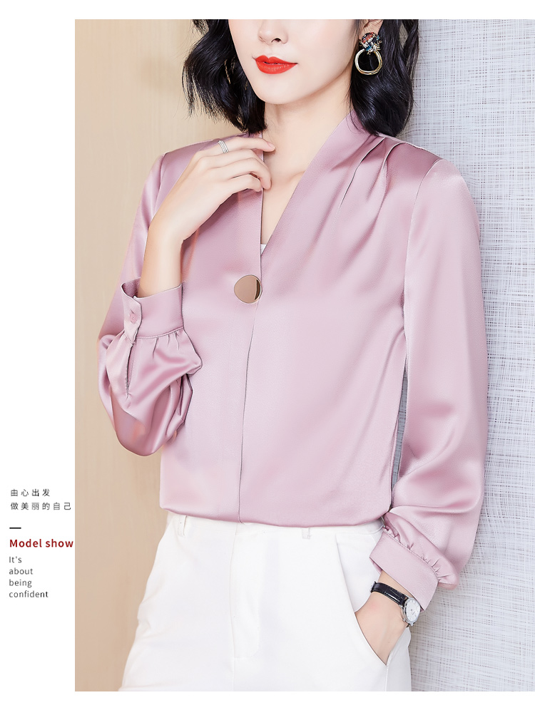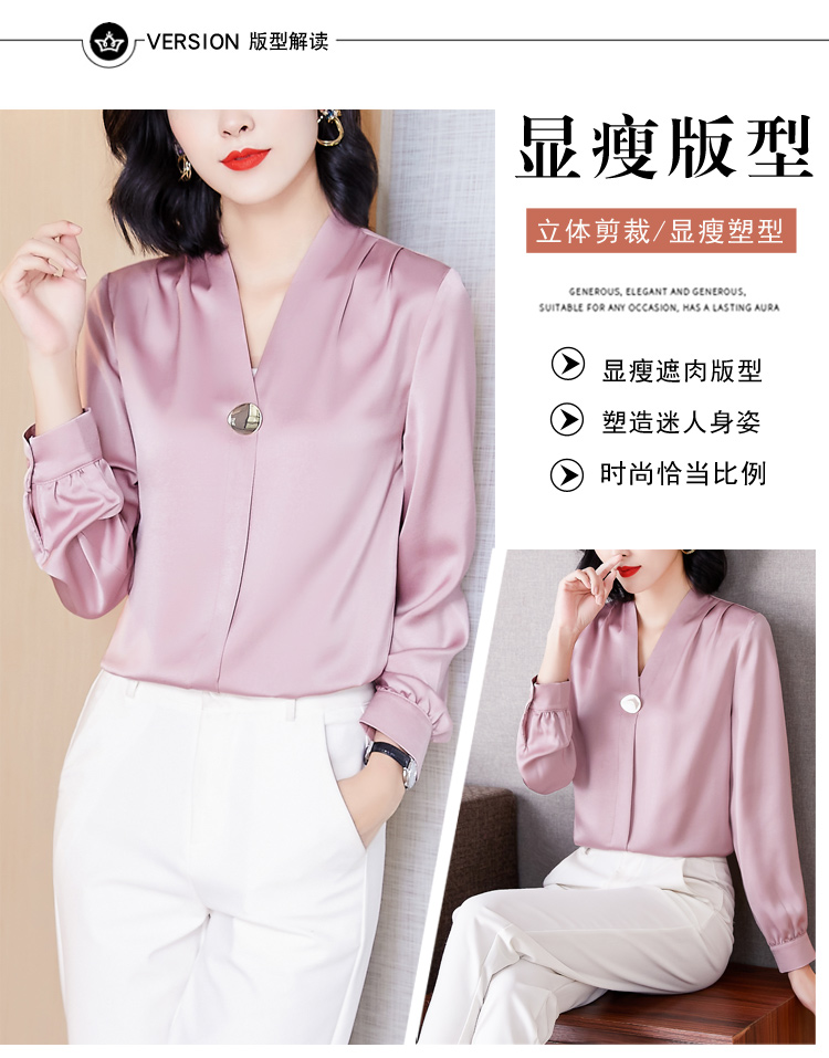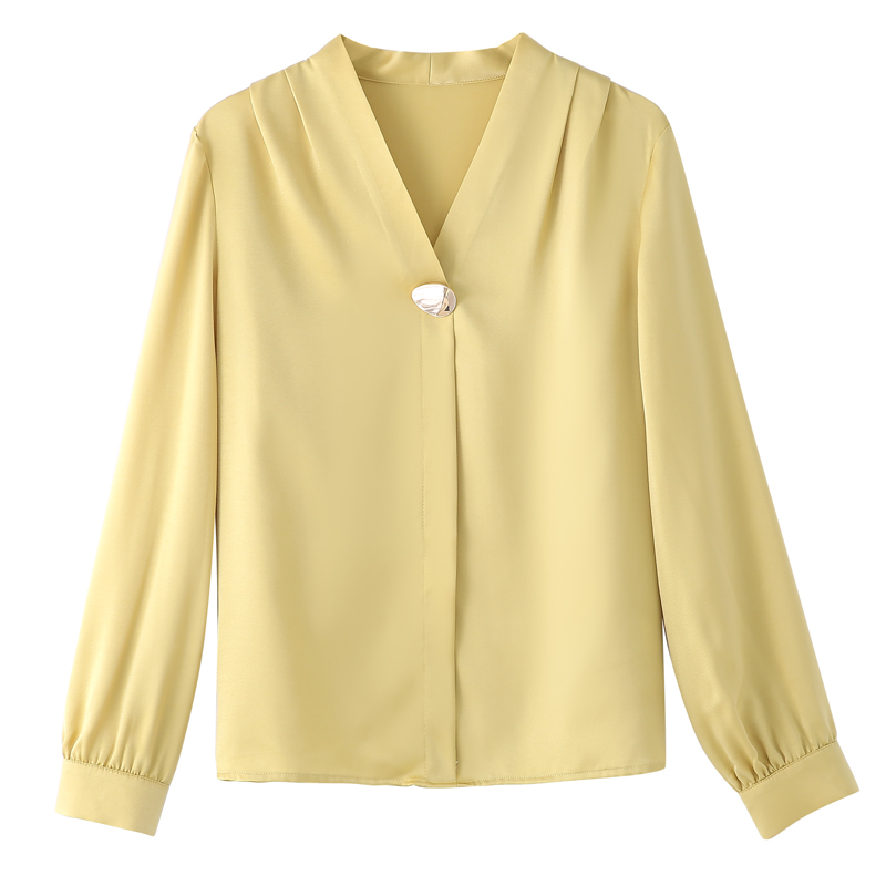 MY14134# 衬衫女长袖上衣时尚设计感小众醋酸锻面气质高端衬衣女裝貨源服裝批發