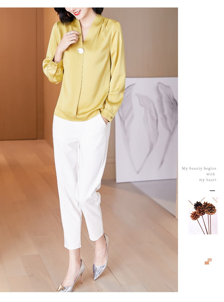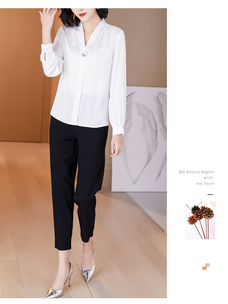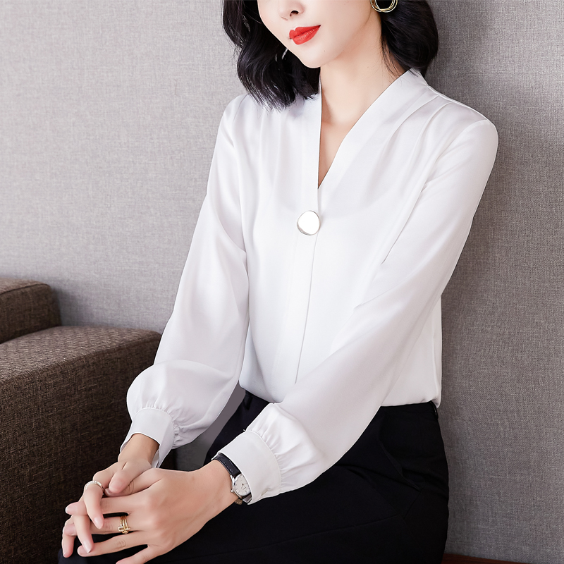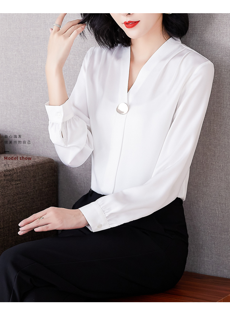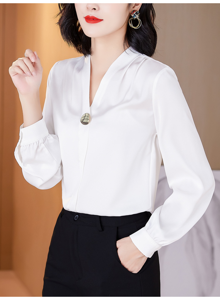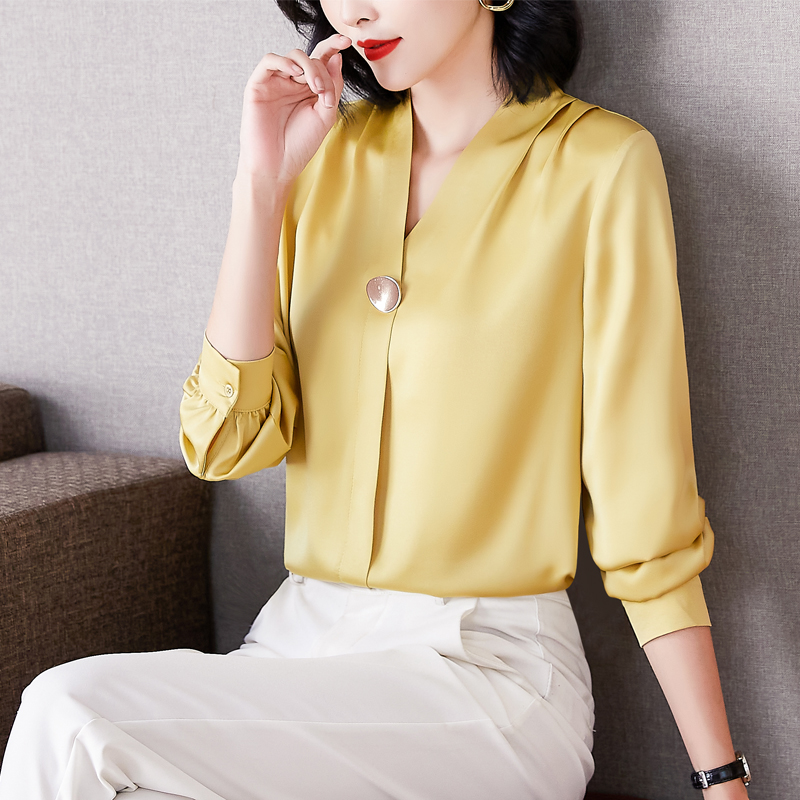 MY14134# 衬衫女长袖上衣时尚设计感小众醋酸锻面气质高端衬衣女裝貨源服裝批發