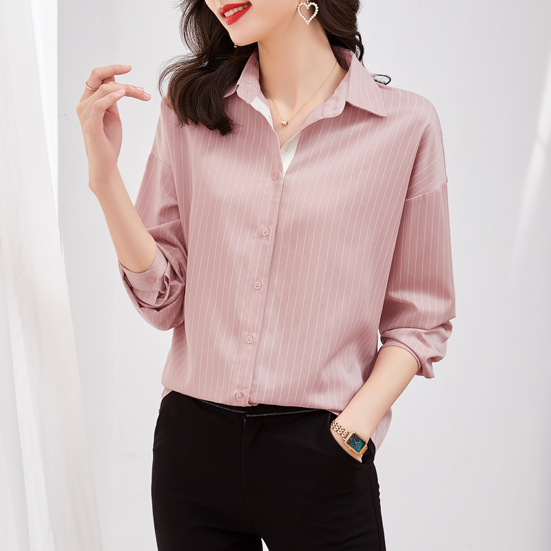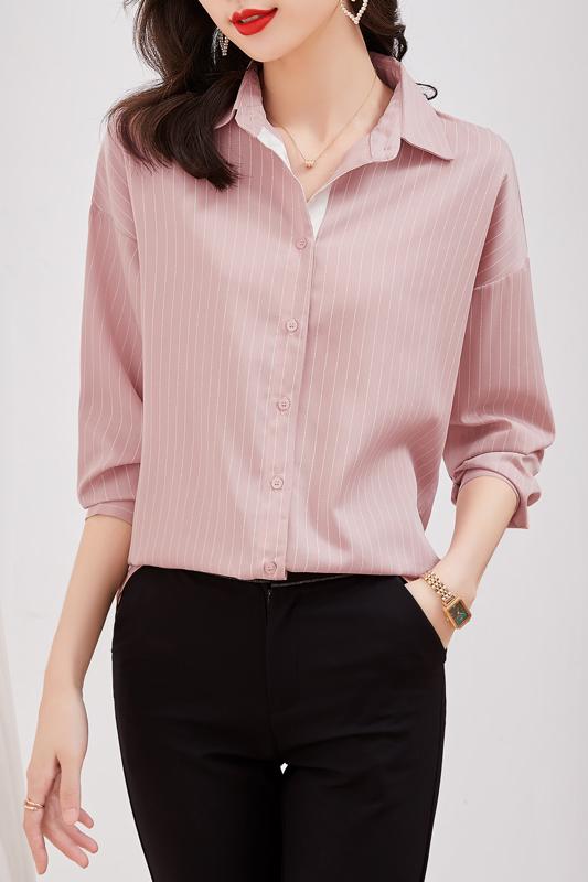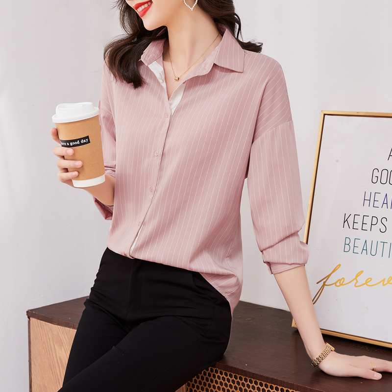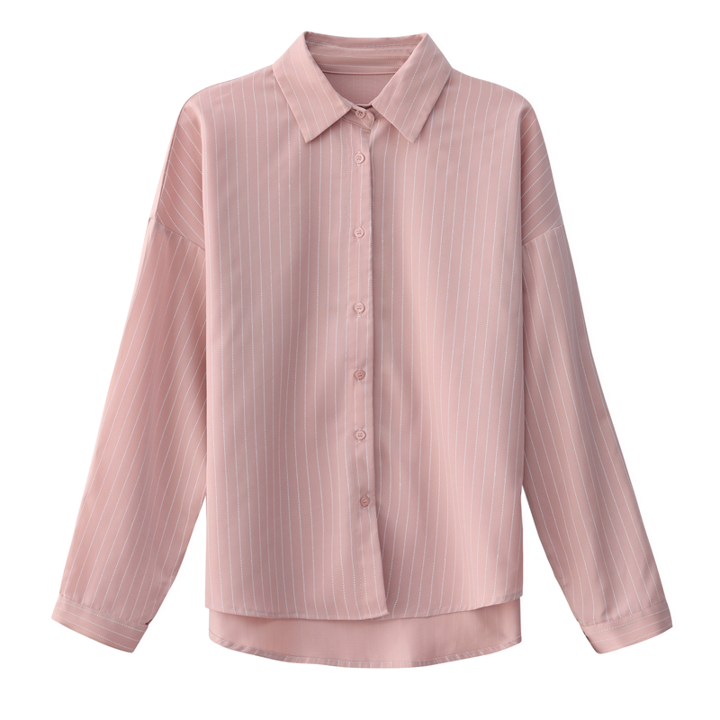 MY14136# 新款秋斜纹气质宽松百搭长袖时尚条纹小众上衣女裝貨源服裝批發