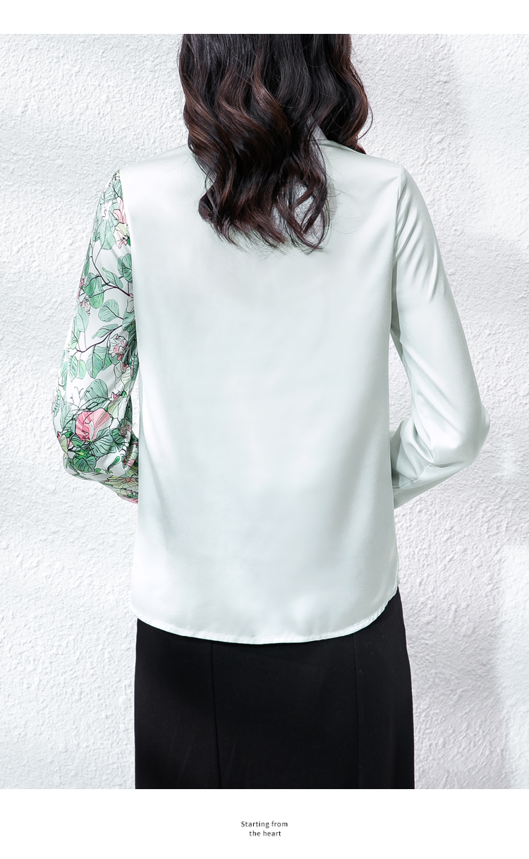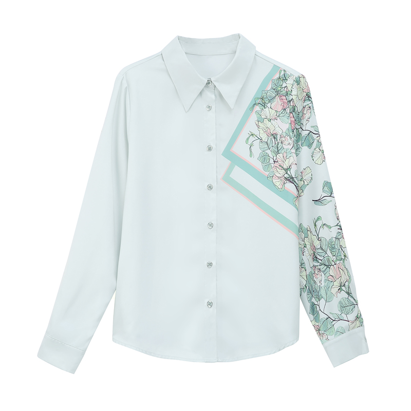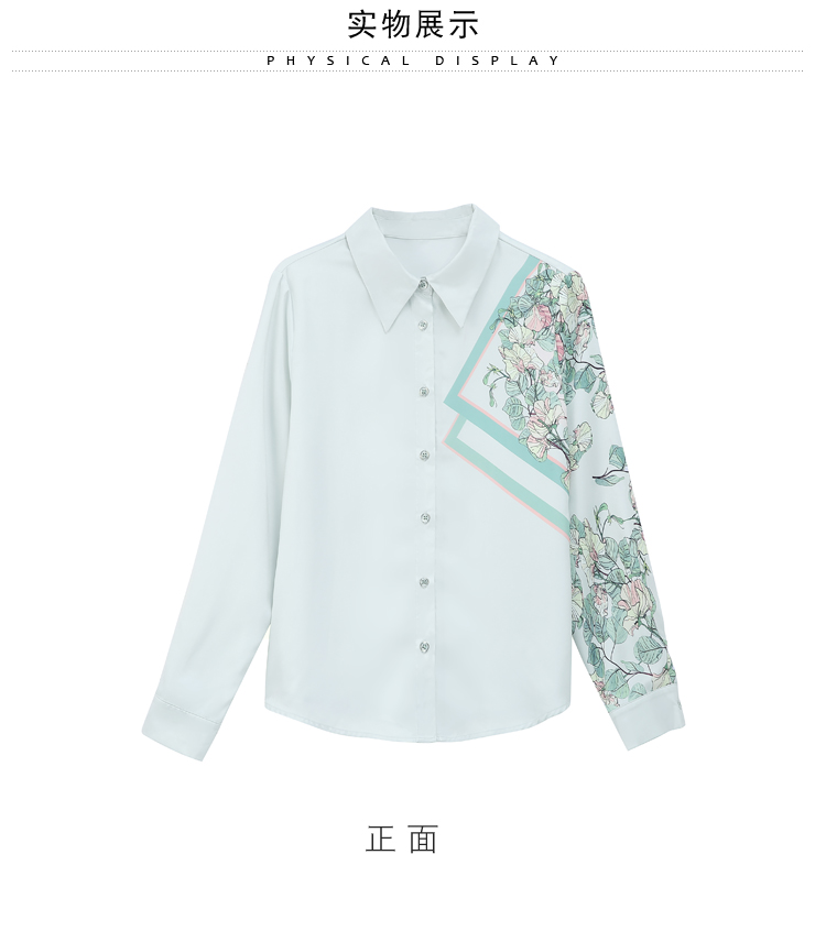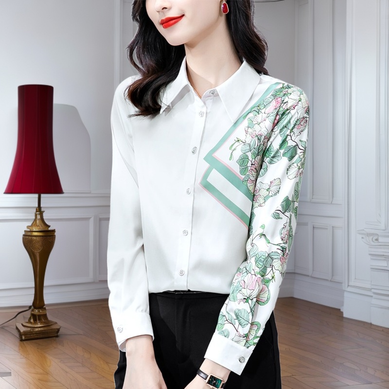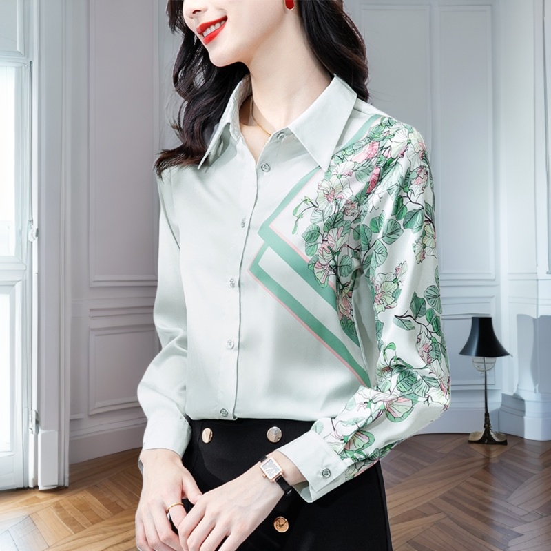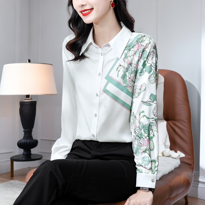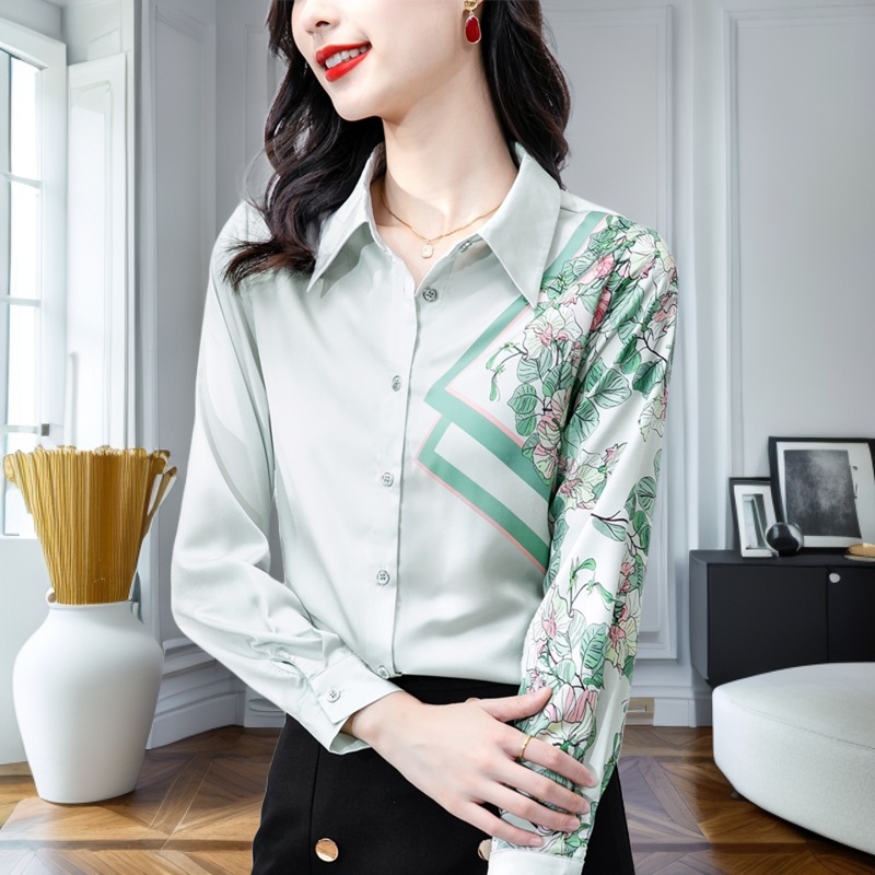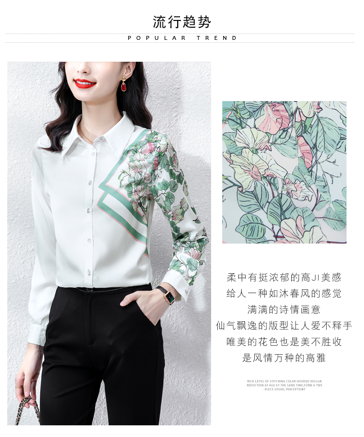 MY14137# 新款翻领衬衣印花重磅仿真丝长袖宽松大码女上衣女裝貨源服裝批發