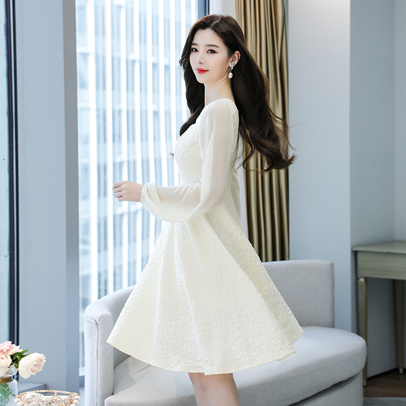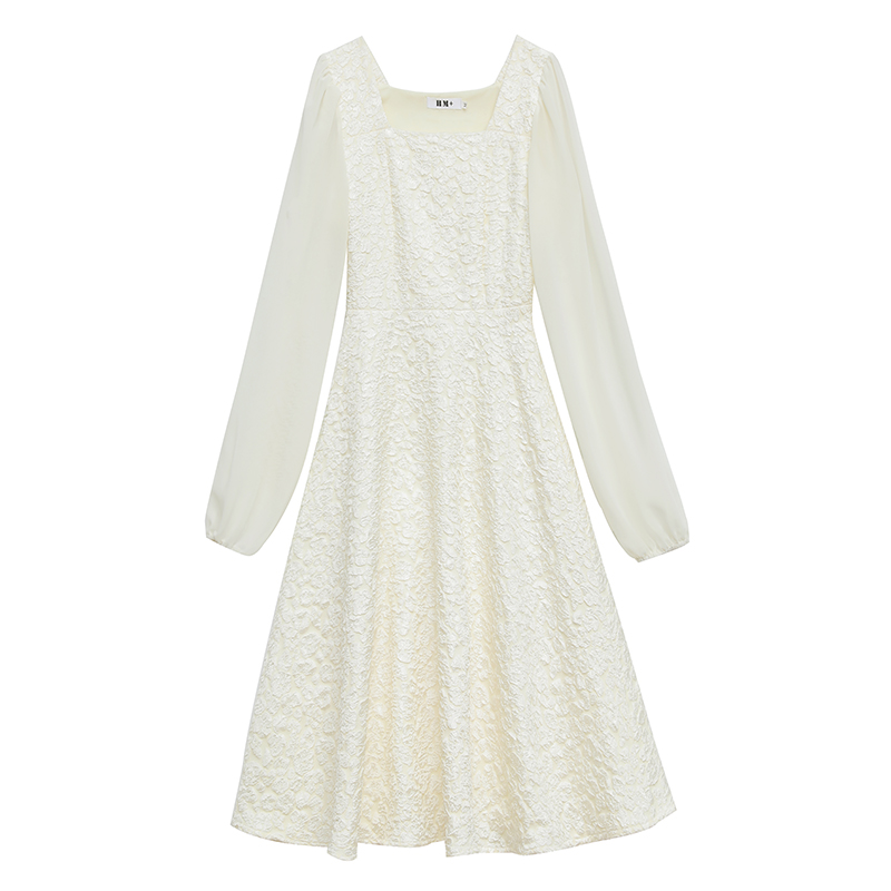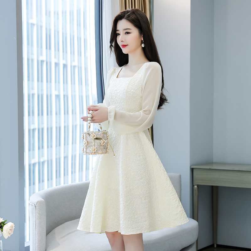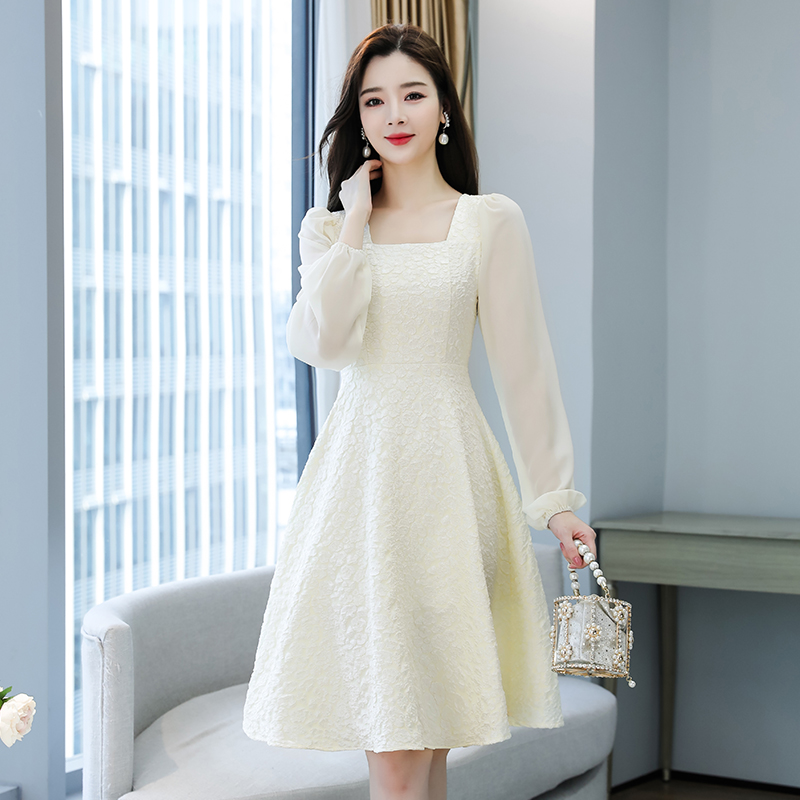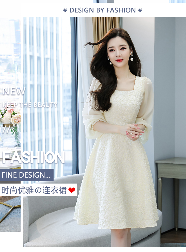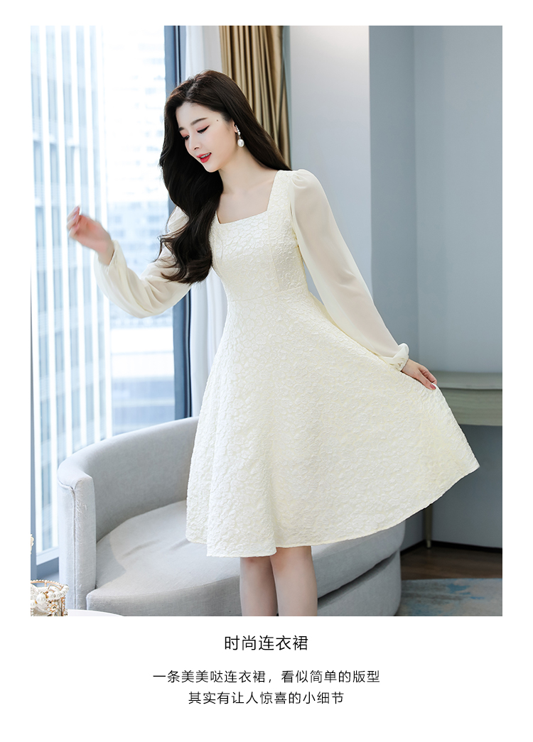 MY14152# 轻奢高级感气质白色连衣裙大码胖mm收腰减龄别致a字裙.女裝貨源服裝批發