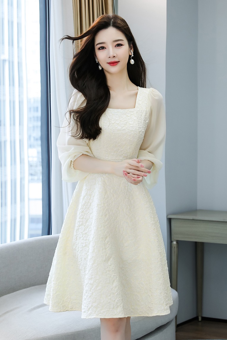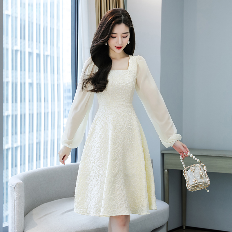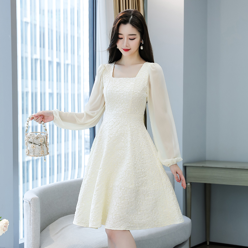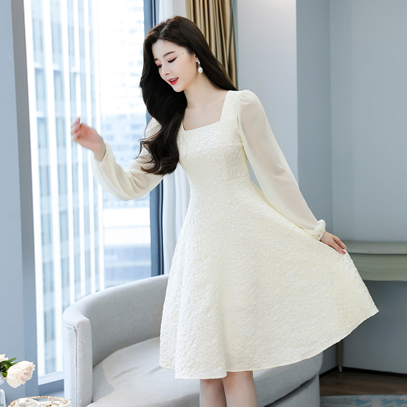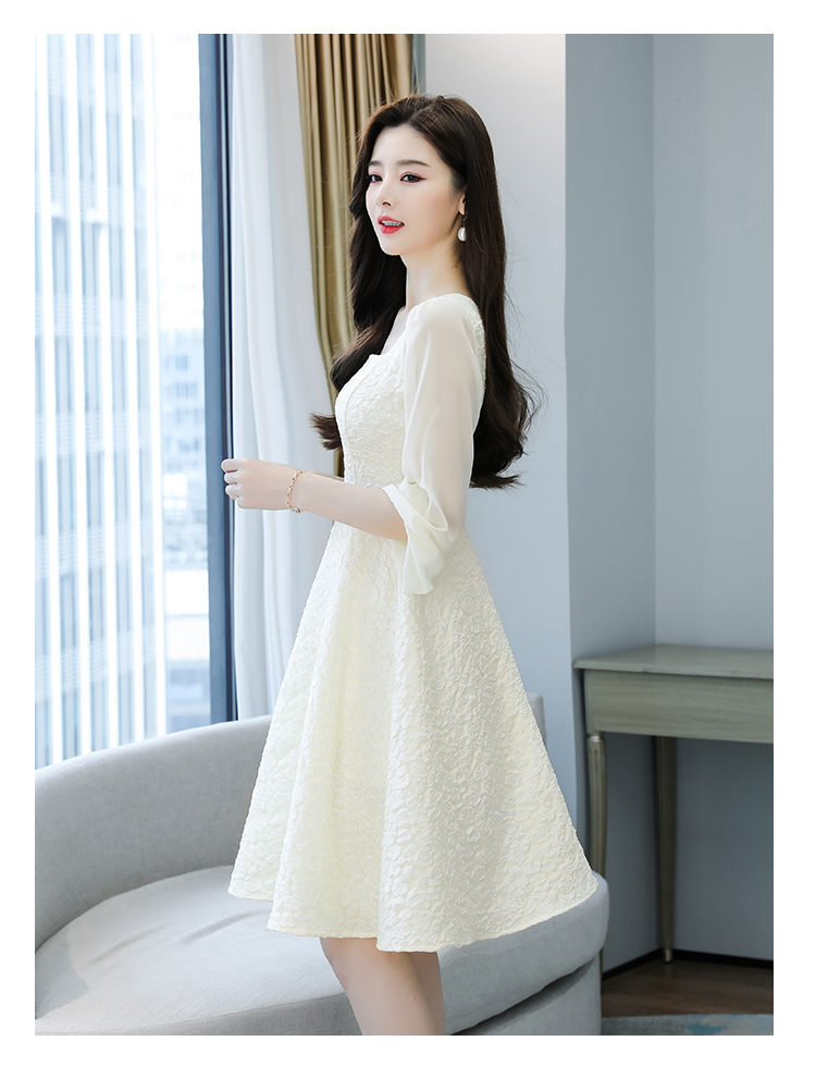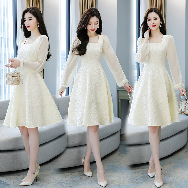 MY14152# 轻奢高级感气质白色连衣裙大码胖mm收腰减龄别致a字裙.女裝貨源服裝批發