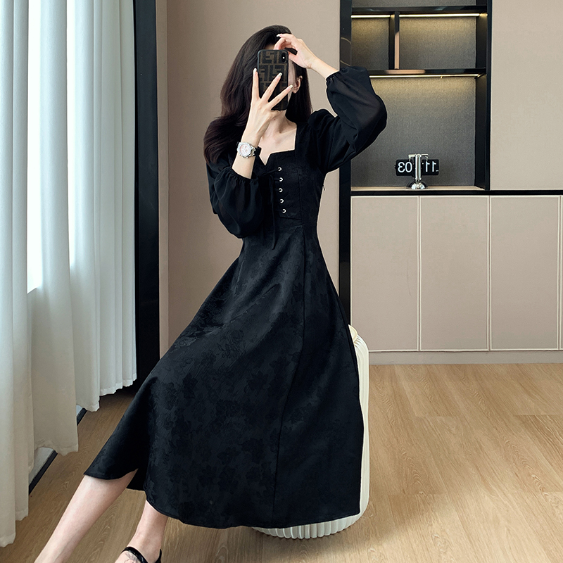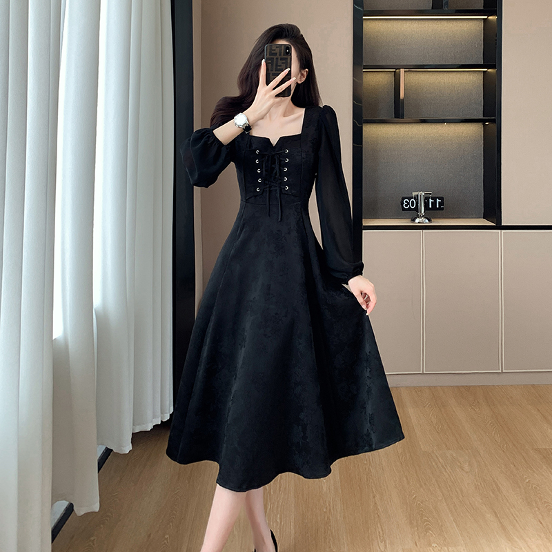 MY14155# 大码女装新款茶歇法式赫本风小黑裙胖妹妹收腰显瘦遮肚连衣裙女裝貨源服裝批發
