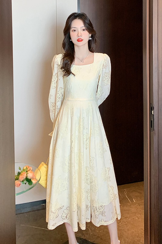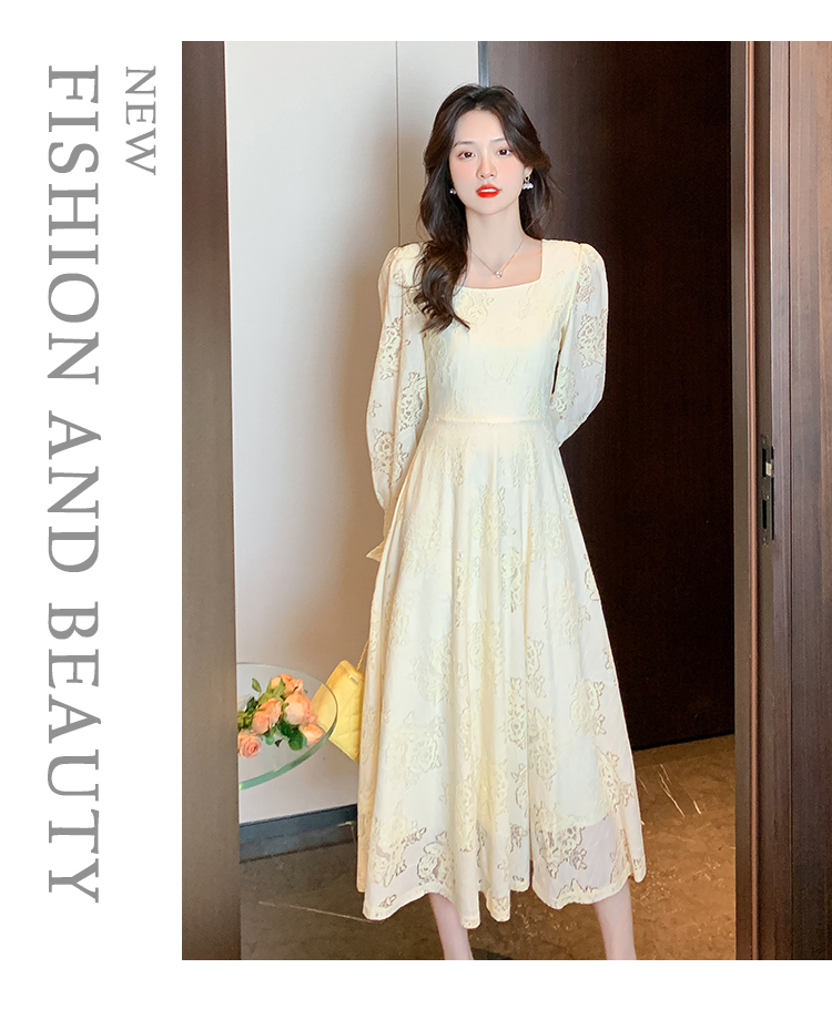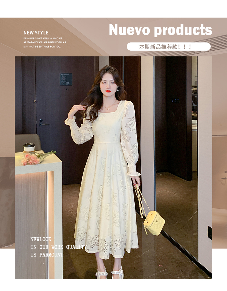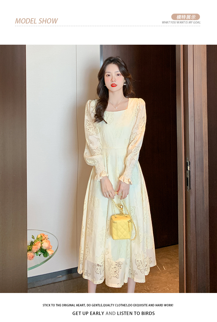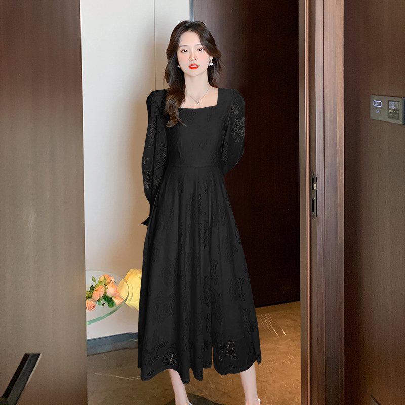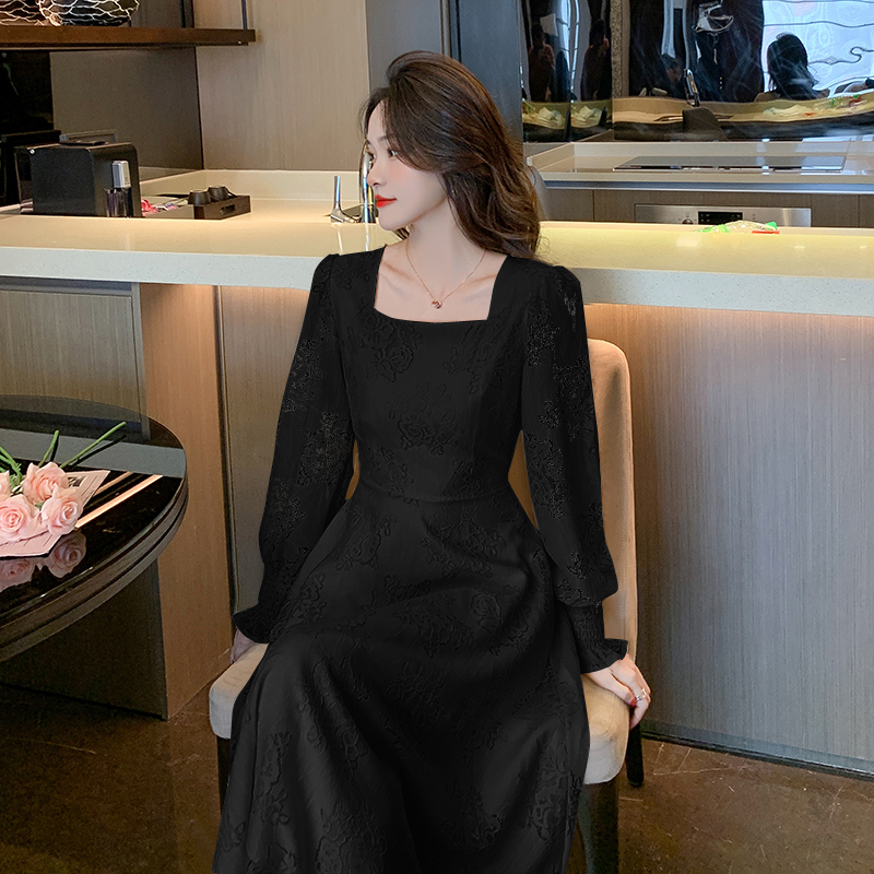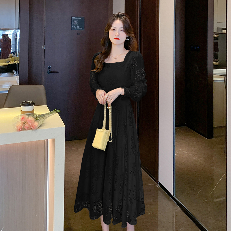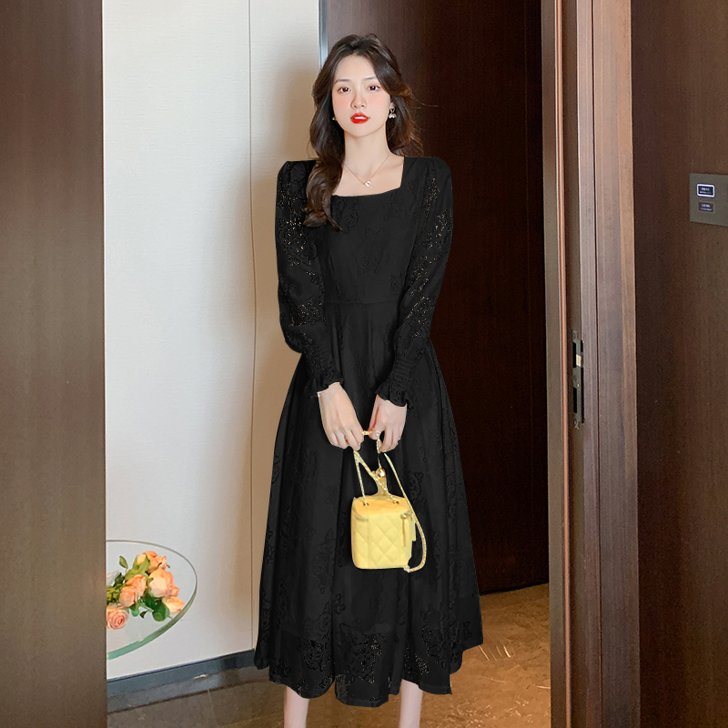 MY14164# 大码法式赫本风方领气质连衣裙女胖mm高腰梨形身材显瘦小黑裙女裝貨源服裝批發