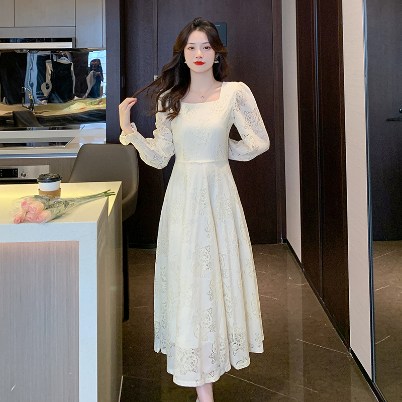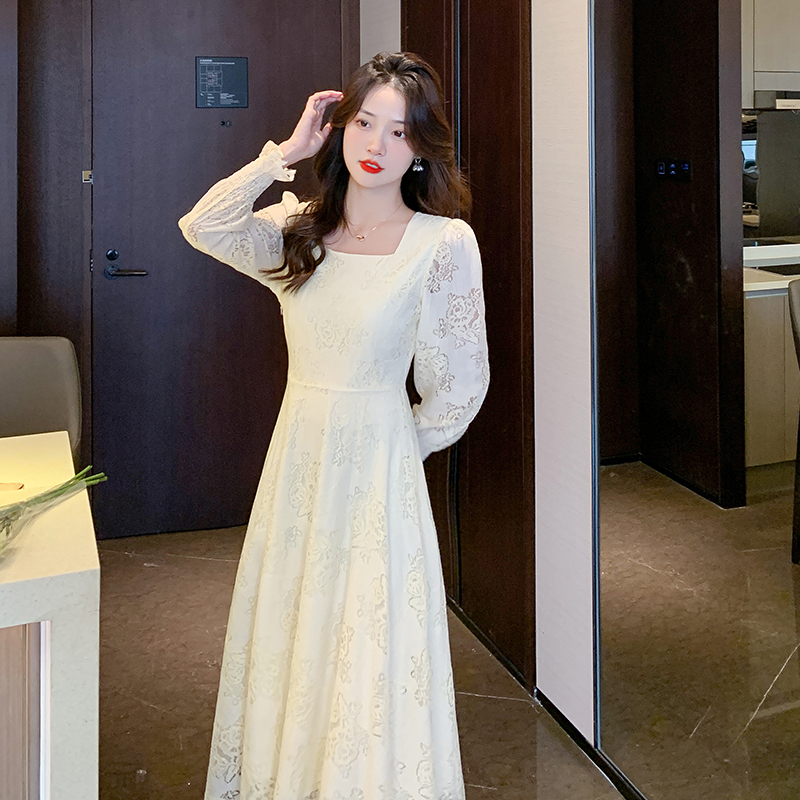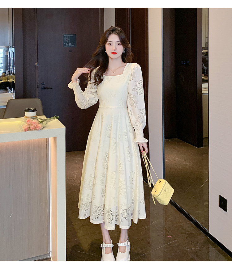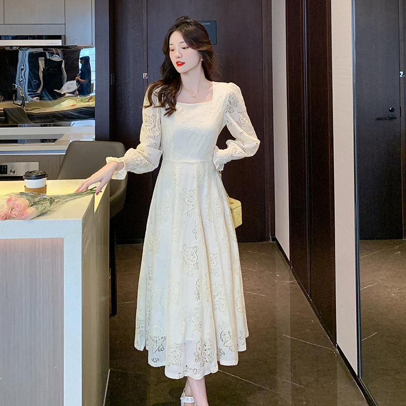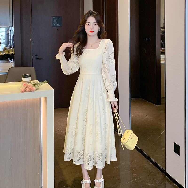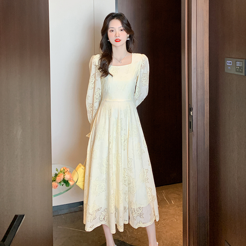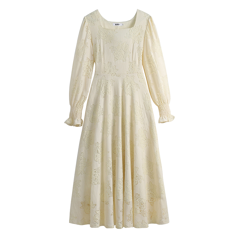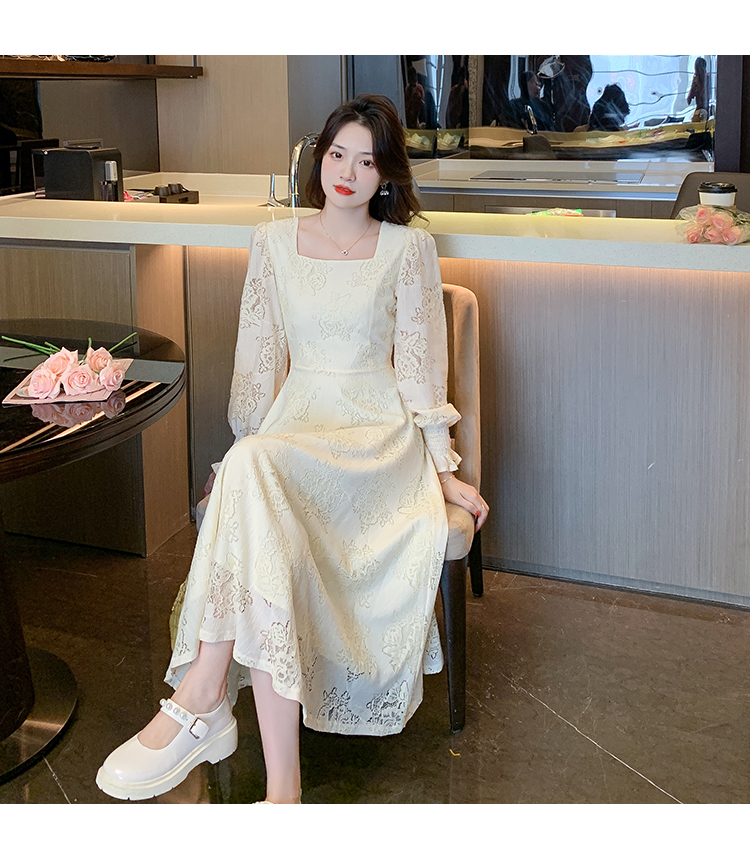 MY14164# 大码法式赫本风方领气质连衣裙女胖mm高腰梨形身材显瘦小黑裙女裝貨源服裝批發
