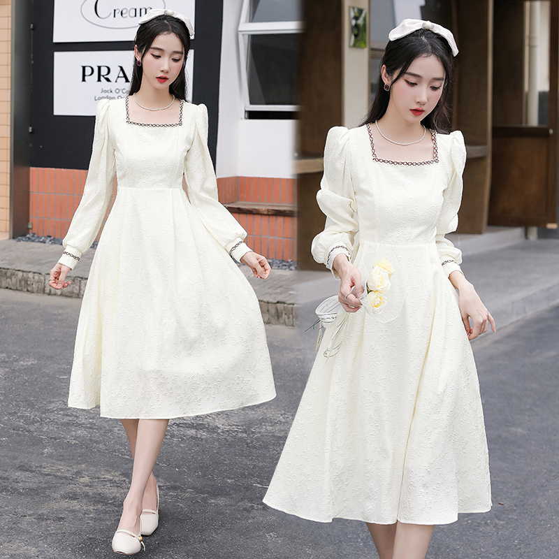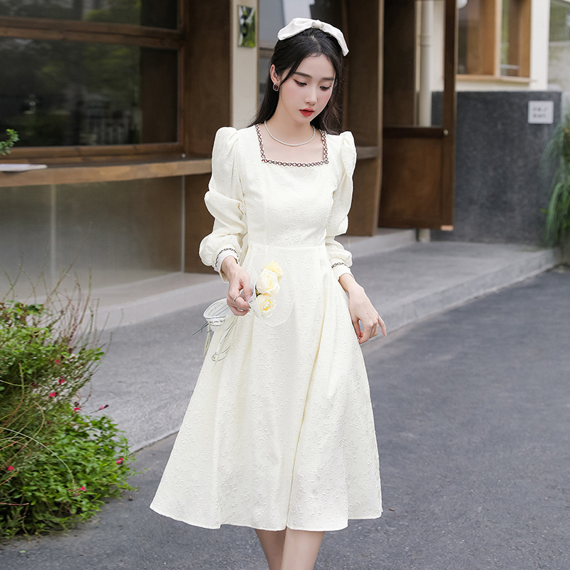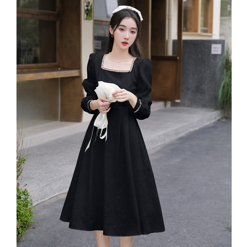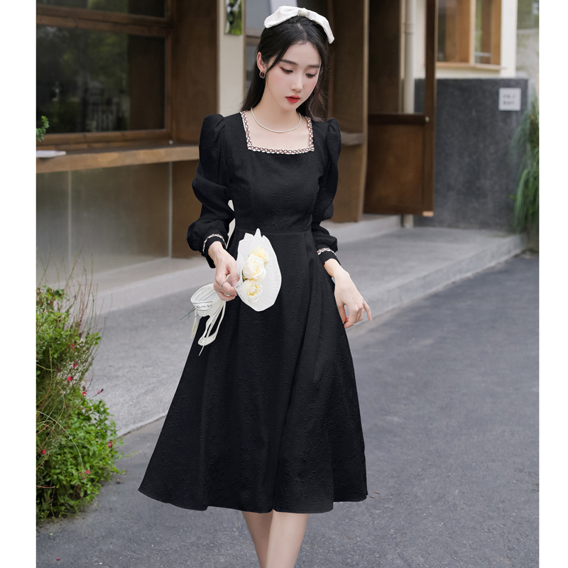 MY14167# 大码法式复古赫本风高档提花连衣裙女夏季收腰显瘦气质a字长裙子.女裝貨源服裝批發