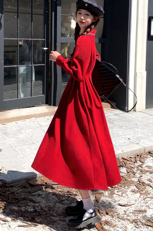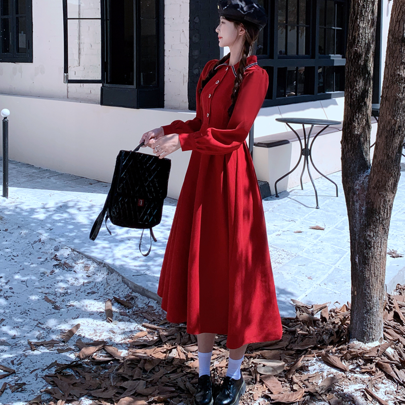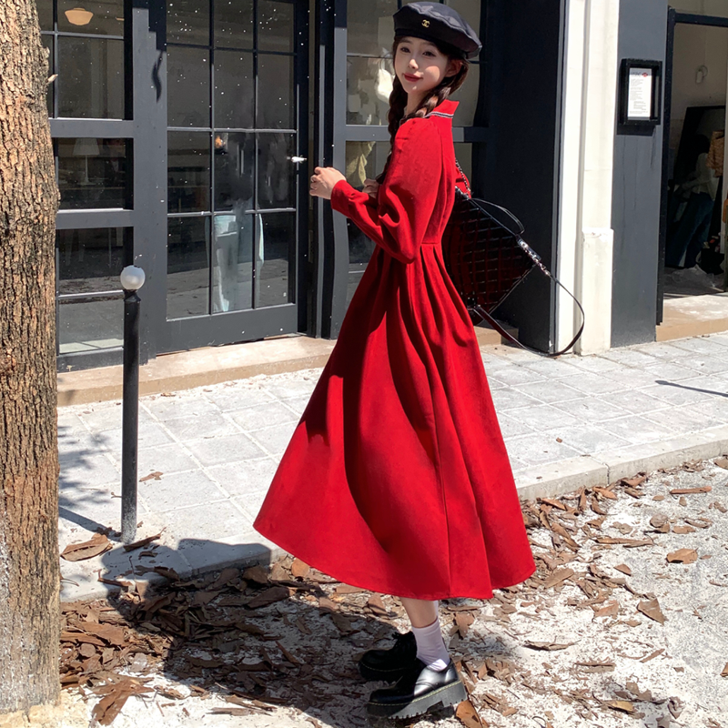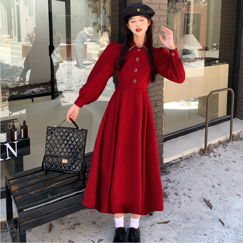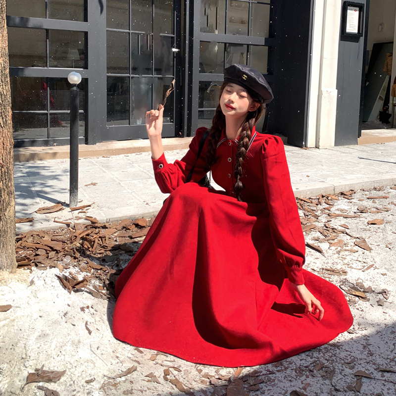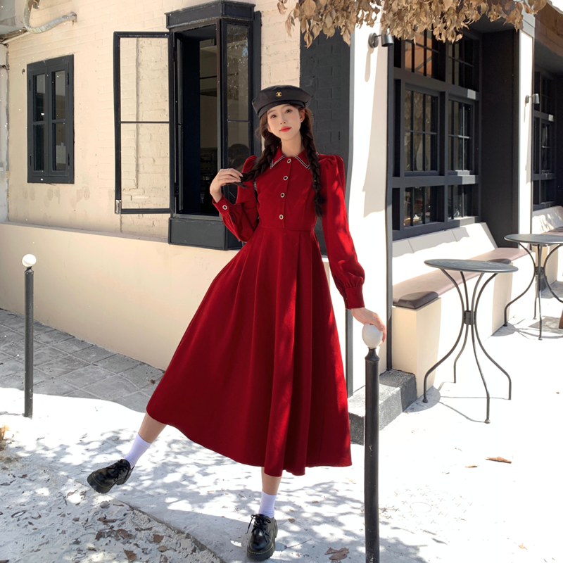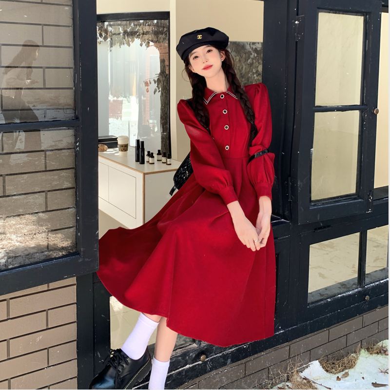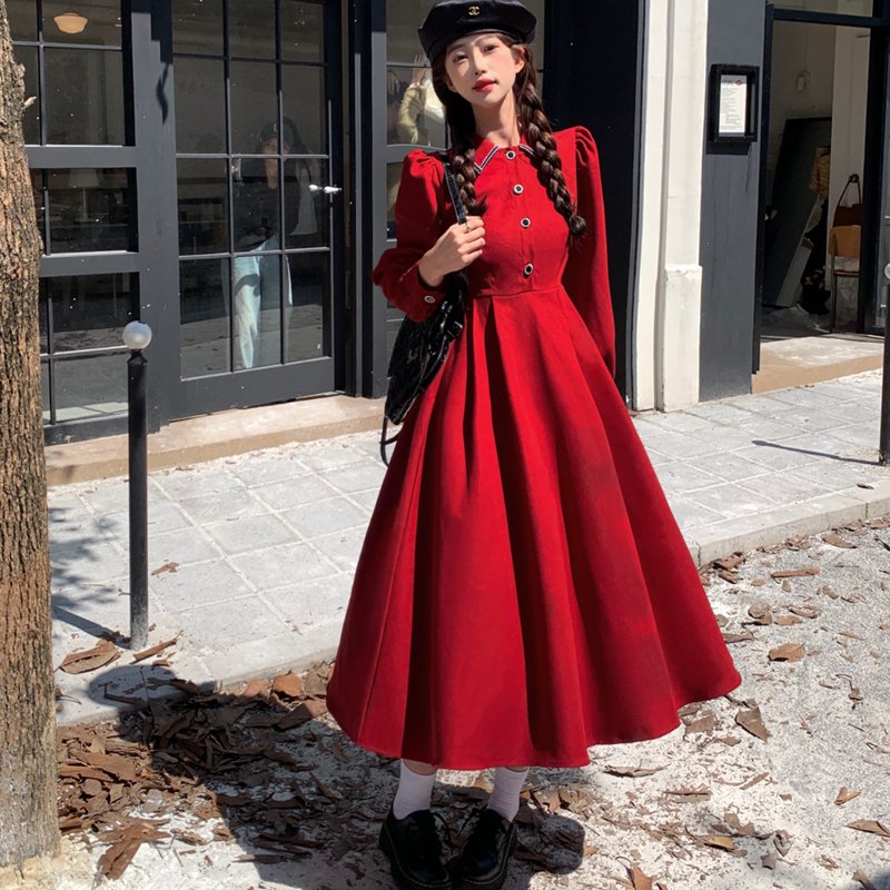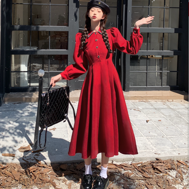 MY14170# 高级感赫本风法式连衣裙子大码胖mm显瘦减龄新年红色战袍丝绒裙子女裝貨源服裝批發