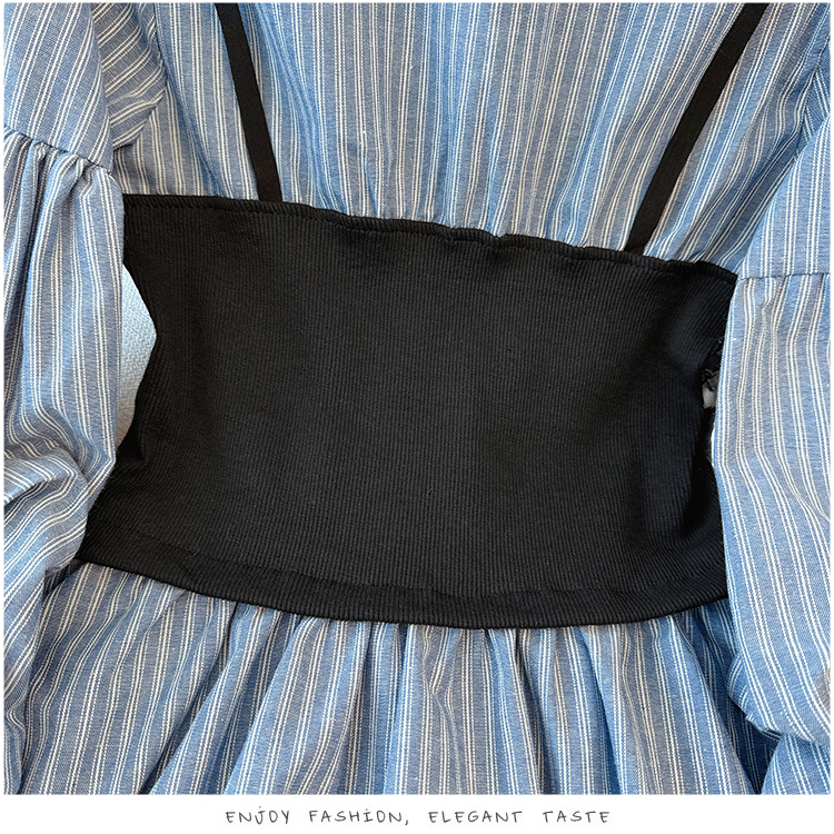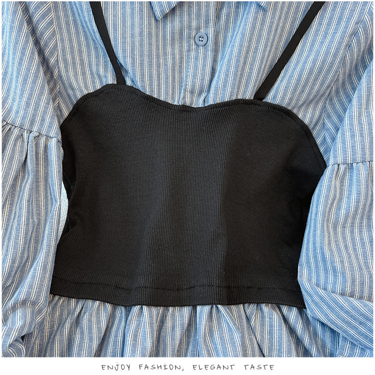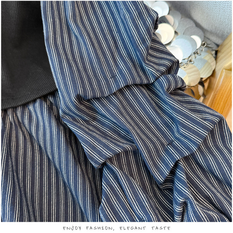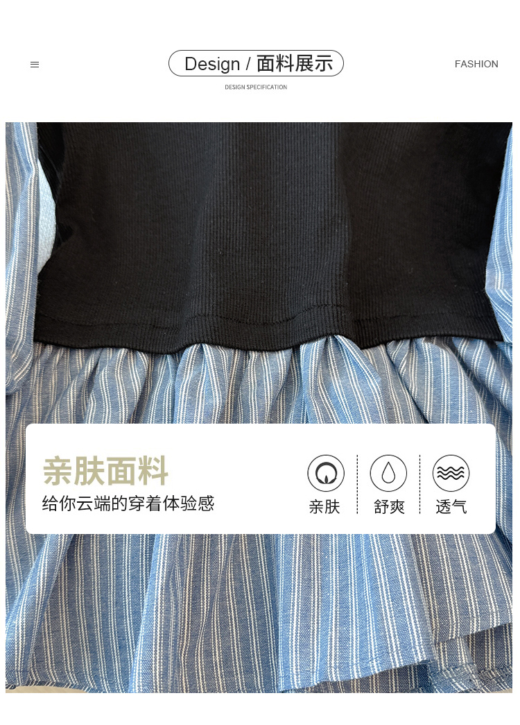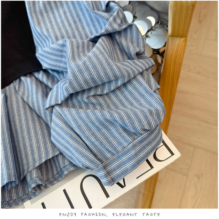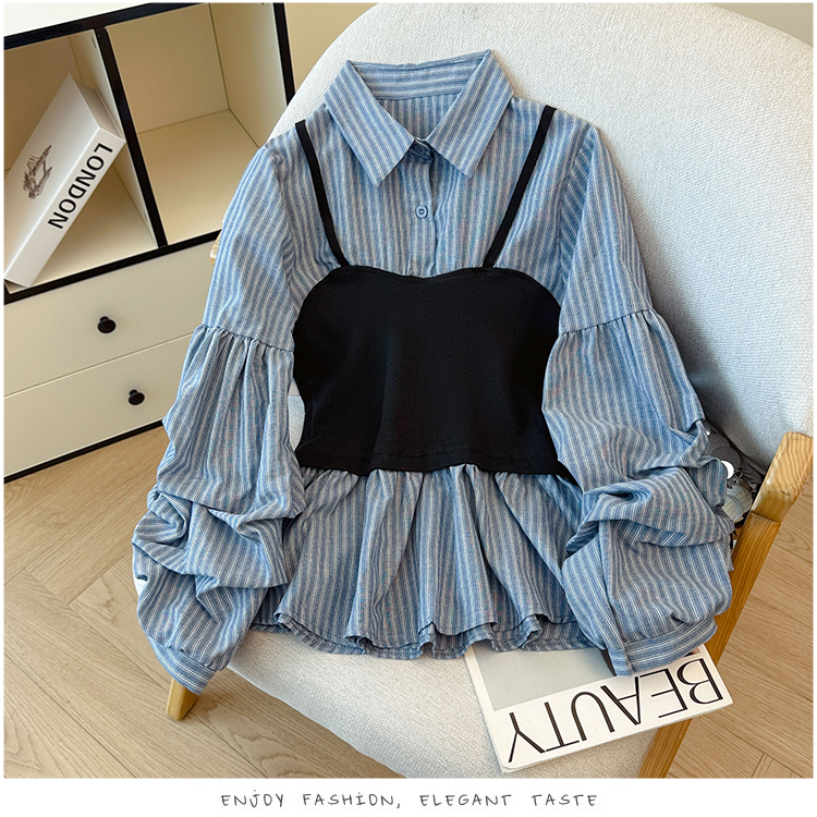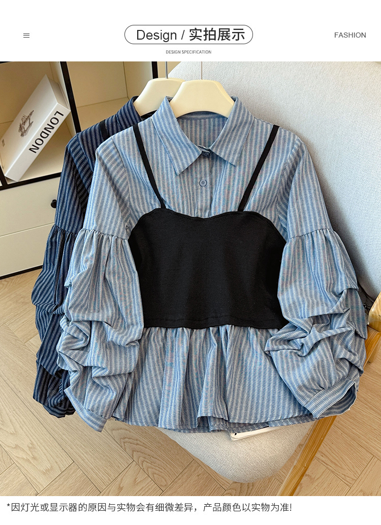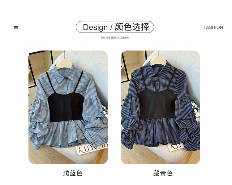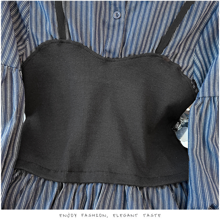 MY14179# 假两件拼接条纹长袖衬衫新款气质洋气显瘦上衣女裝貨源服裝批發