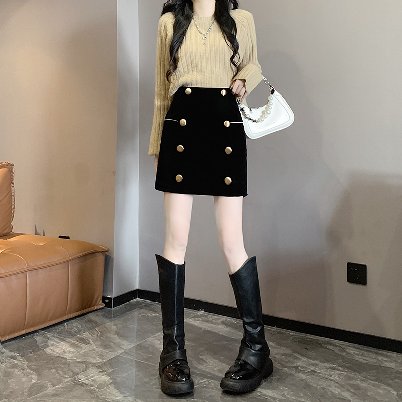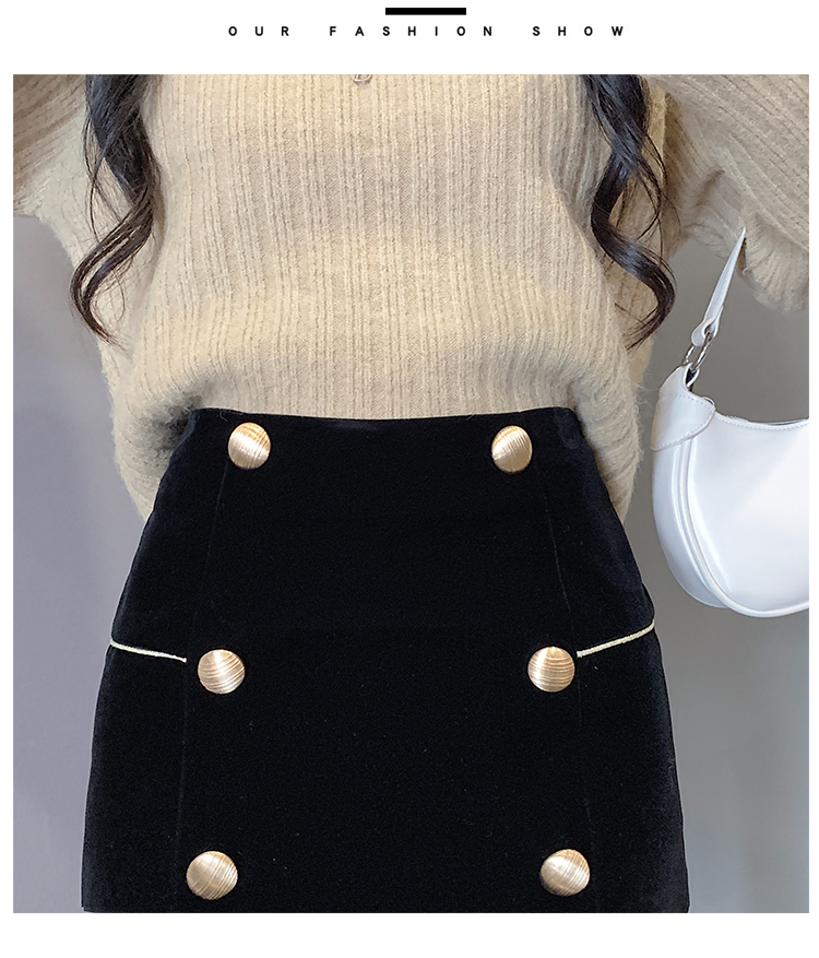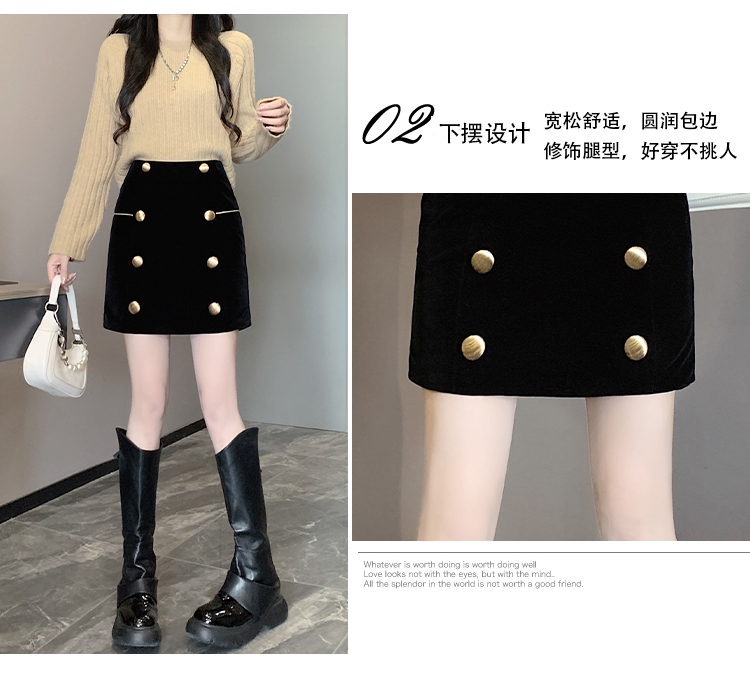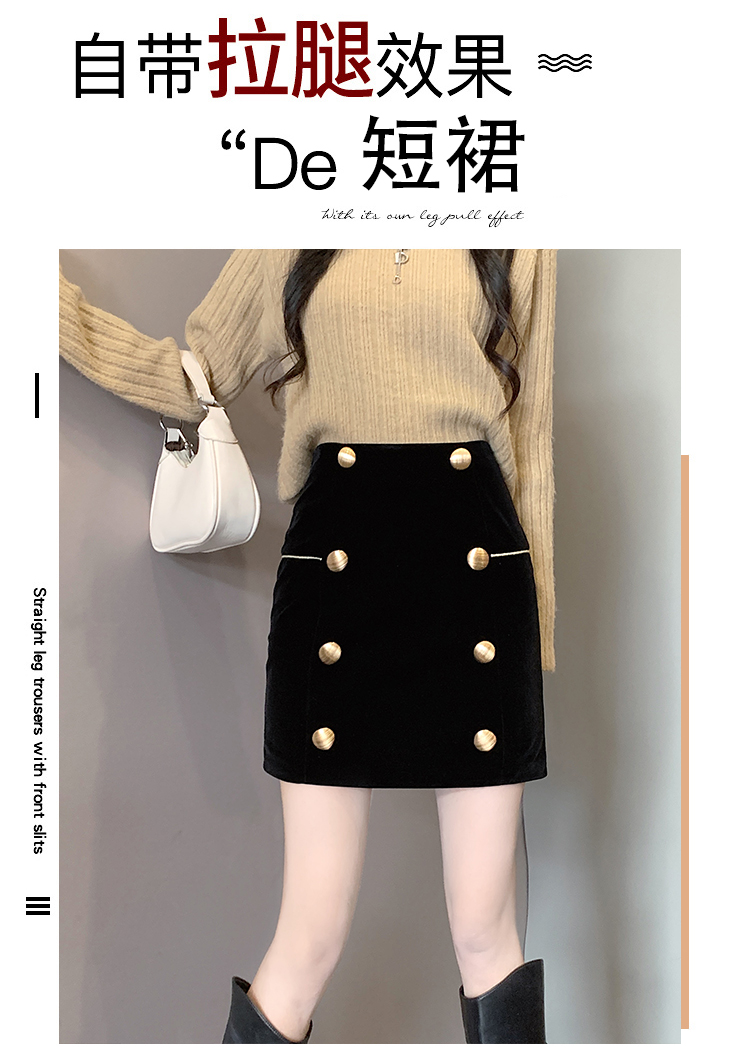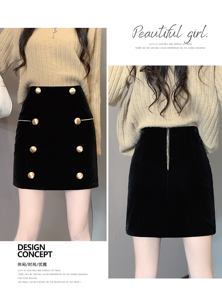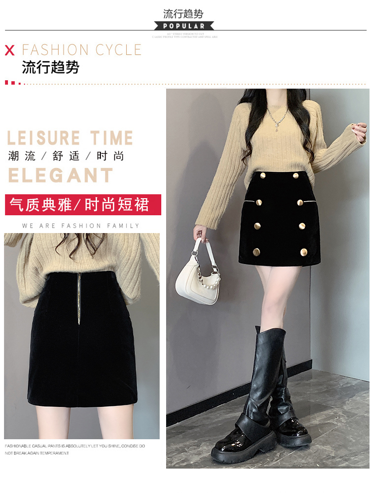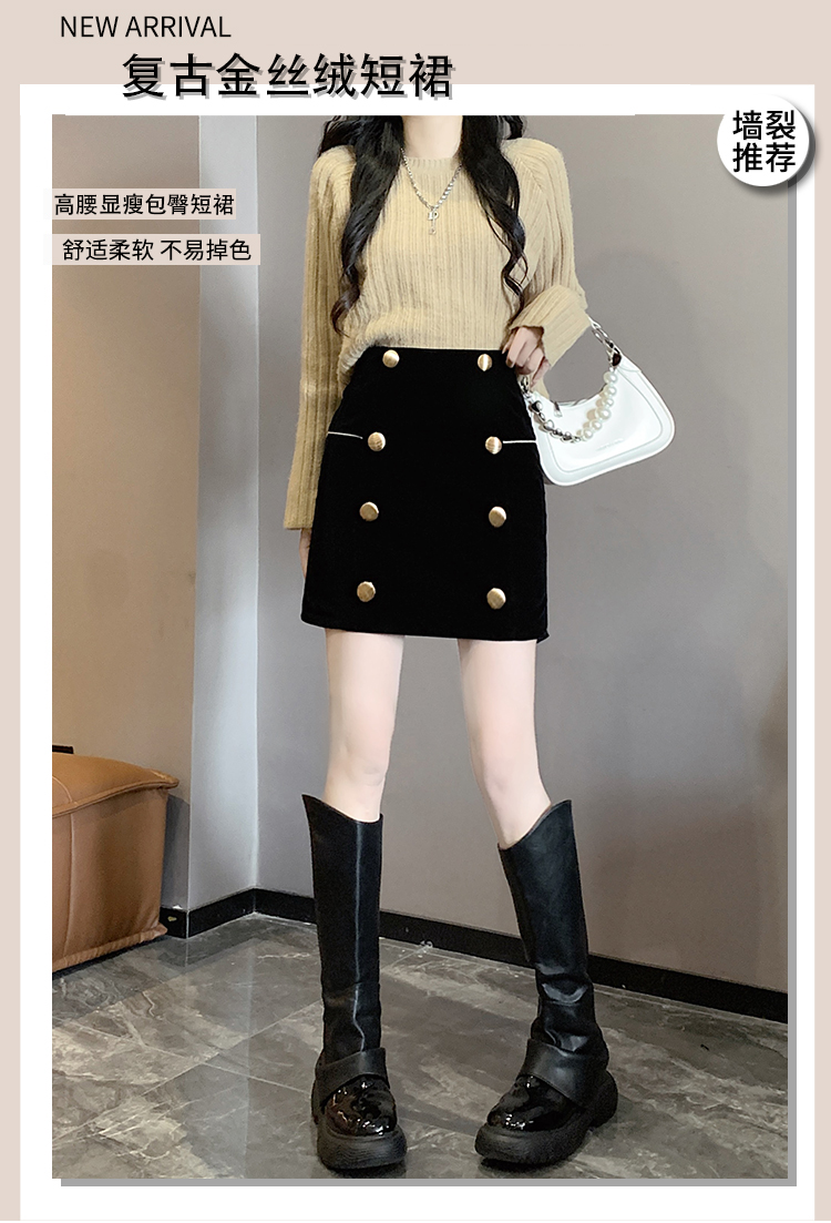 MY14180# 韩版时尚修身A字裙高腰显瘦减龄金丝绒半身裙大码女裝貨源服裝批發