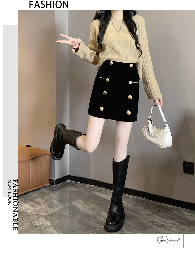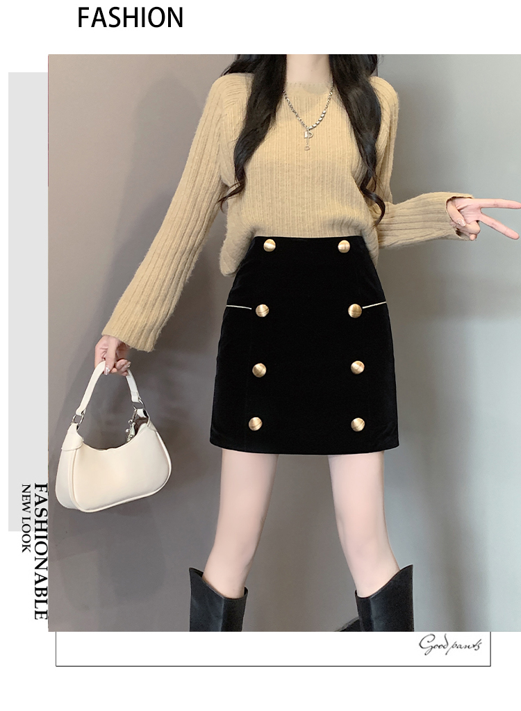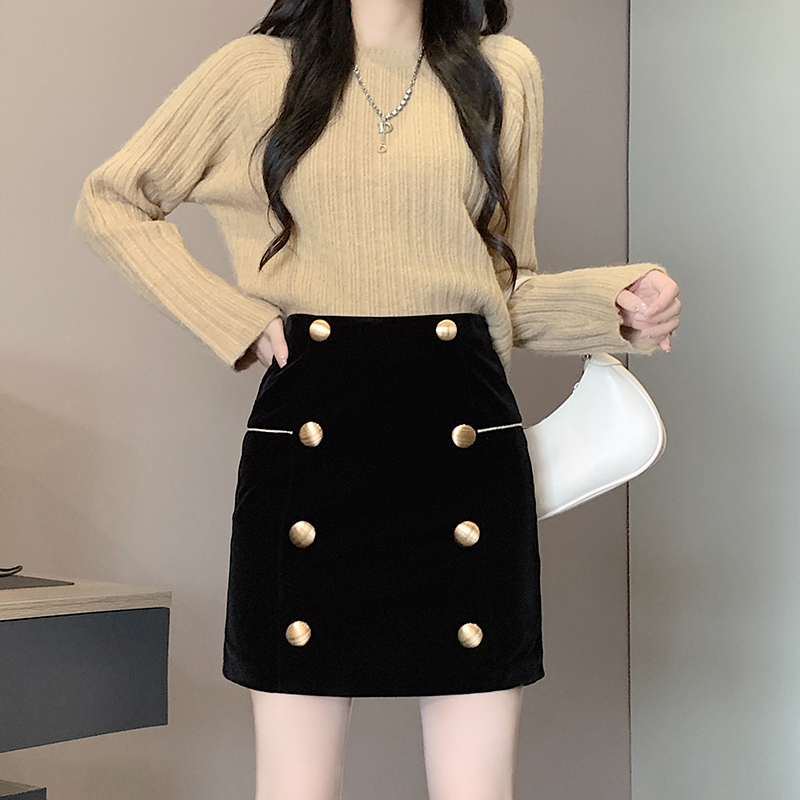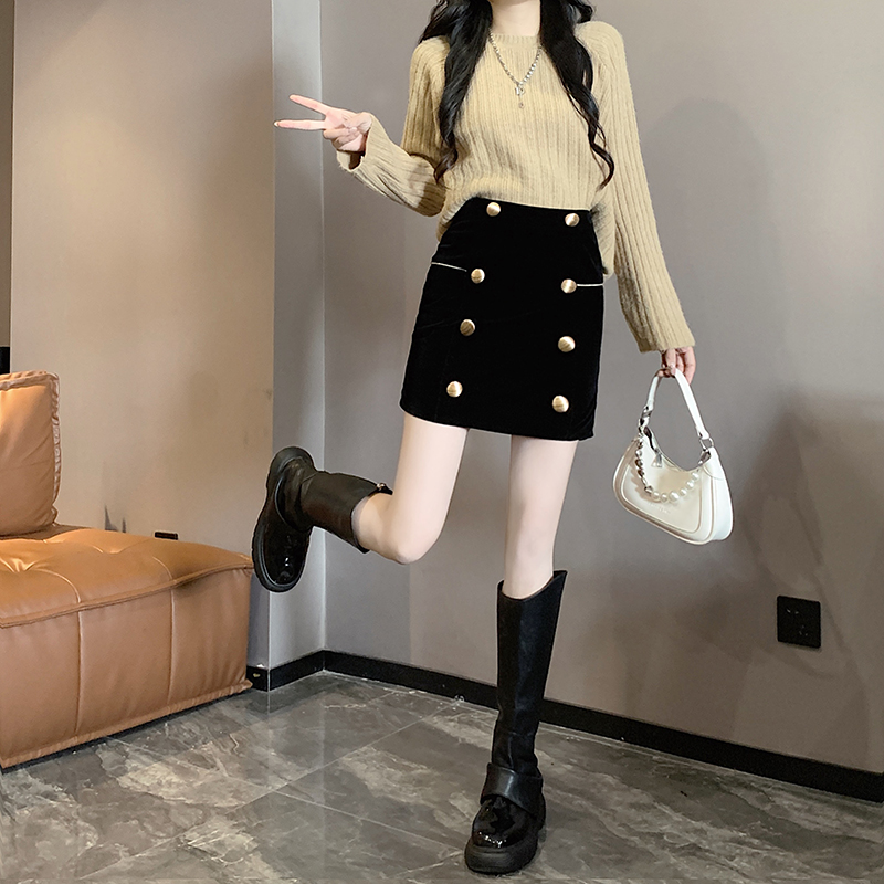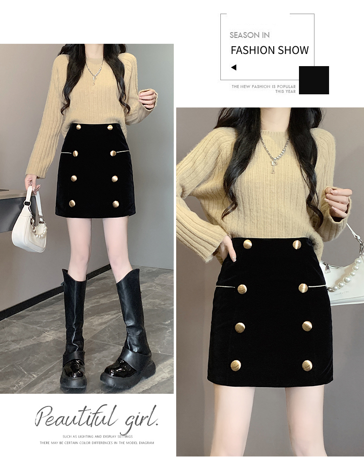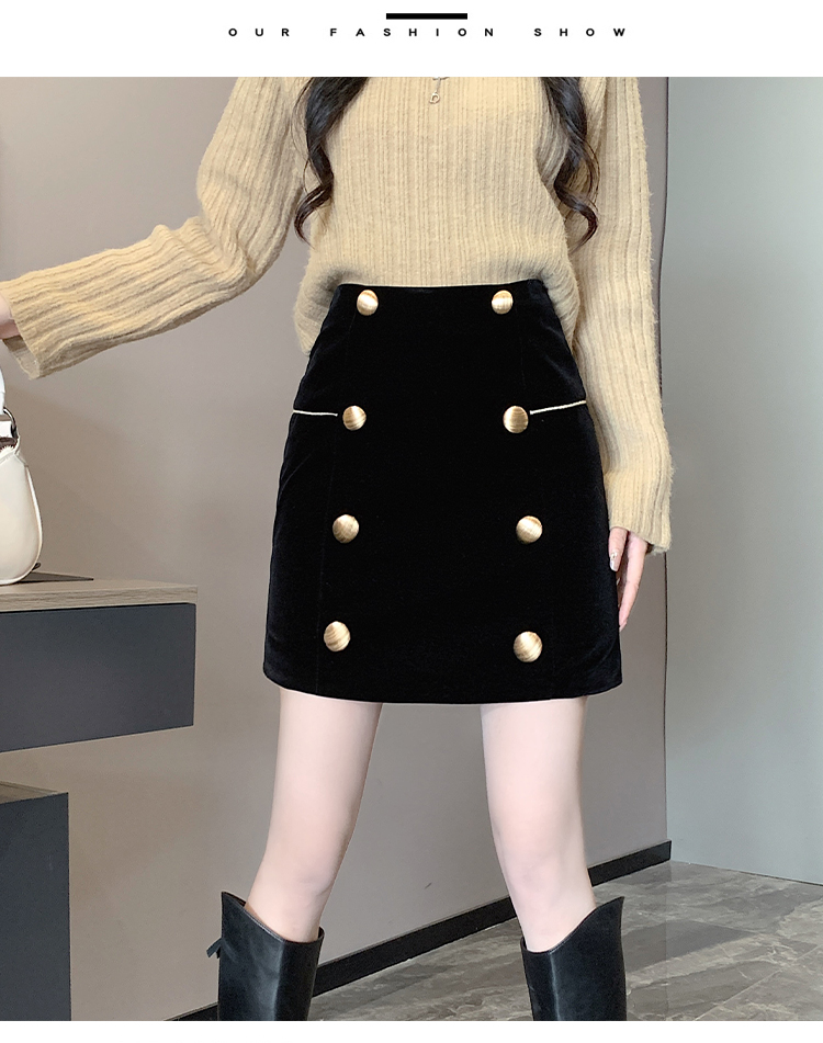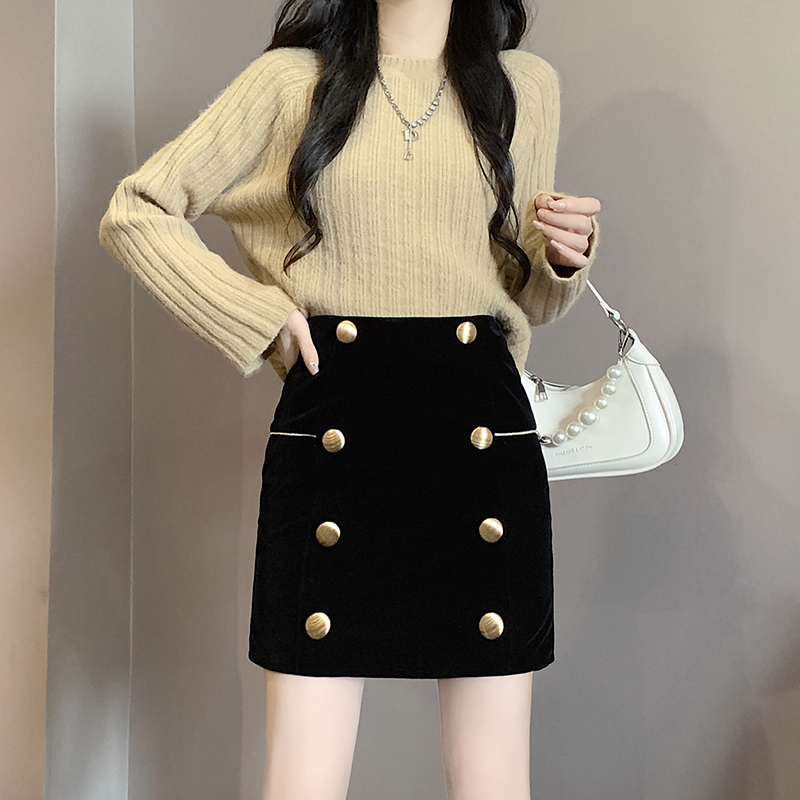 MY14180# 韩版时尚修身A字裙高腰显瘦减龄金丝绒半身裙大码女裝貨源服裝批發