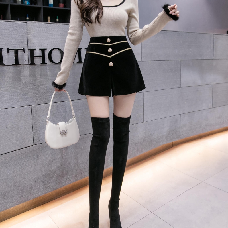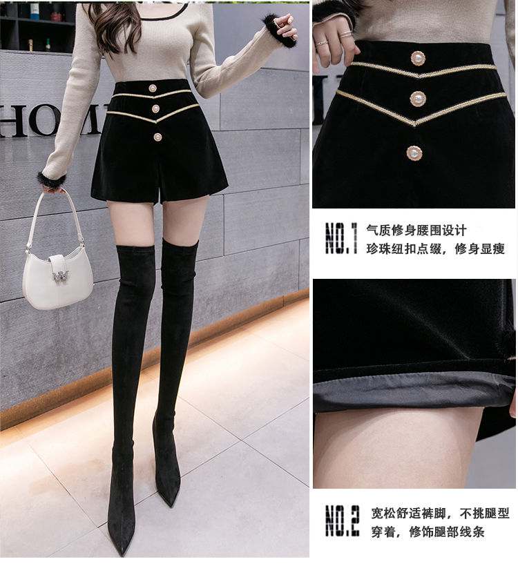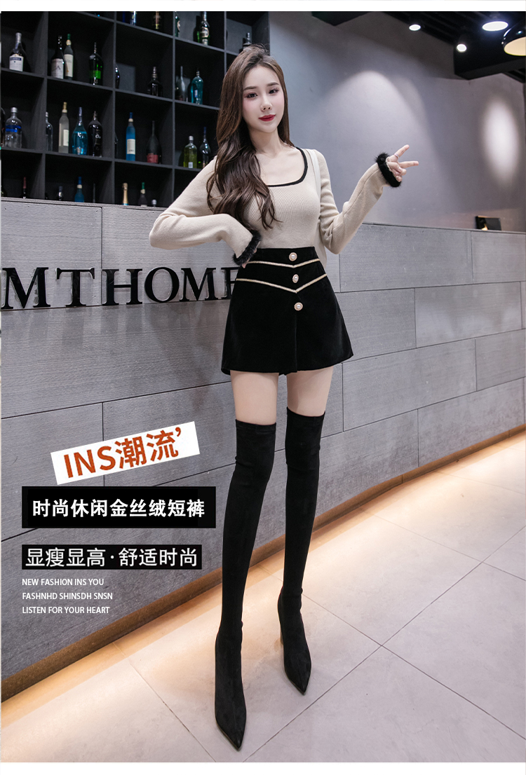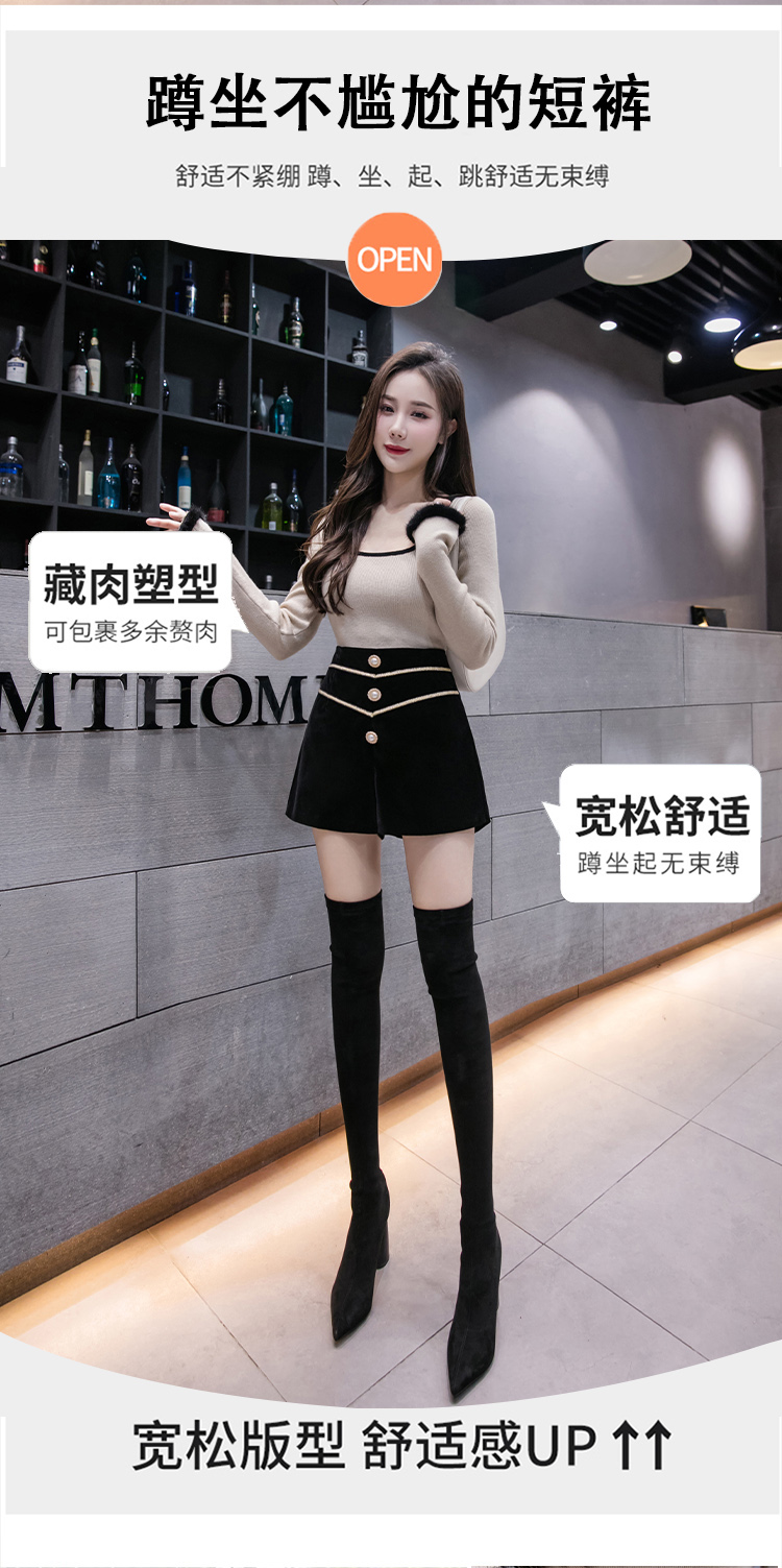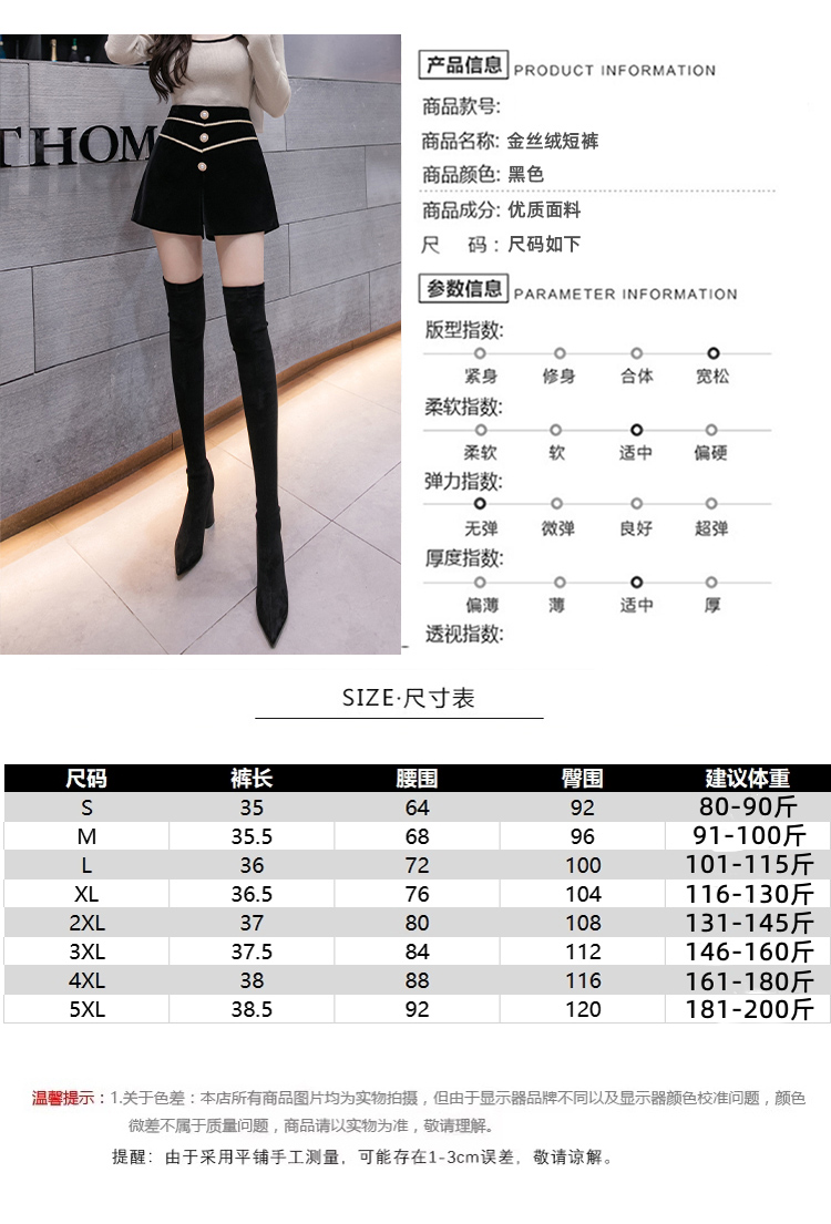 MY14183# 韩版宽松显瘦短裤时尚减龄金丝绒短裤靴裤女胖mm大码女裝貨...