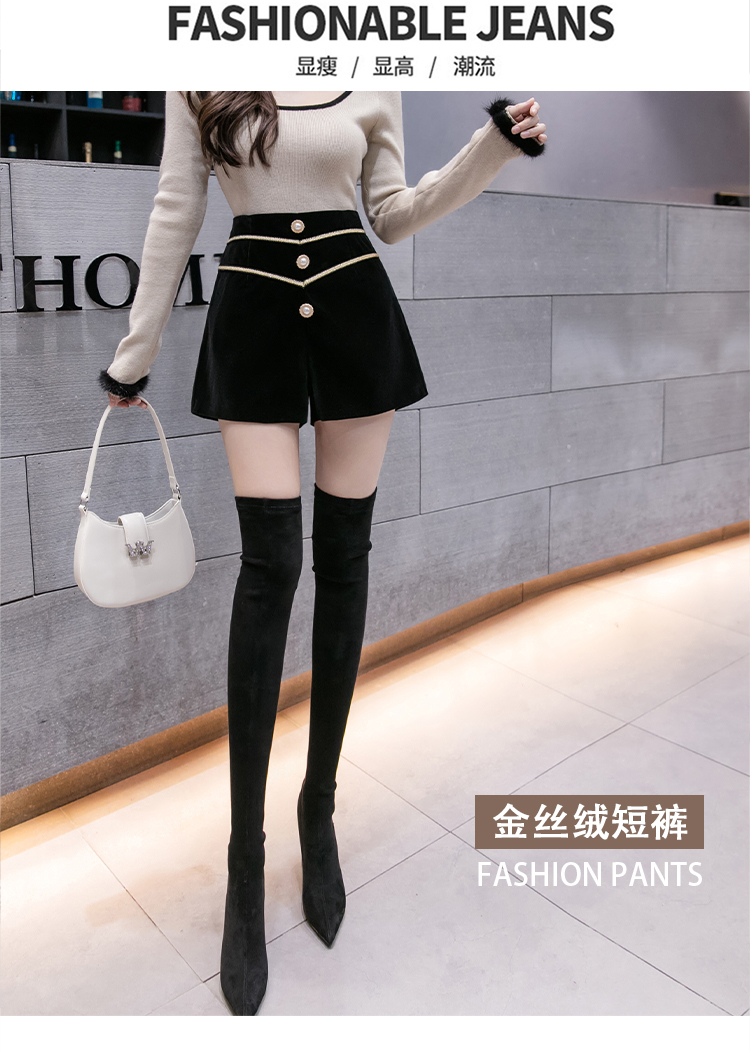 MY14182# 韩版时尚直筒裤减龄显瘦高腰金丝绒短裤靴裤胖mm大码女裝貨源服裝批發