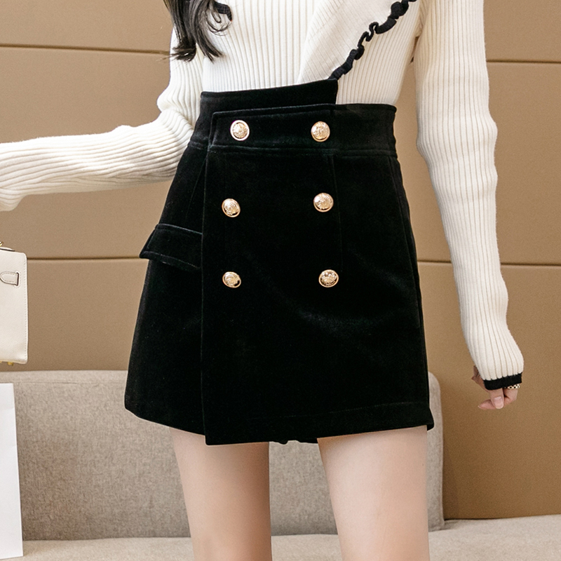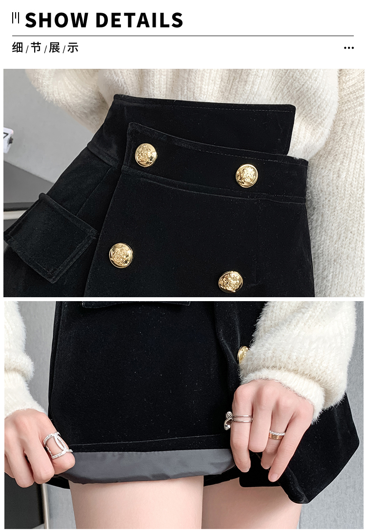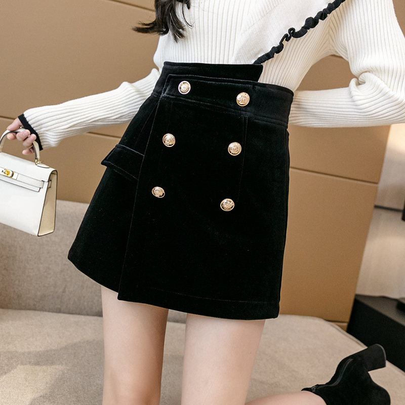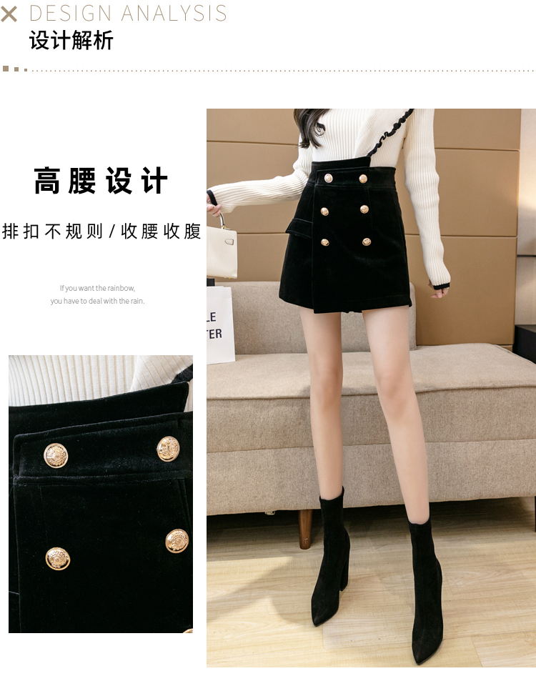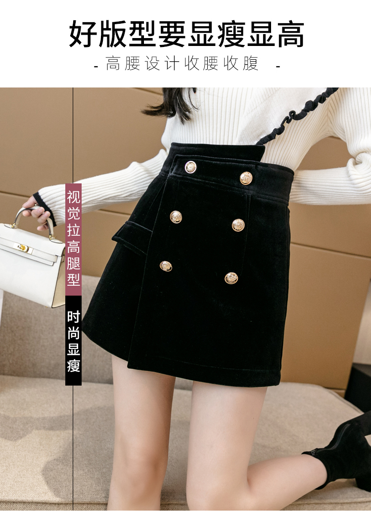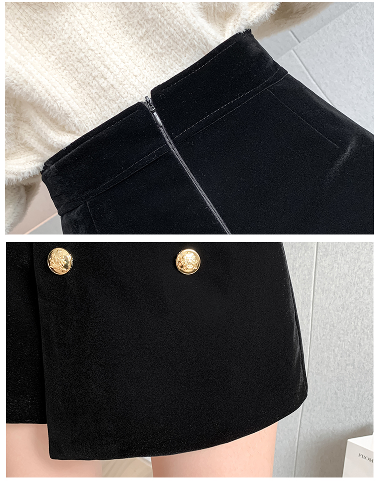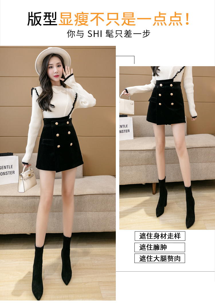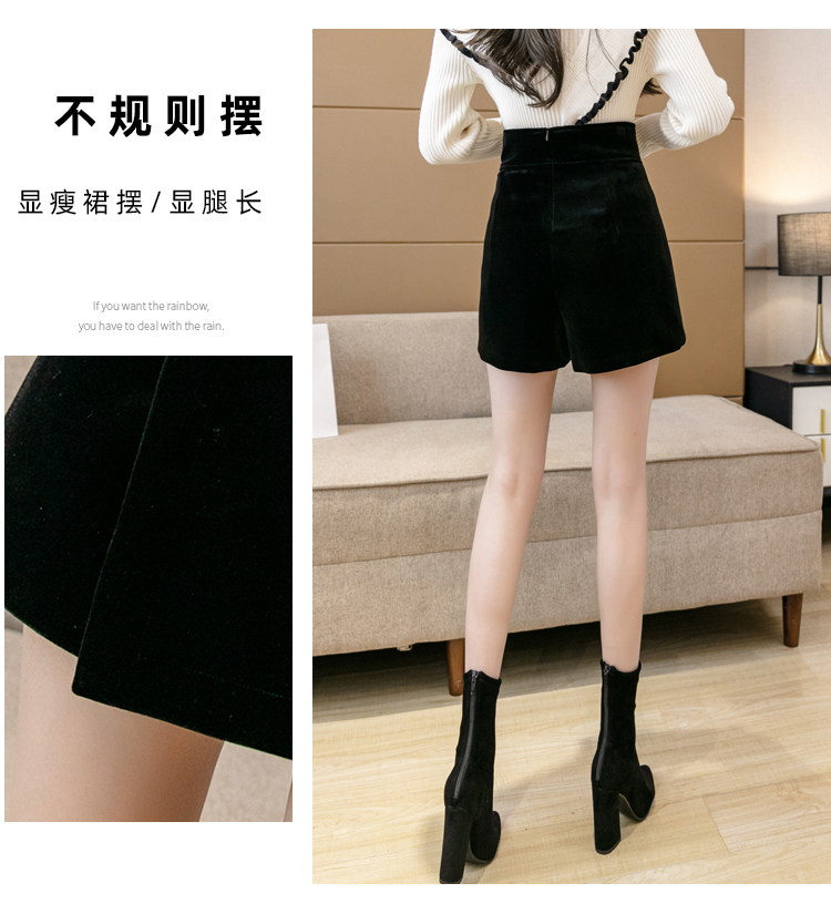 MY14184# 韩版不规则排扣金丝绒短裤女高腰显瘦外穿阔腿裤裙裤女裝貨源服裝批發
