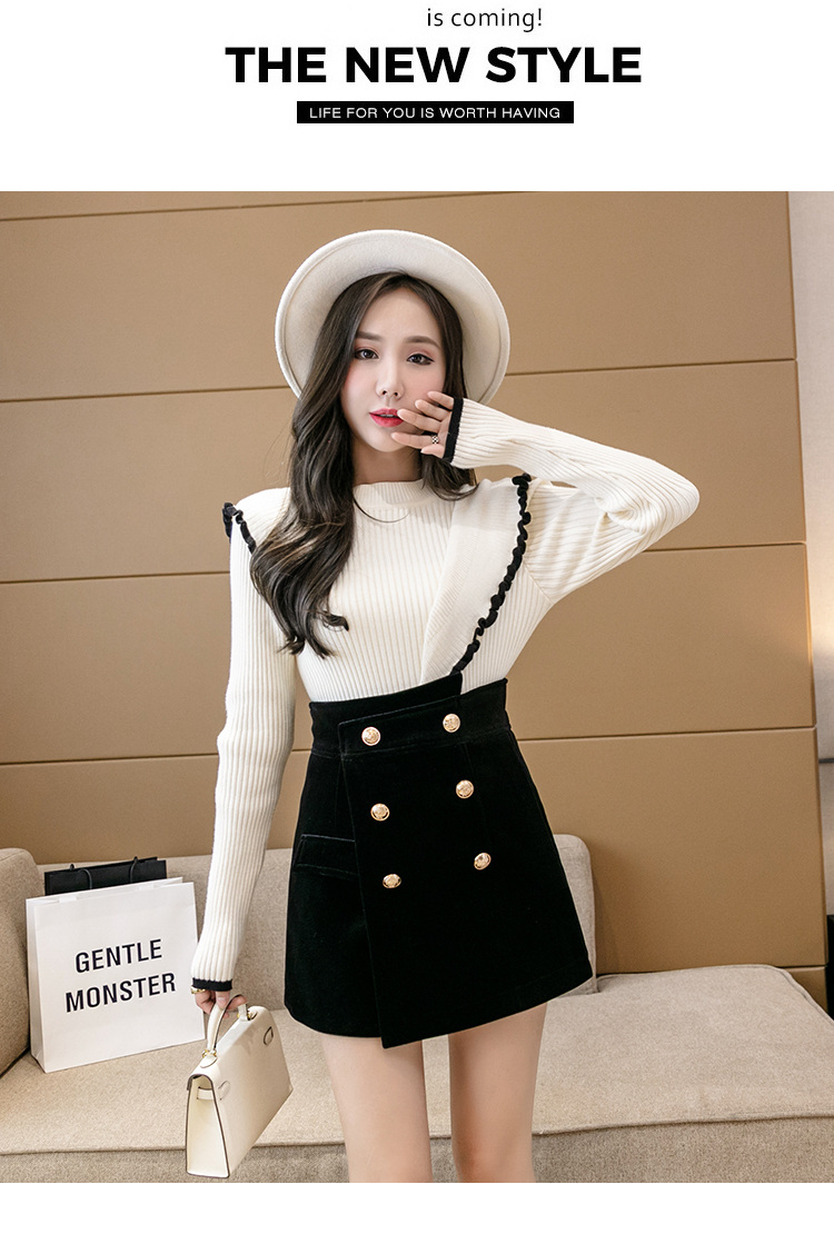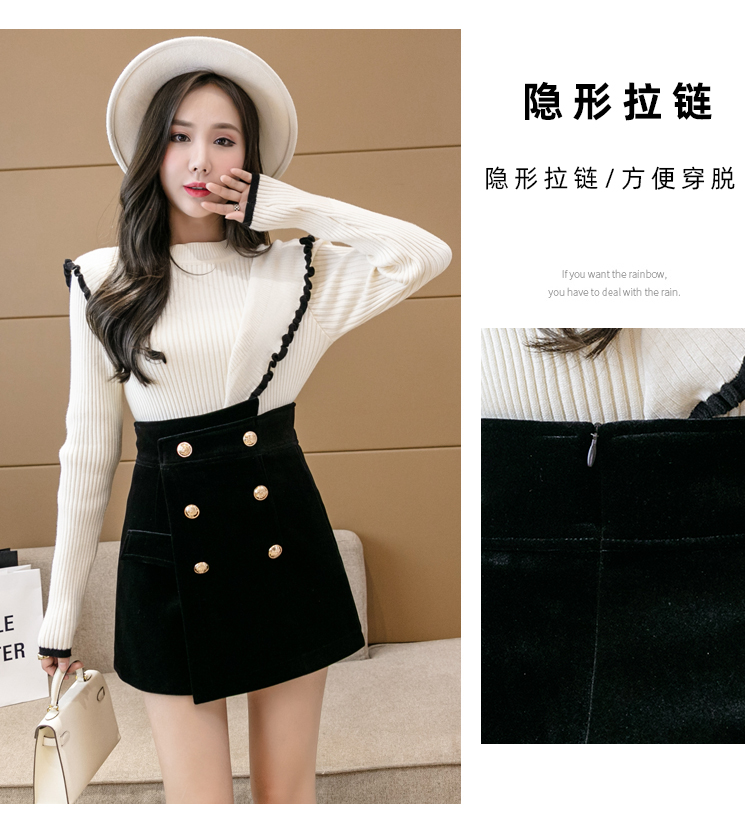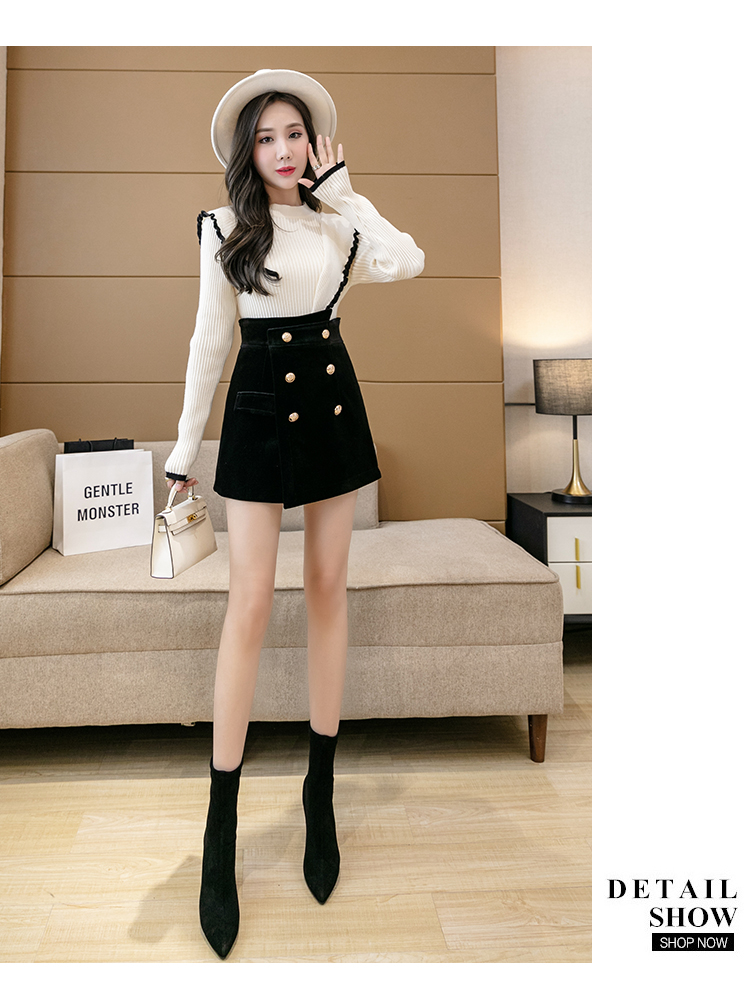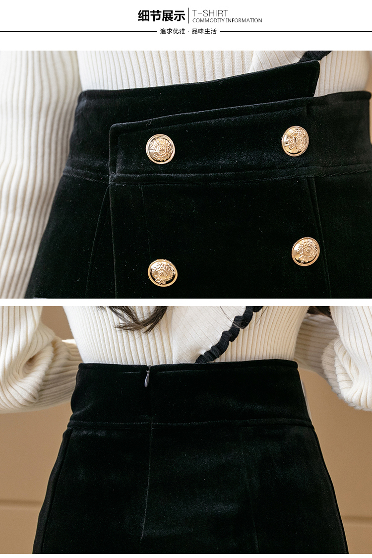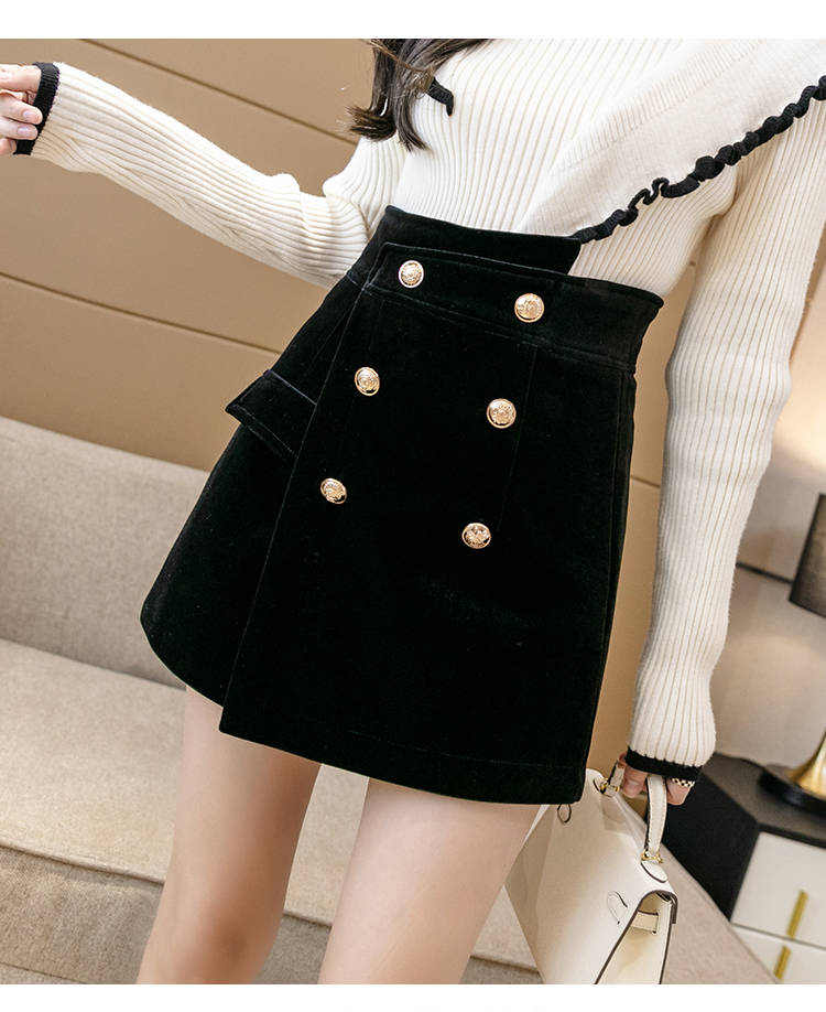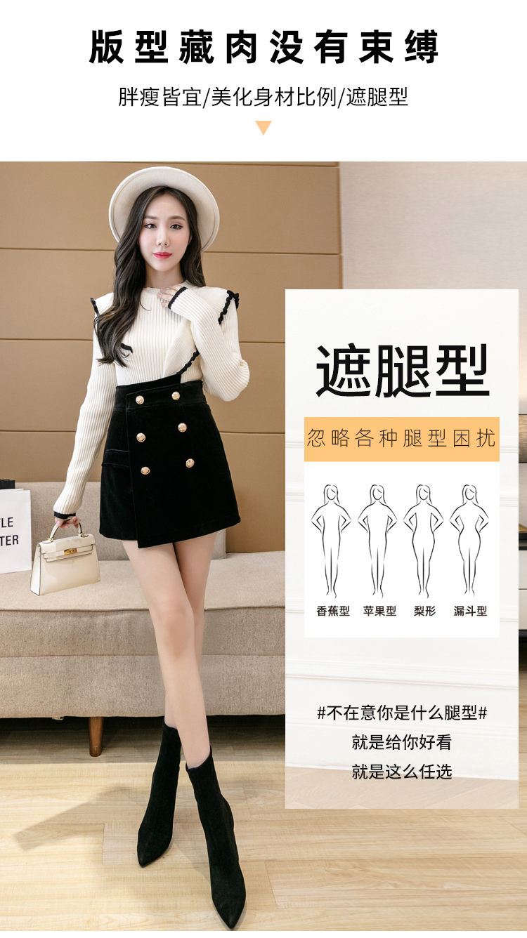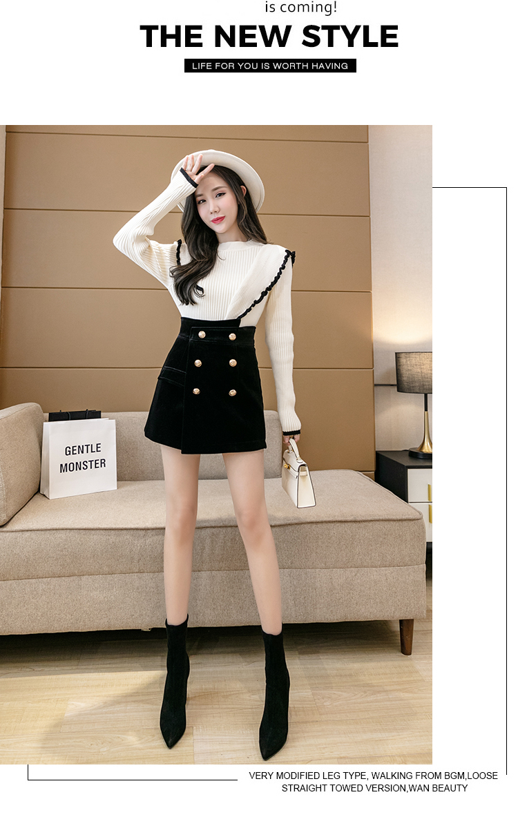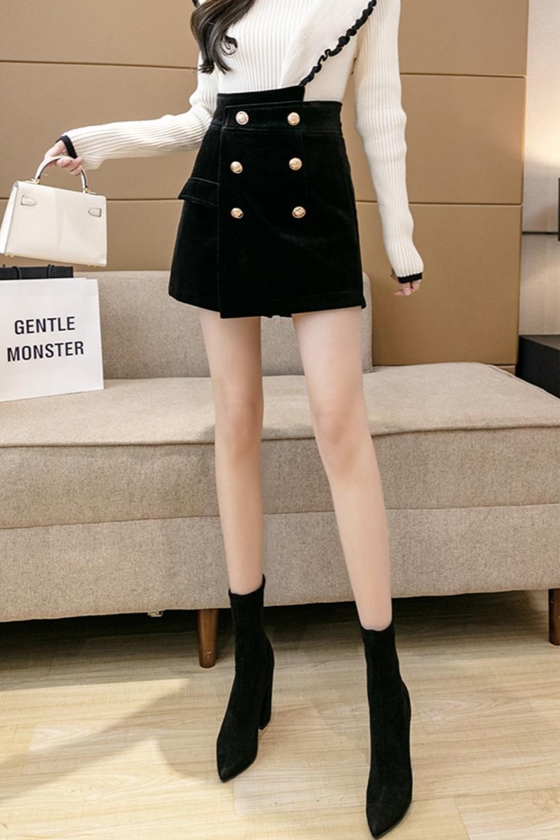 MY14184# 韩版不规则排扣金丝绒短裤女高腰显瘦外穿阔腿裤裙裤女裝貨源服裝批發