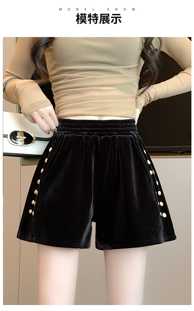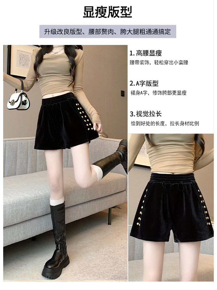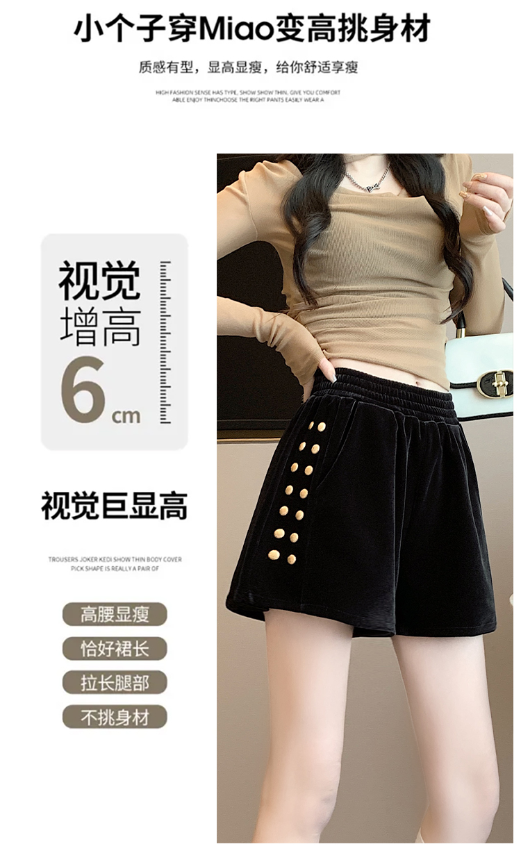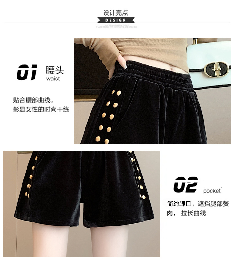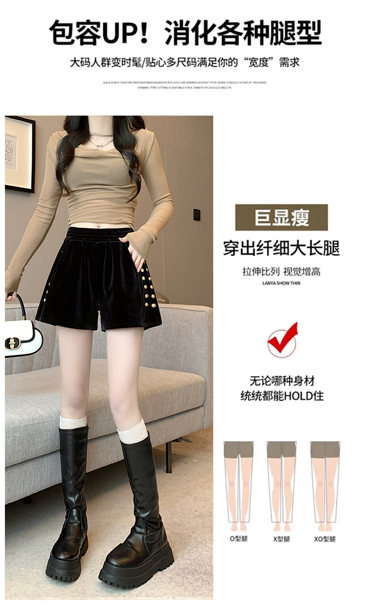 MY14185# 韩版时尚显瘦金丝绒松紧腰阔腿短裤百搭靴裤女大码女裝貨源服裝批發