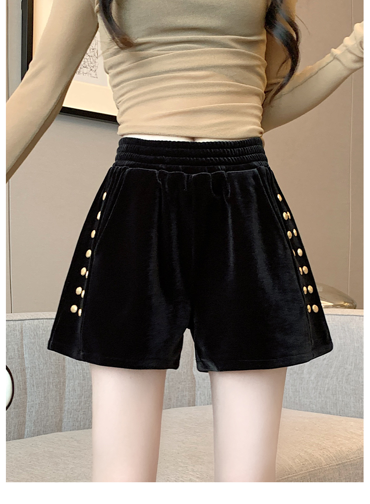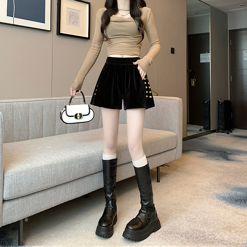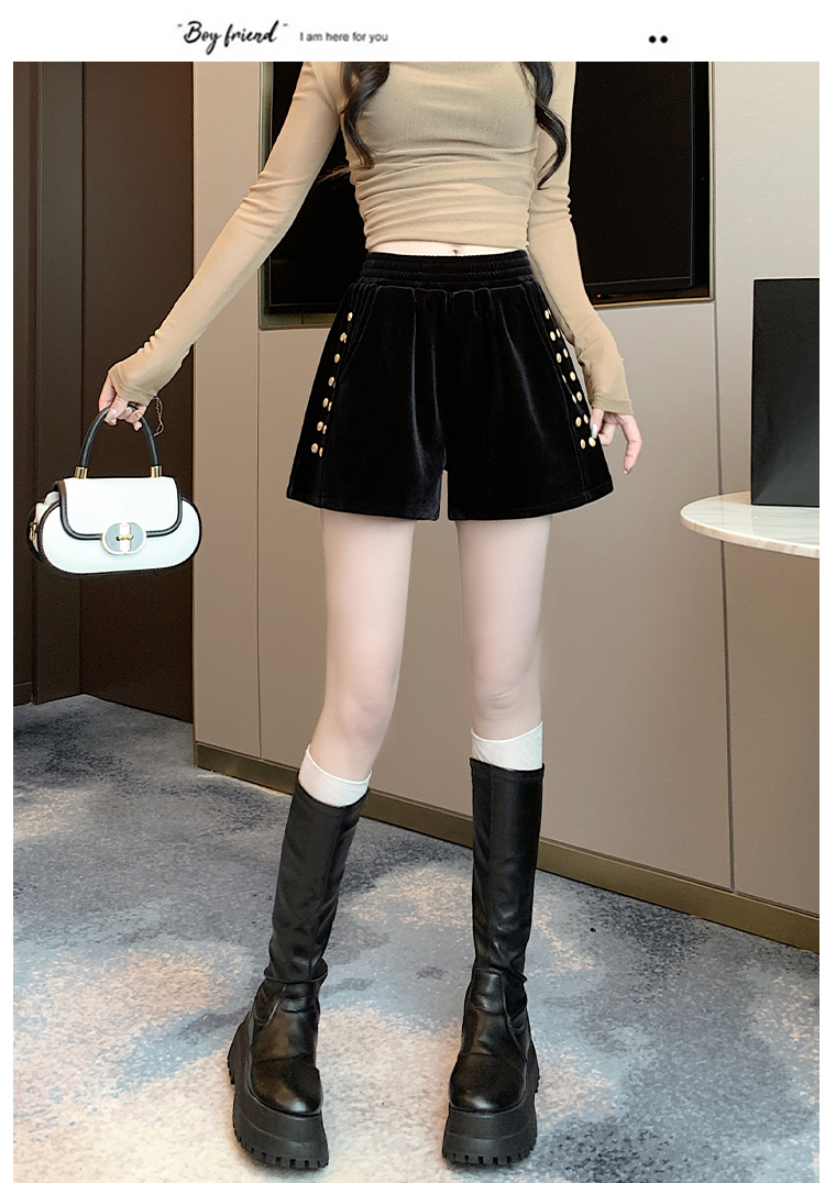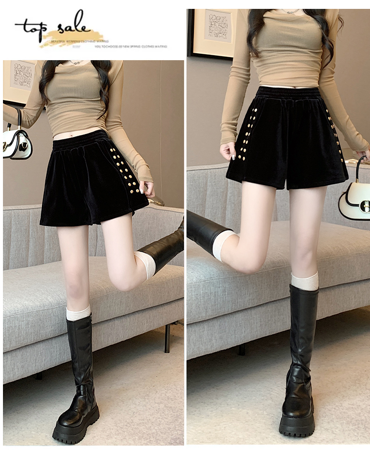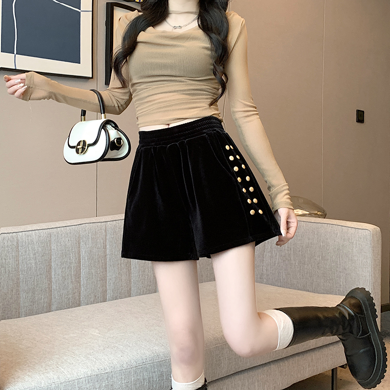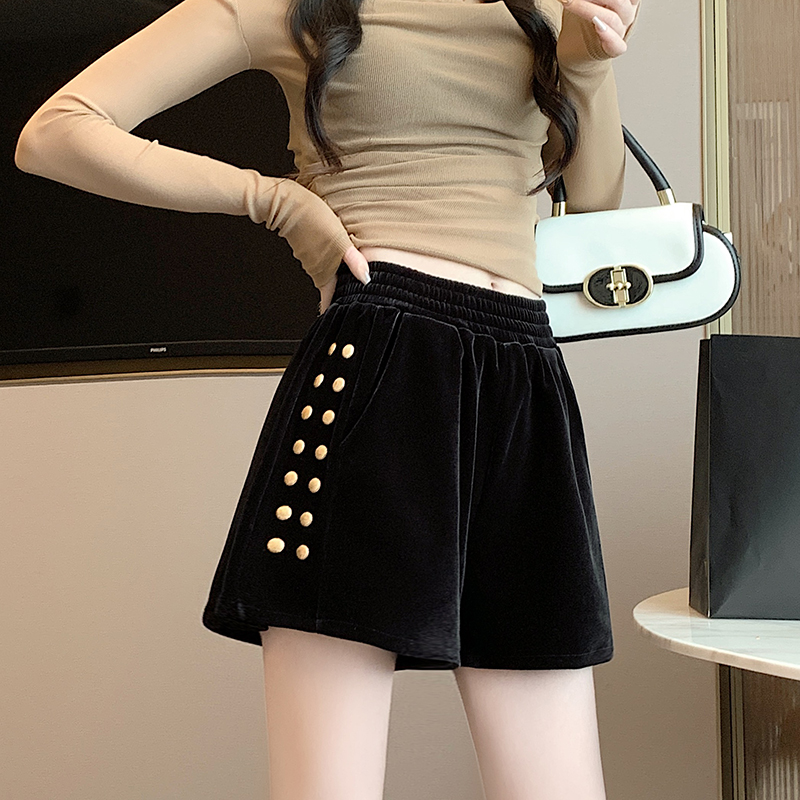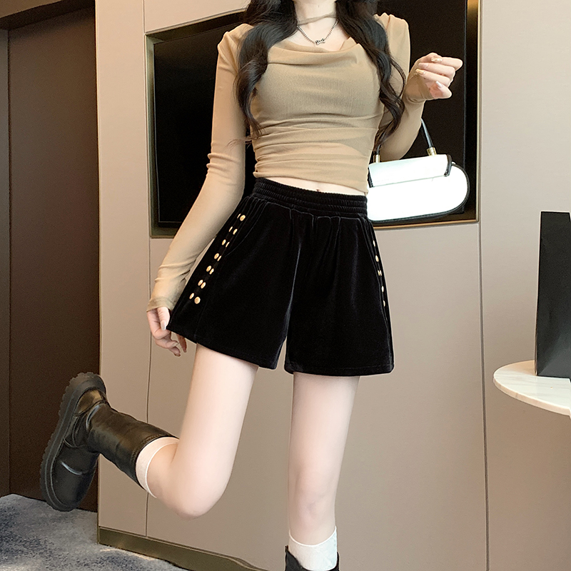 MY14185# 韩版时尚显瘦金丝绒松紧腰阔腿短裤百搭靴裤女大码女裝貨源服裝批發