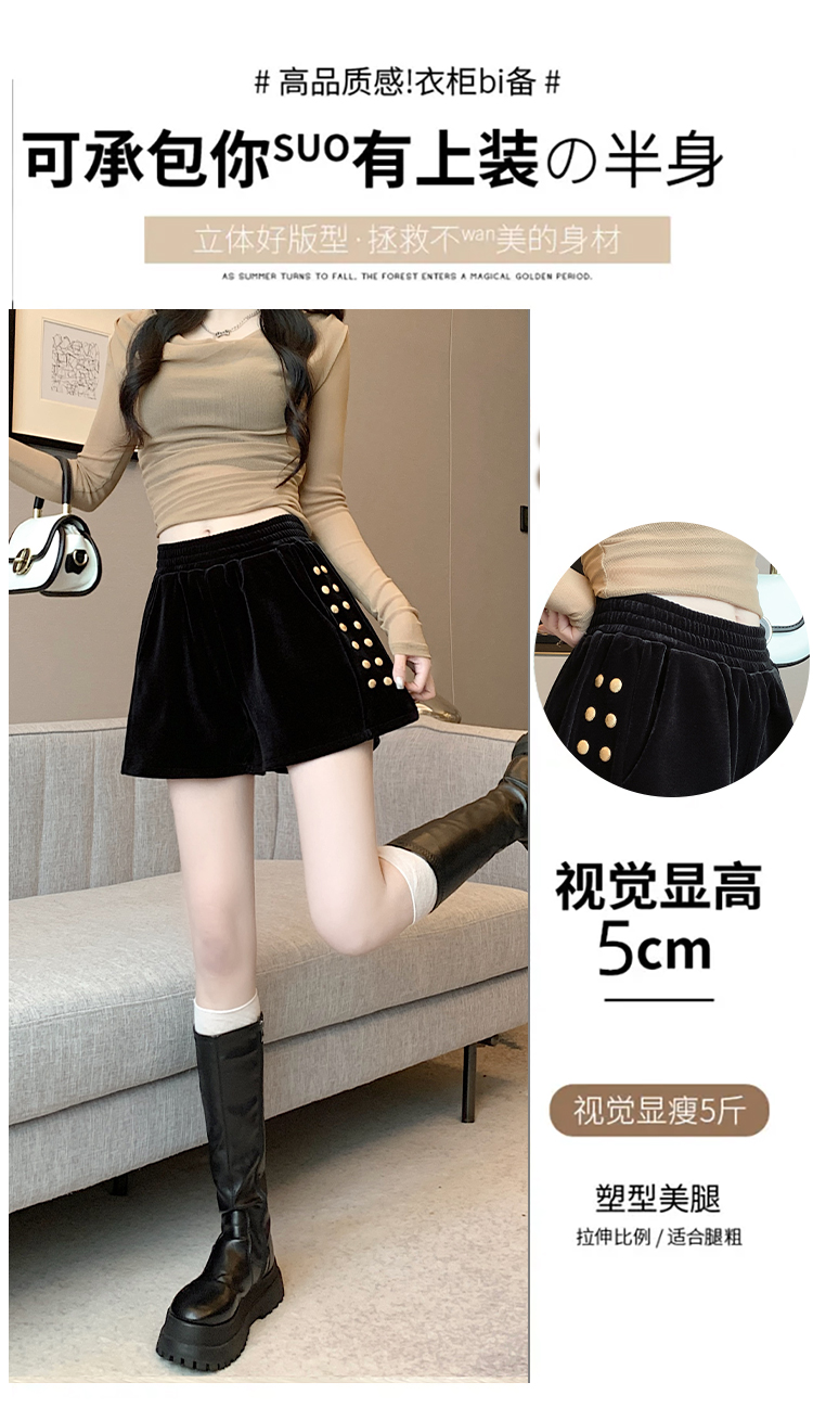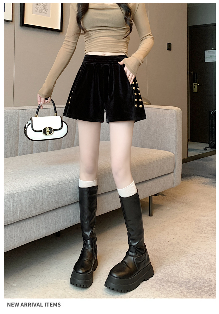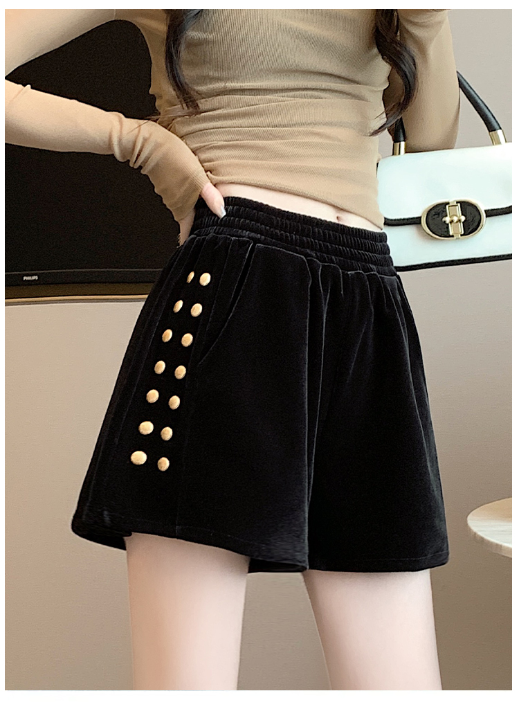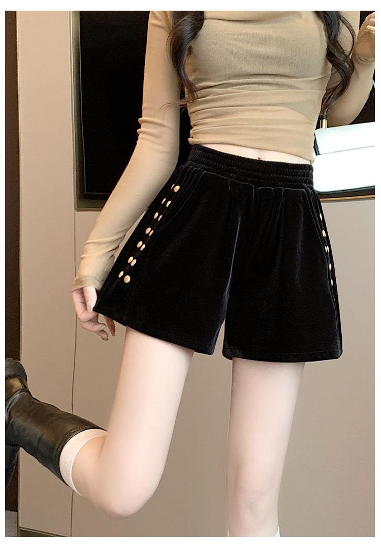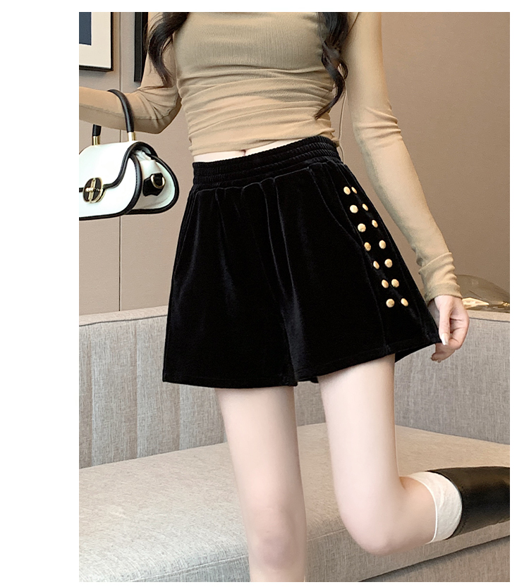 MY14185# 韩版时尚显瘦金丝绒松紧腰阔腿短裤百搭靴裤女大码女裝貨源服裝批發