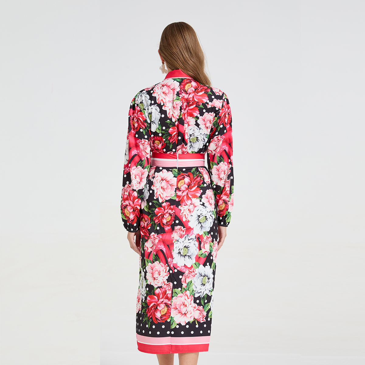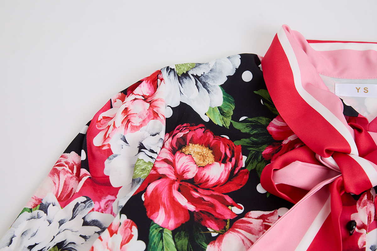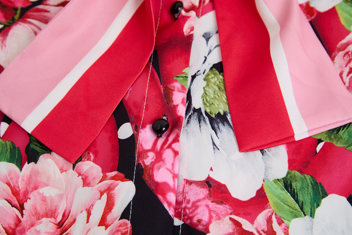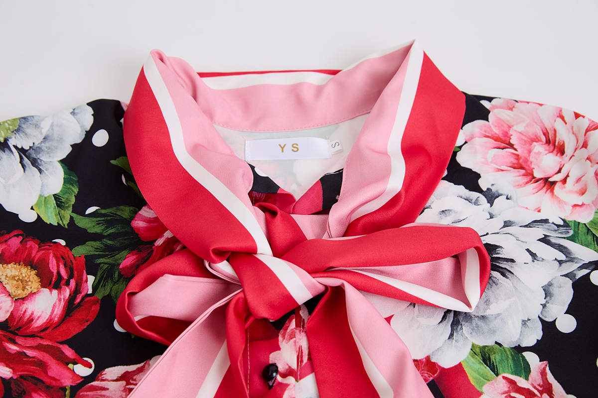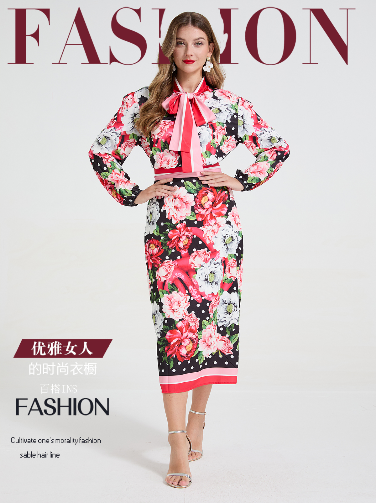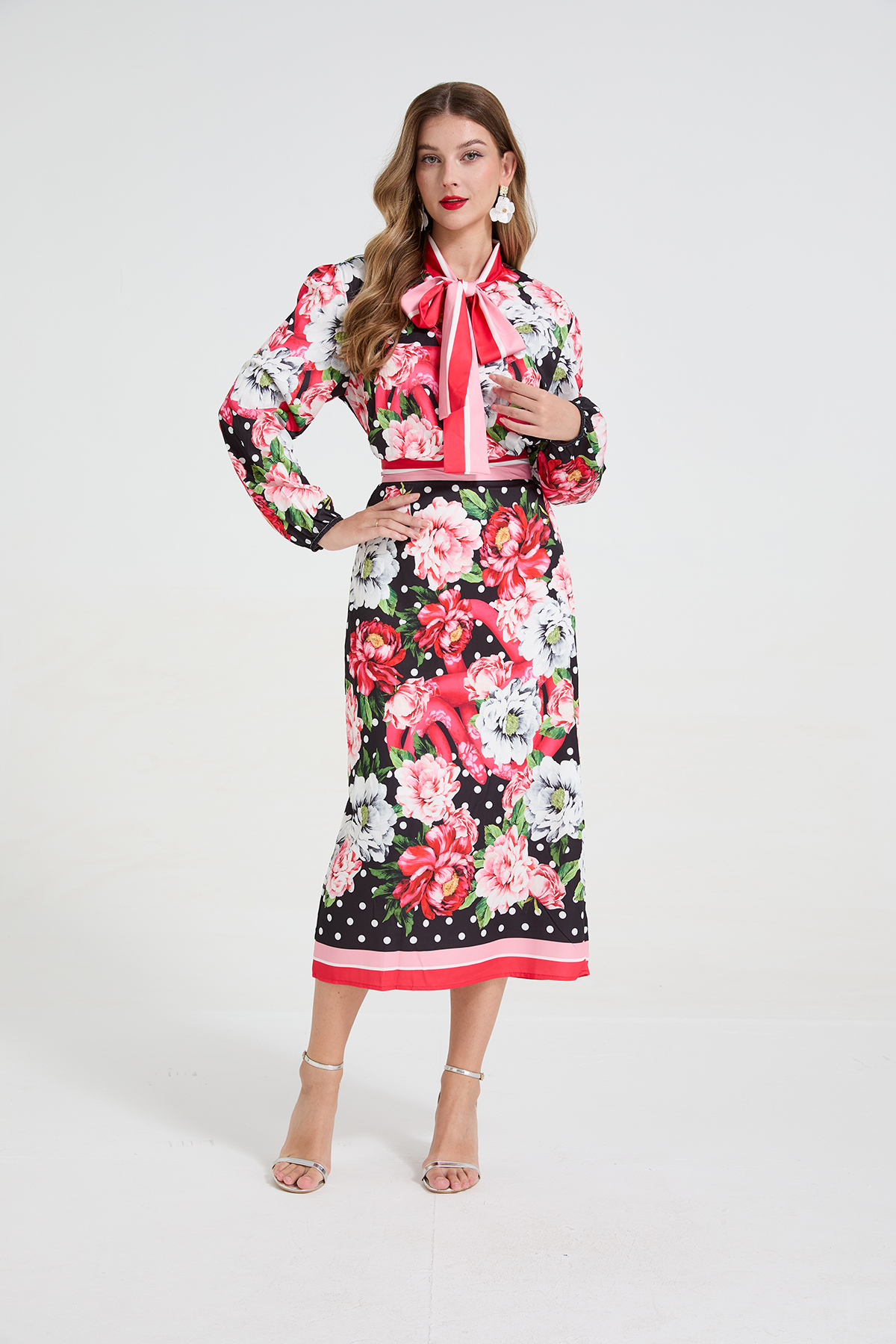 MY14186# 欧美风定位圆点大花蝴蝶结绑带衬衫+高腰半身裙两件套女裝貨源服裝批發