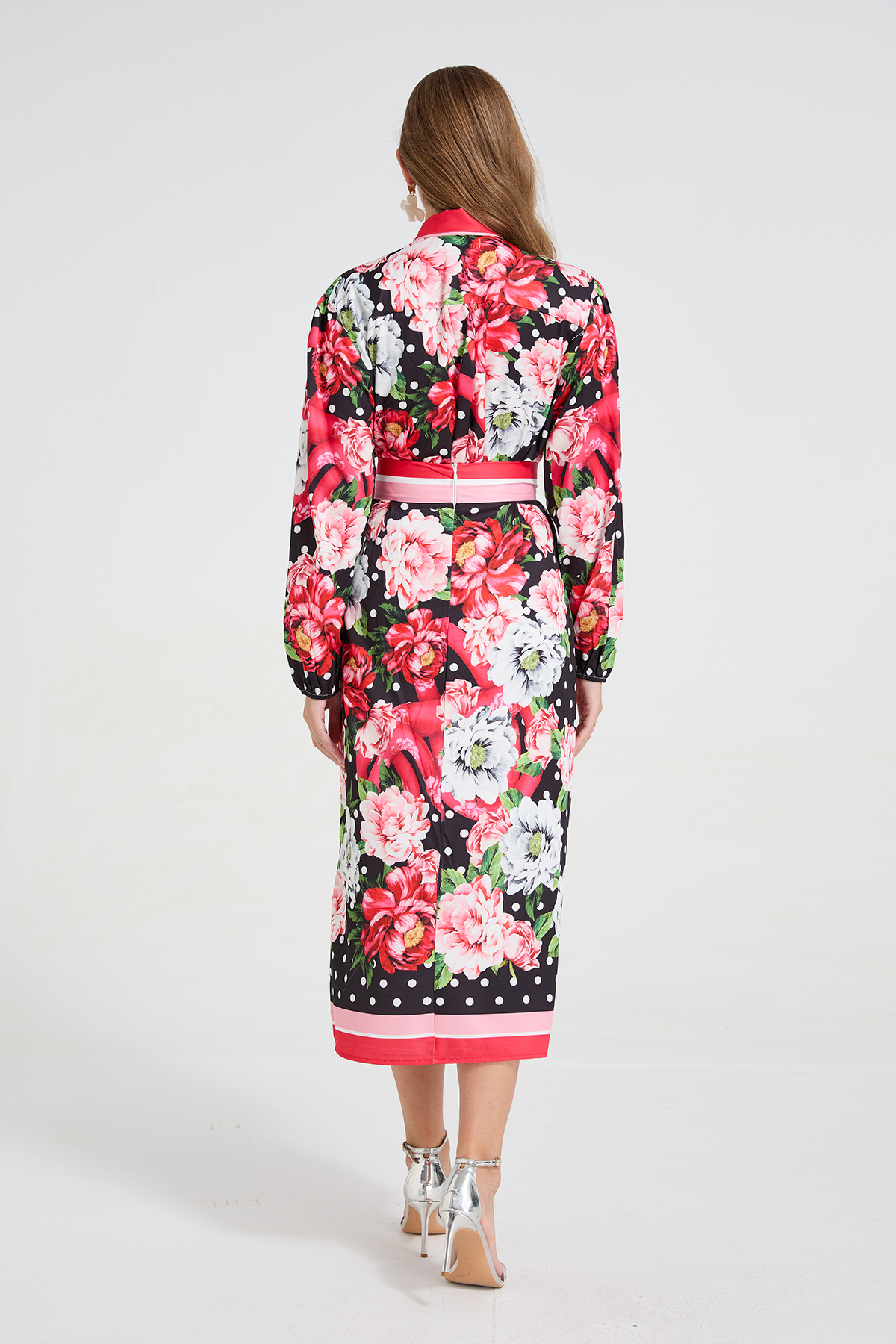 MY14189# 定位复古印花圆领开叉长袖个性连衣裙 宽松短款裙女裝貨源服...