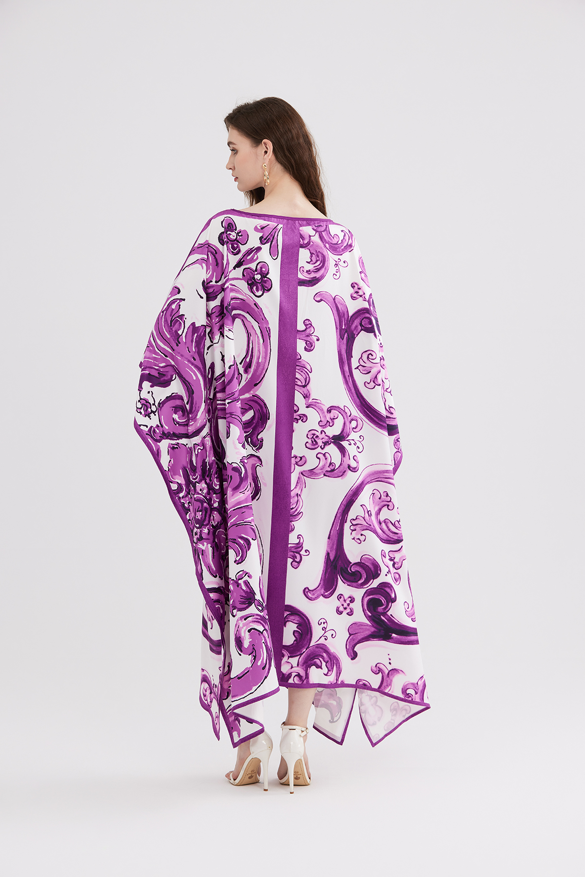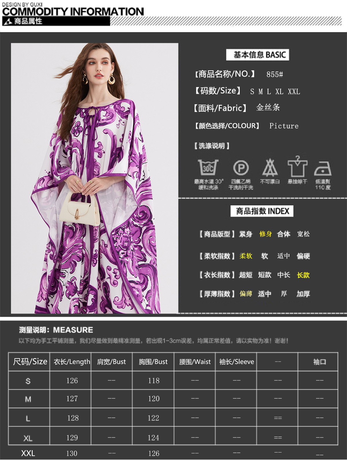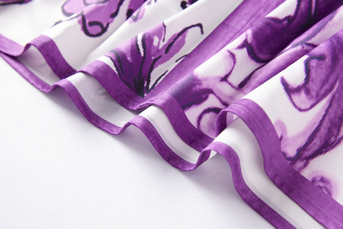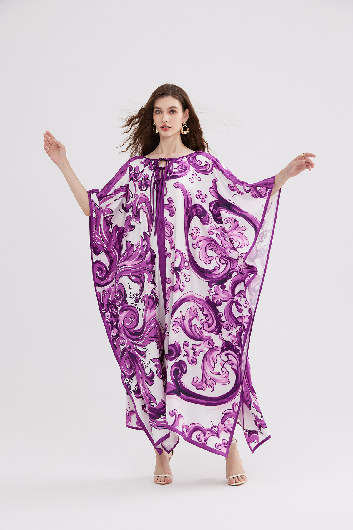MY14188# 夏季新品紫色大花宽松连衣裙 蝴蝶结绑带蝙蝠大摆裙女裝貨源服裝批發
