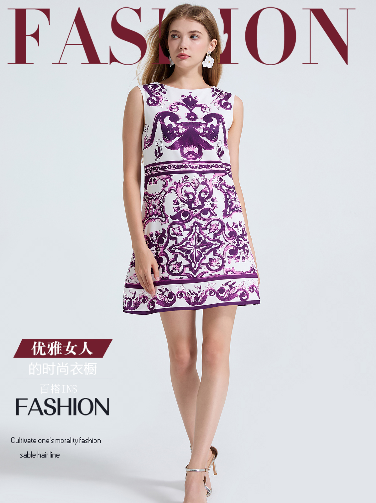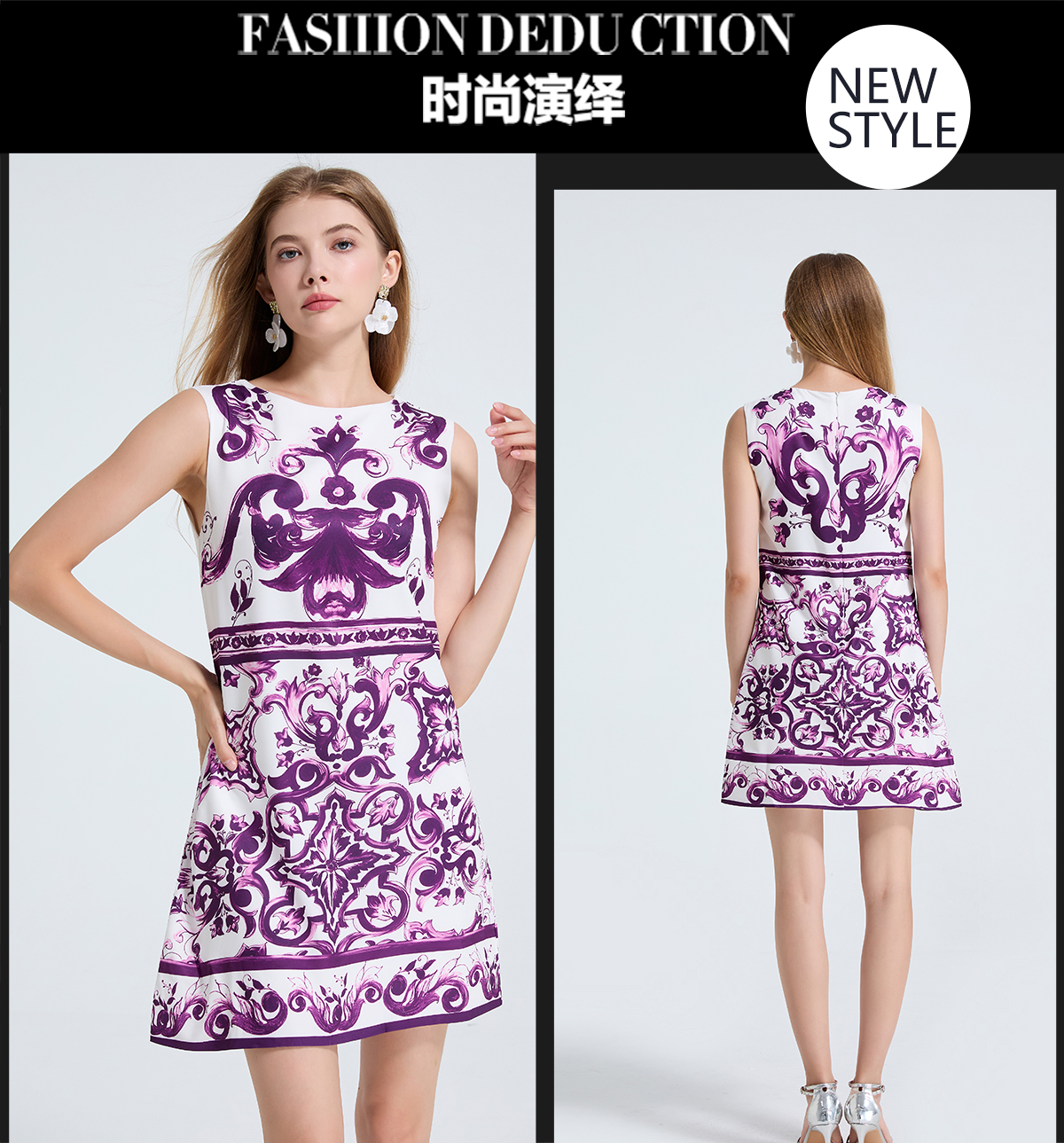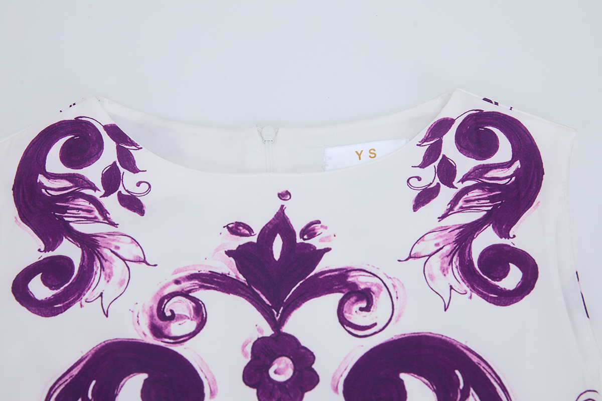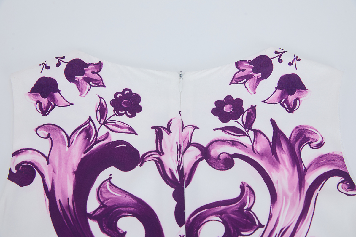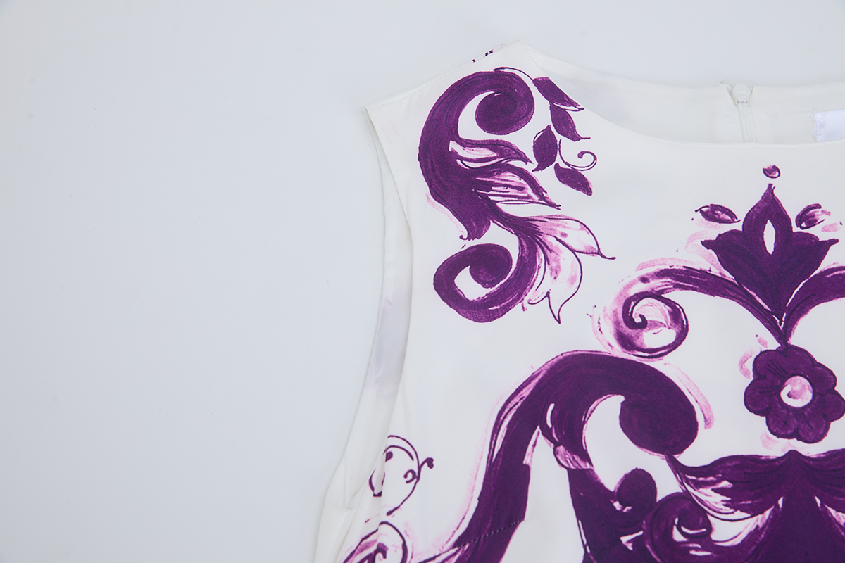 MY14191# 欧美定位印花无袖连衣裙 高腰修身圆领短裙女裝貨源服裝批發