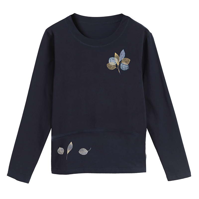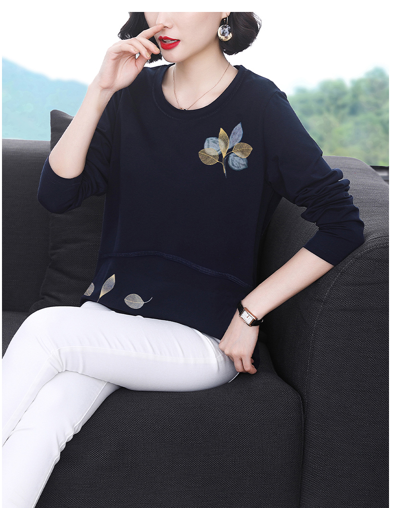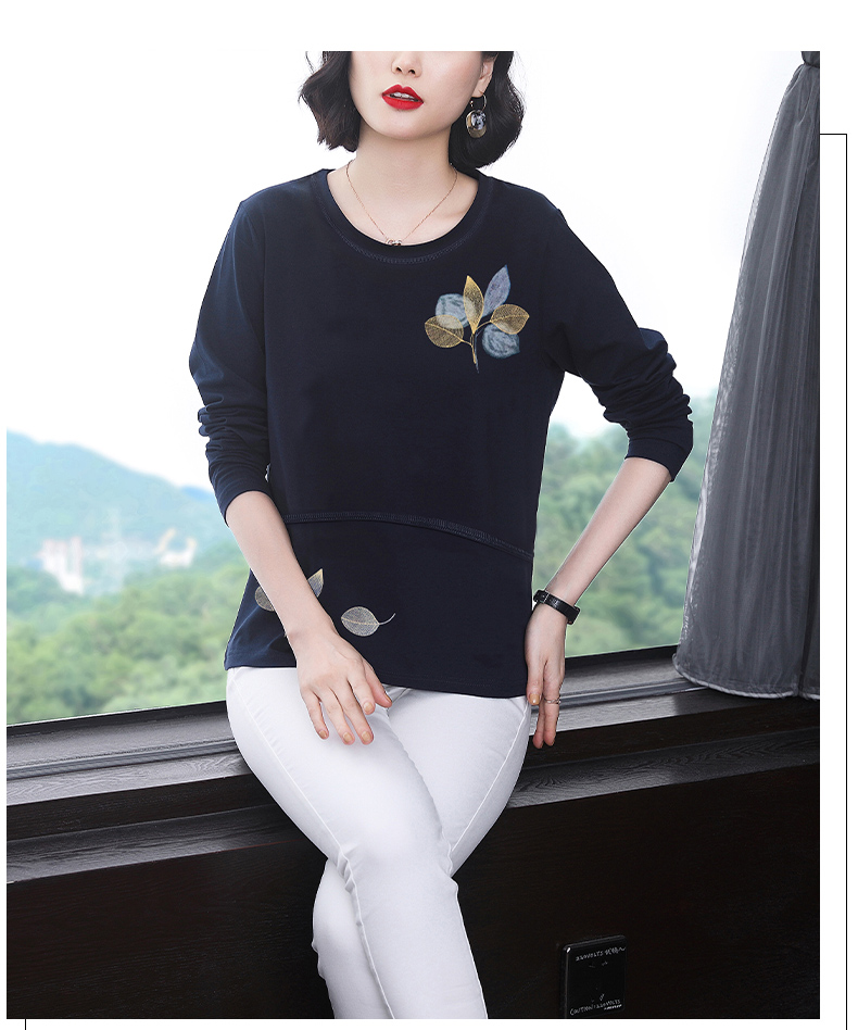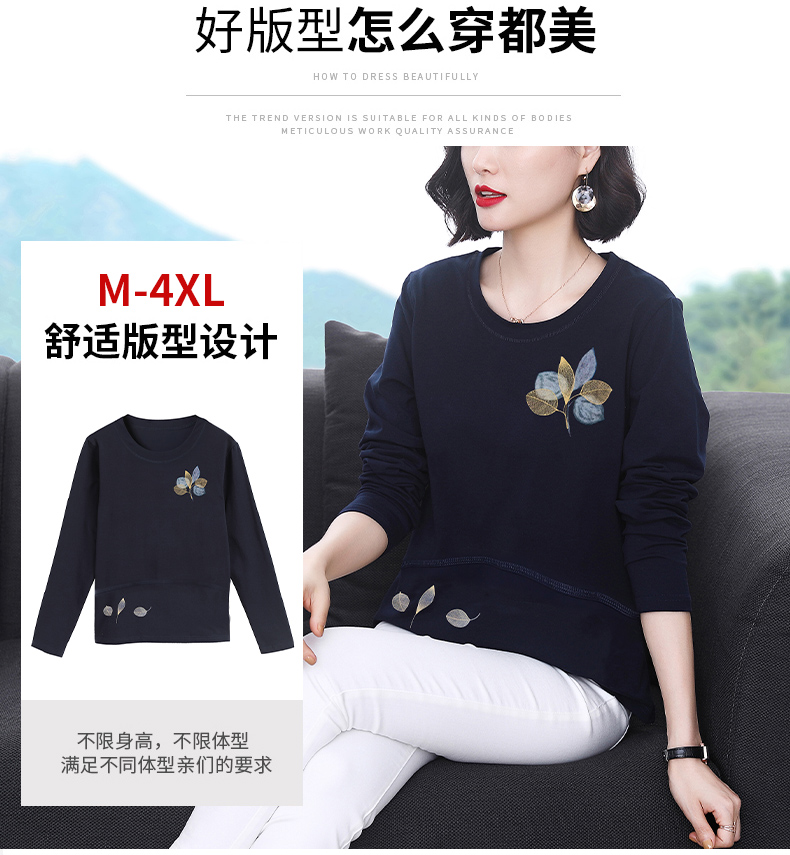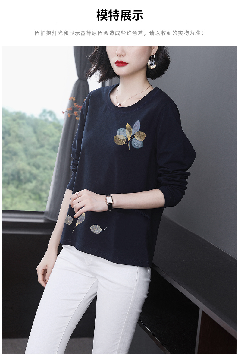 MY14200# 圆领长袖T恤新款简约刺绣大码百搭休闲套头气质上衣女裝貨源服裝批發
