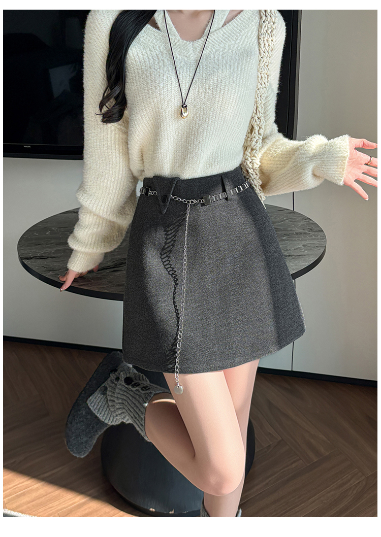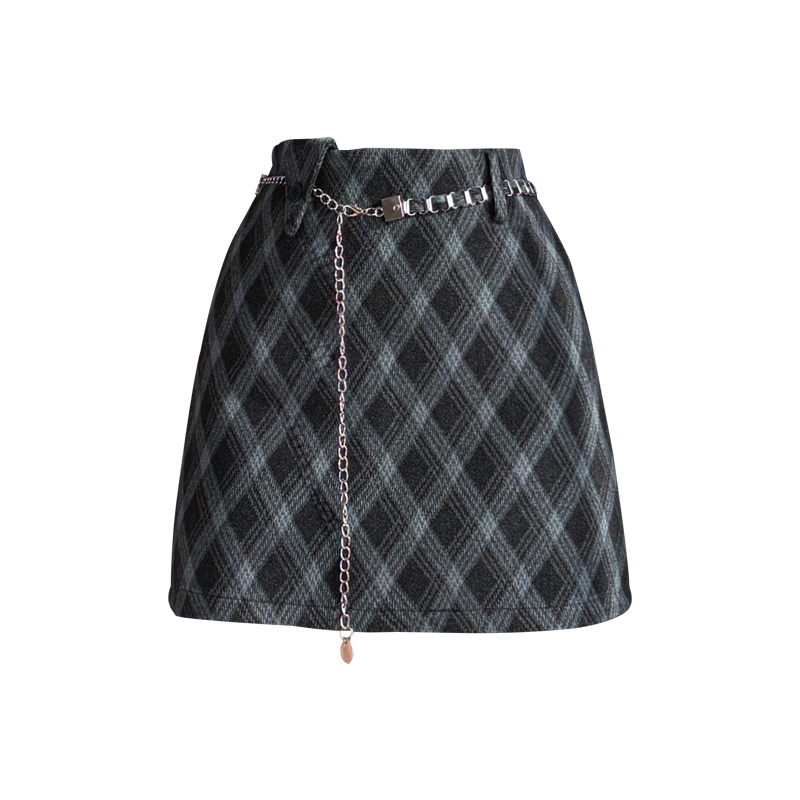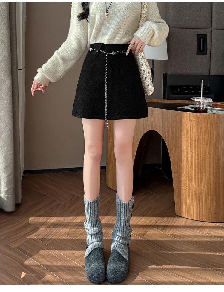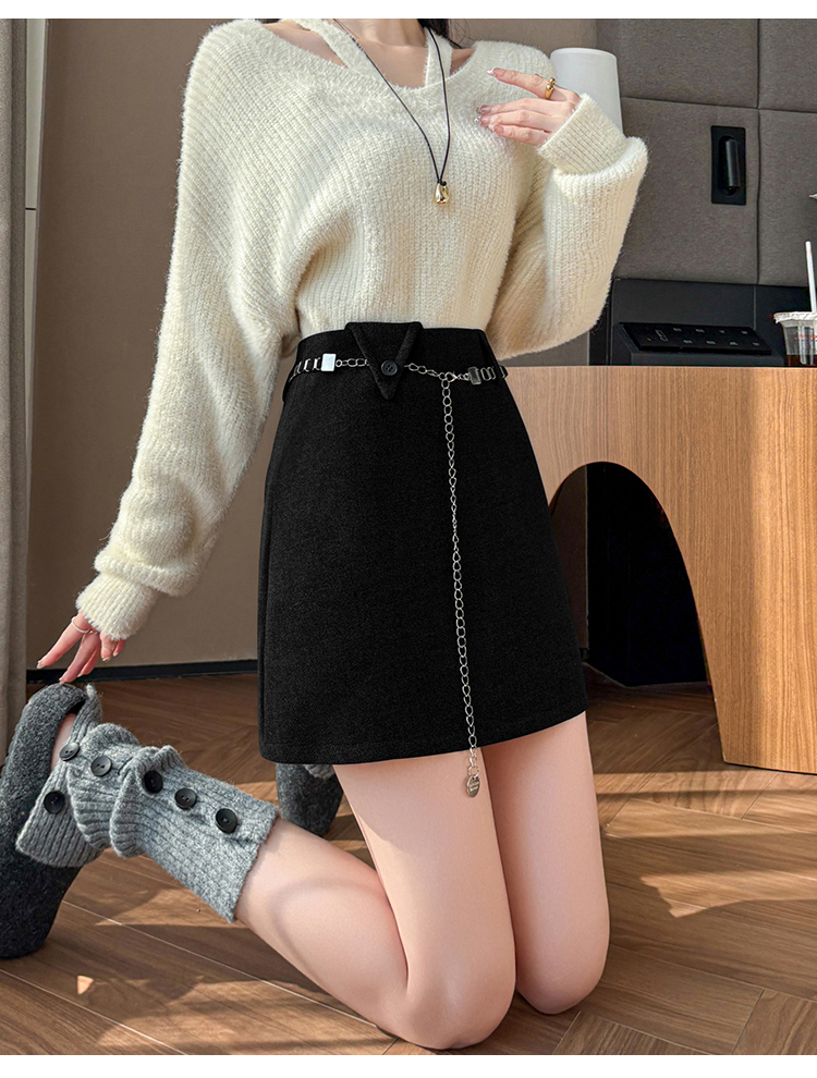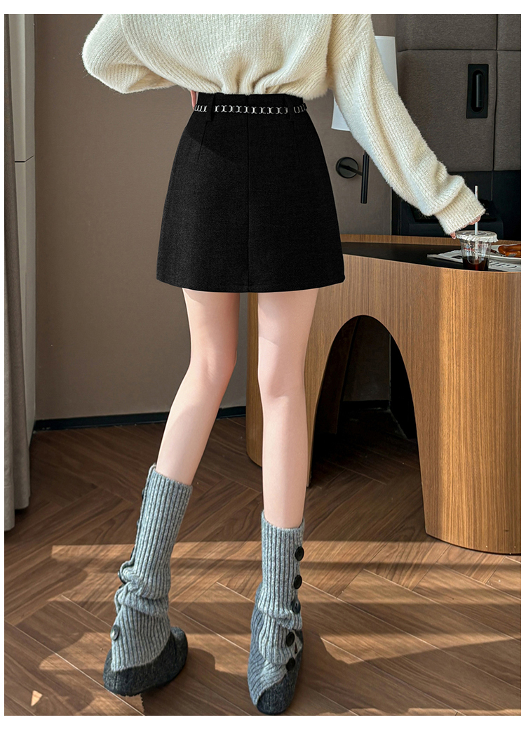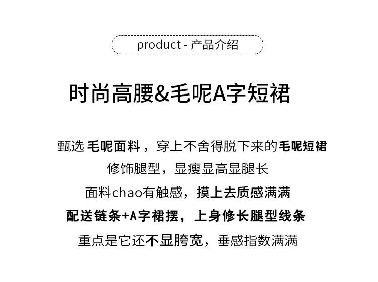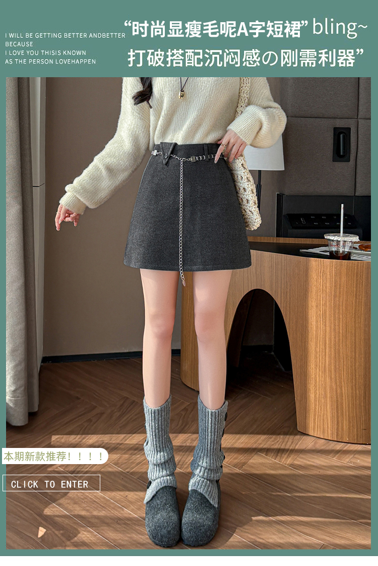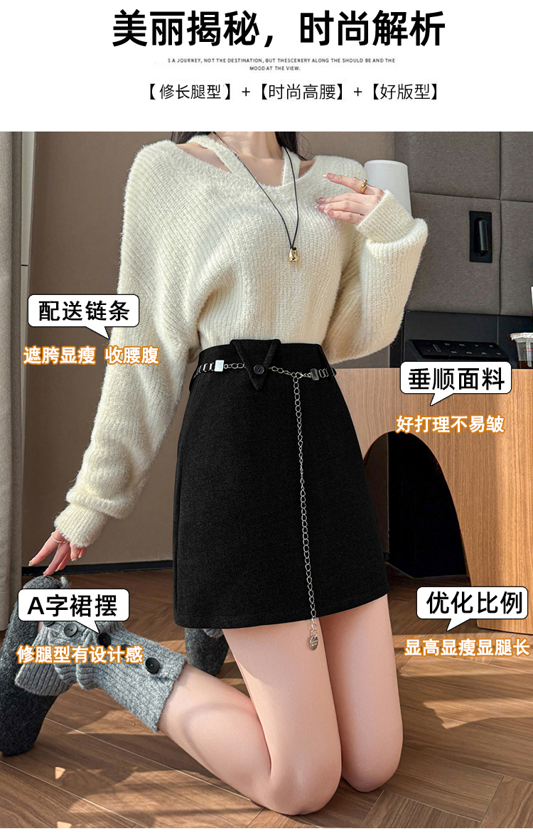 MY14208# 毛呢半身裙链条高腰A字裙显瘦包臀短裙女裝貨源服裝批發