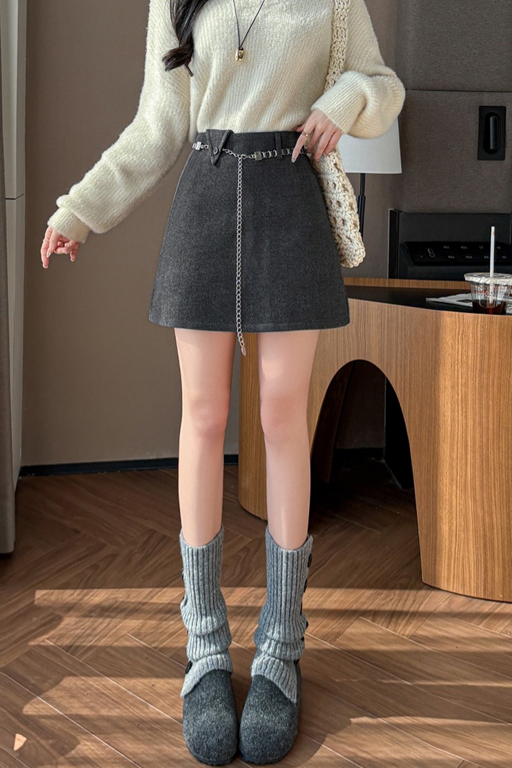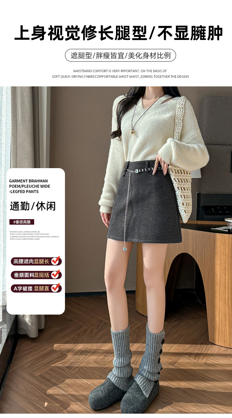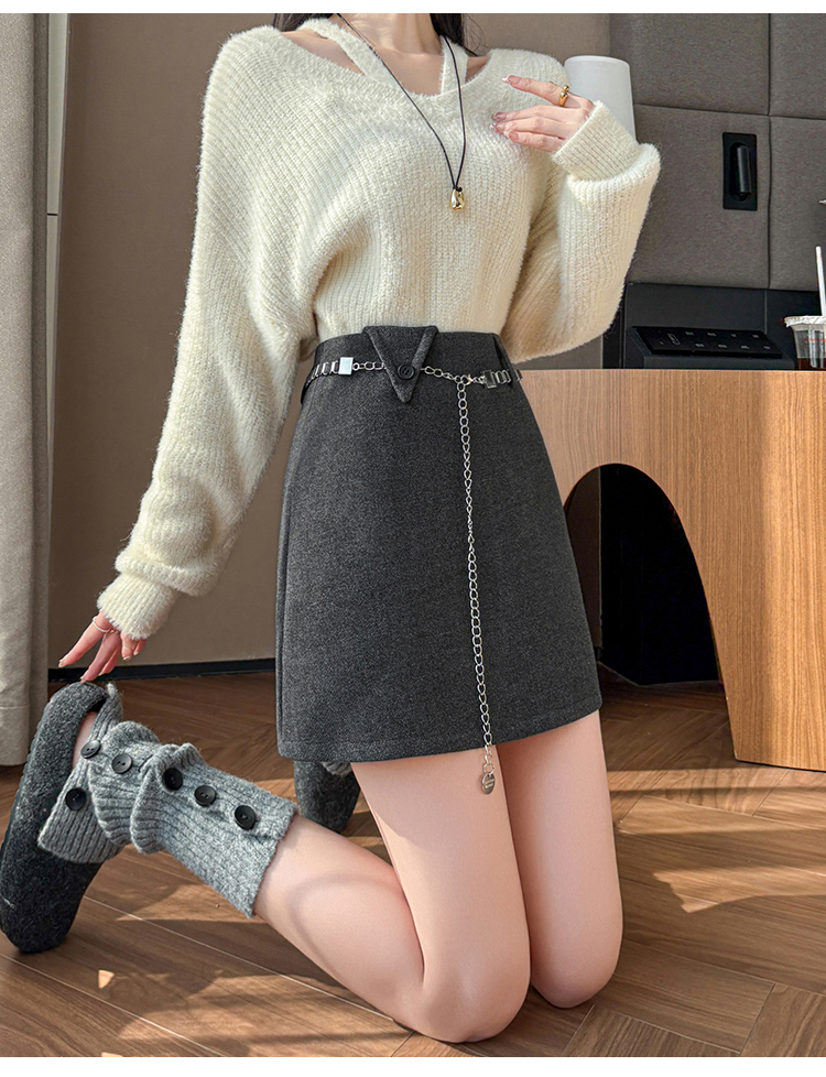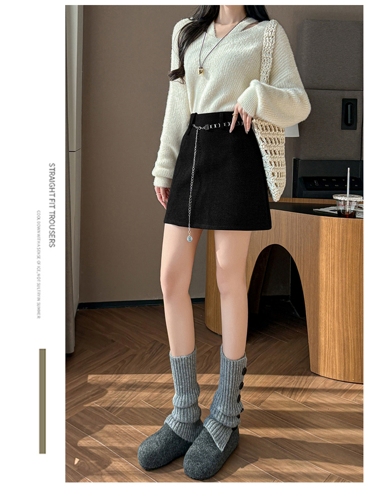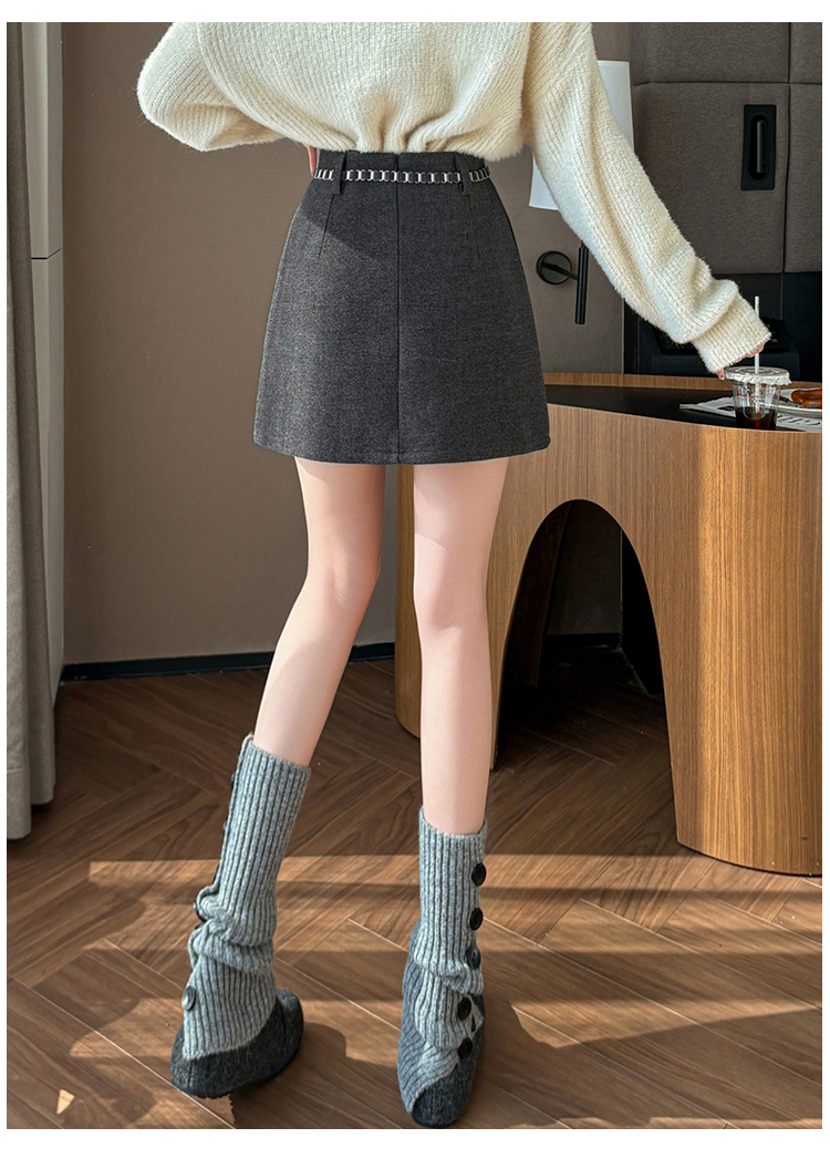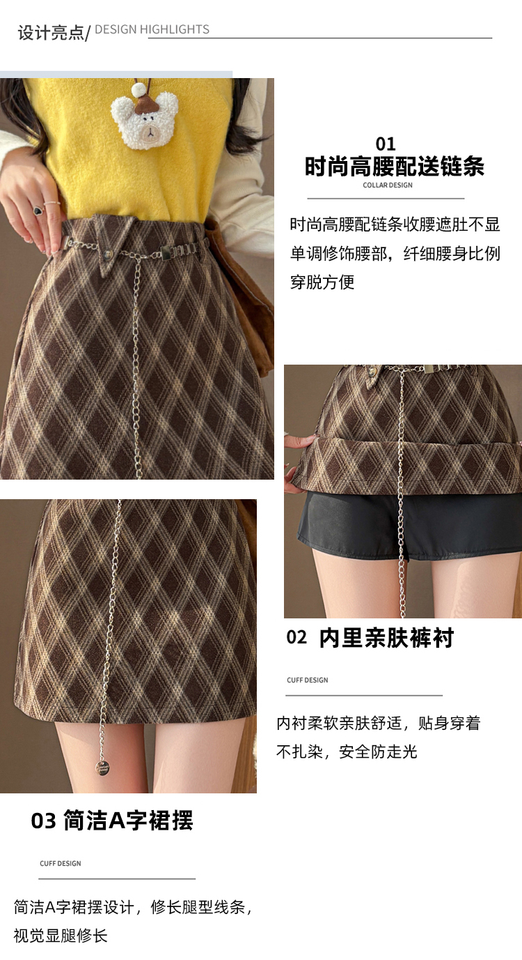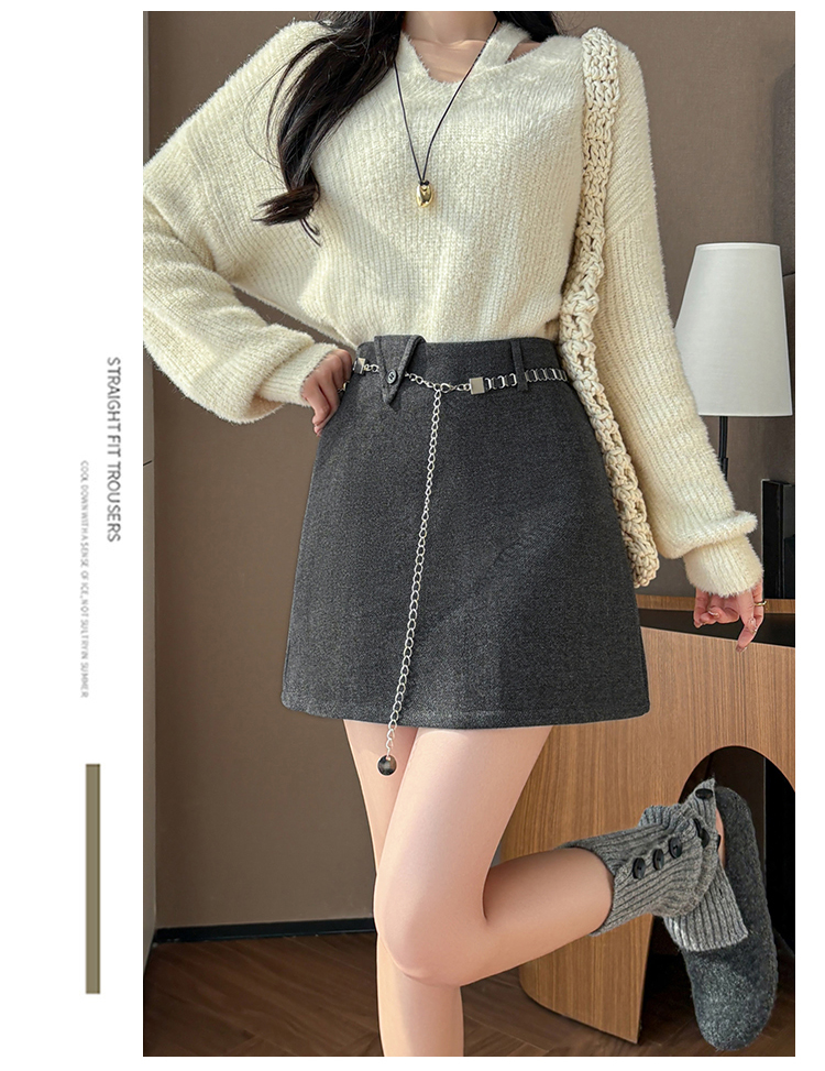 MY14208# 毛呢半身裙链条高腰A字裙显瘦包臀短裙女裝貨源服裝批發