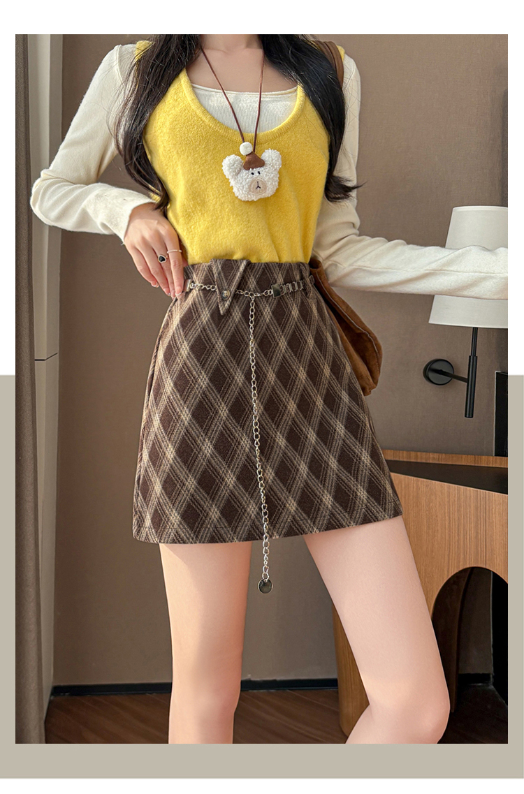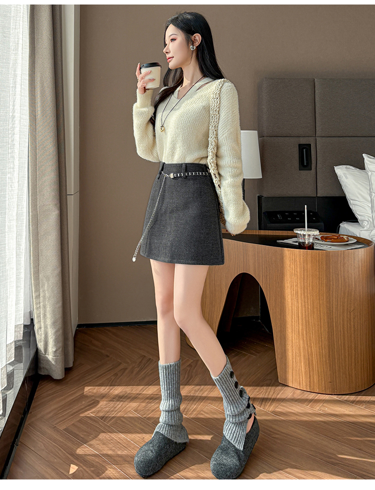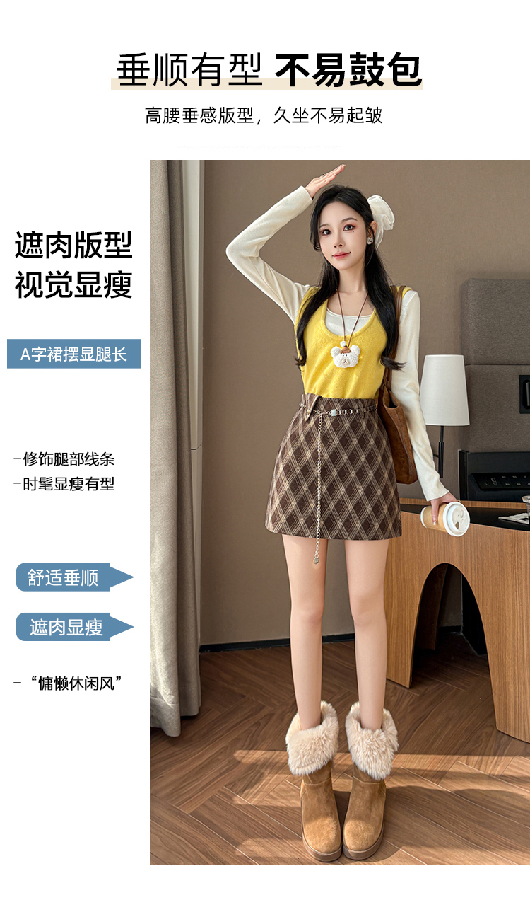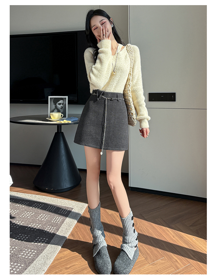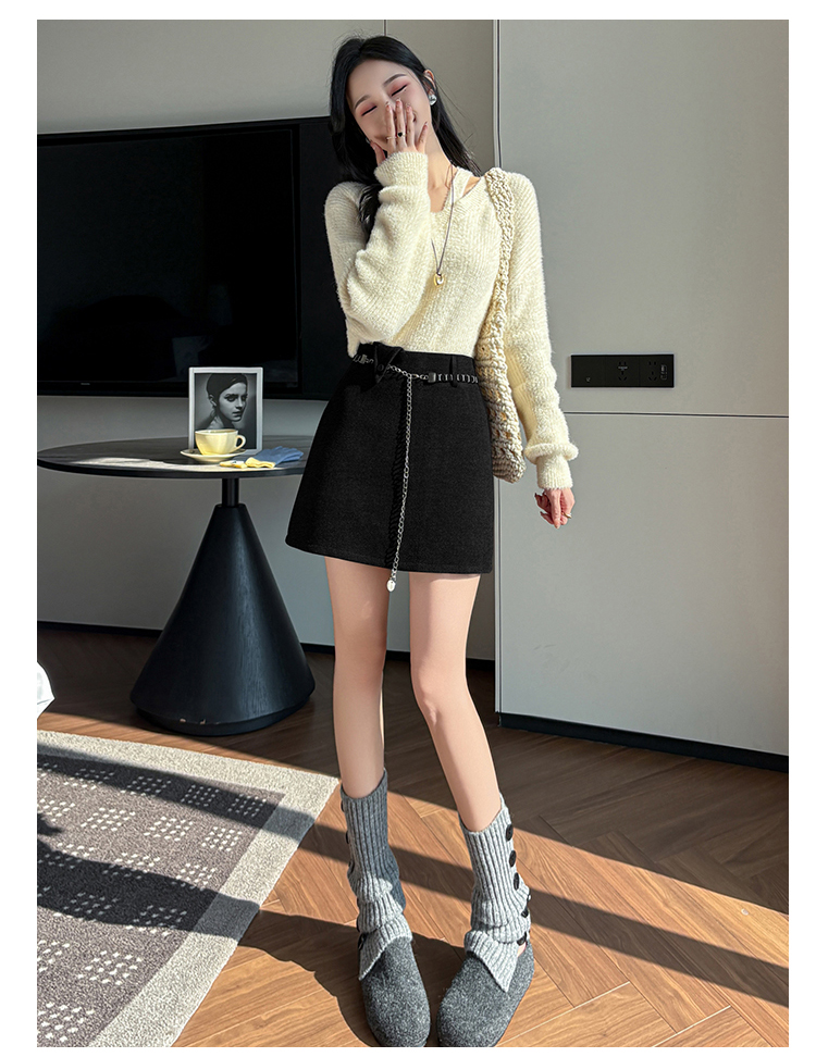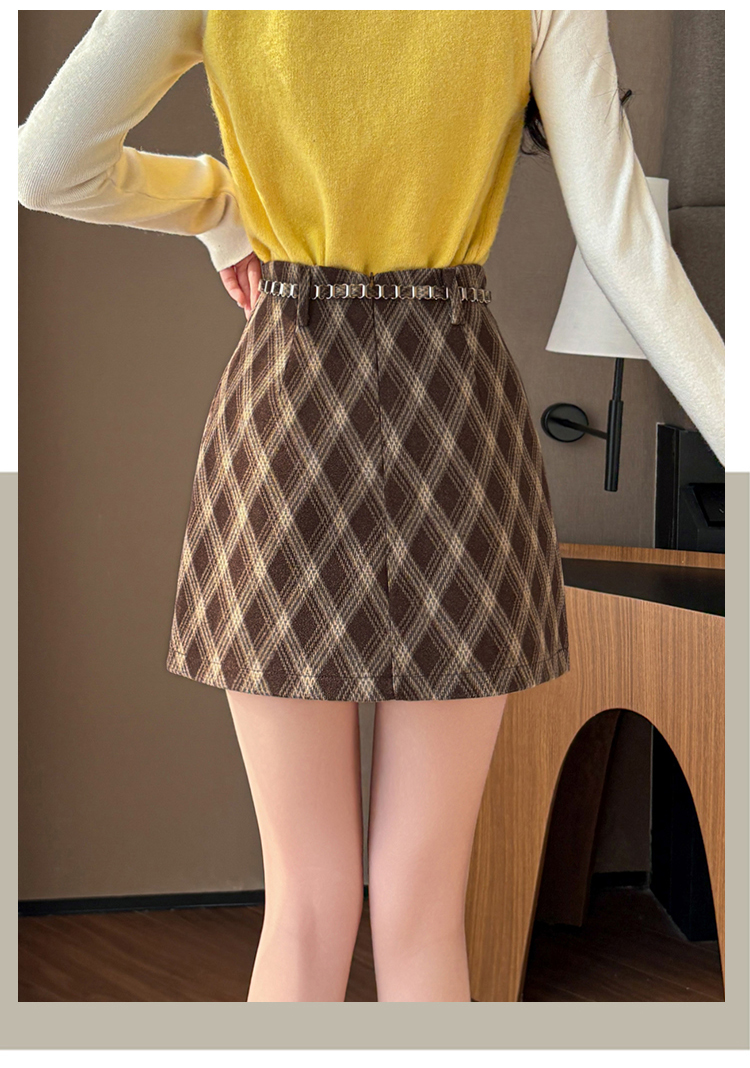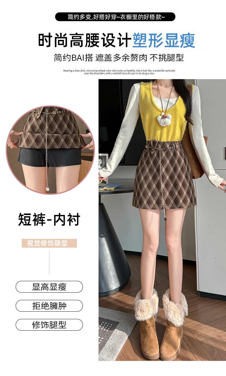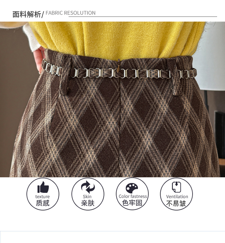 MY14208# 毛呢半身裙链条高腰A字裙显瘦包臀短裙女裝貨源服裝批發