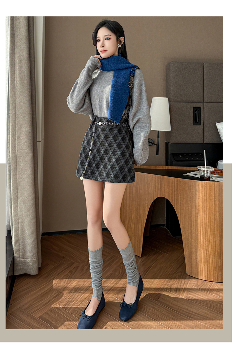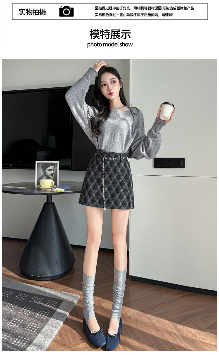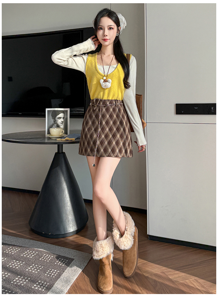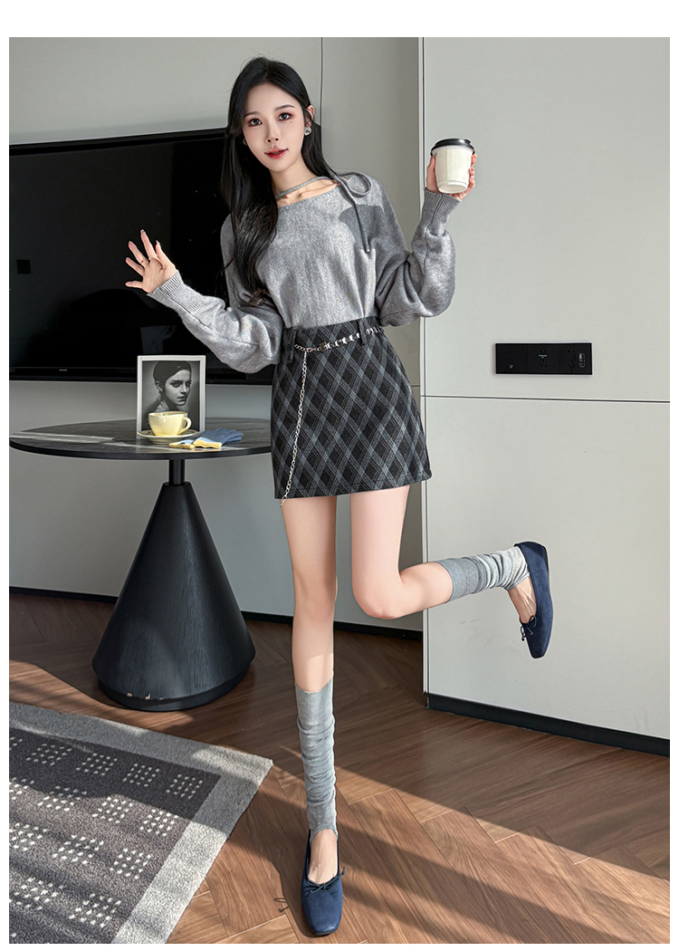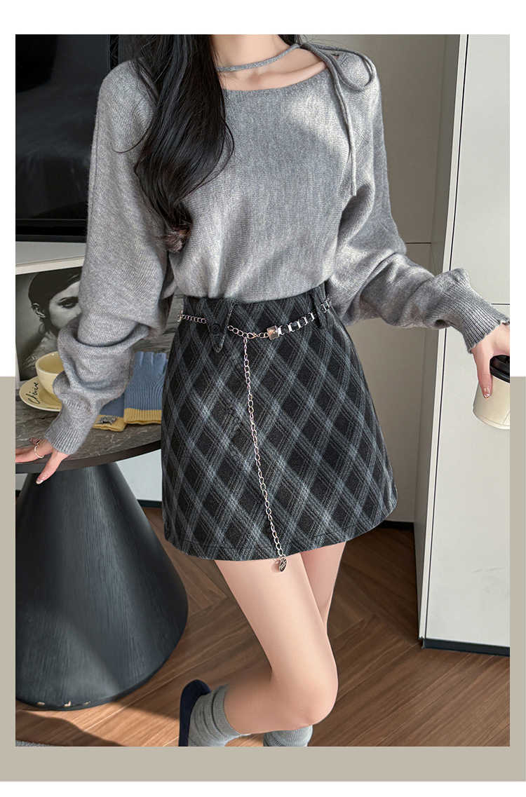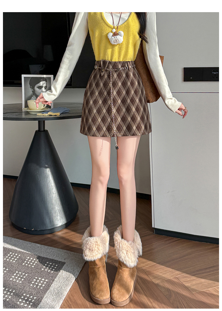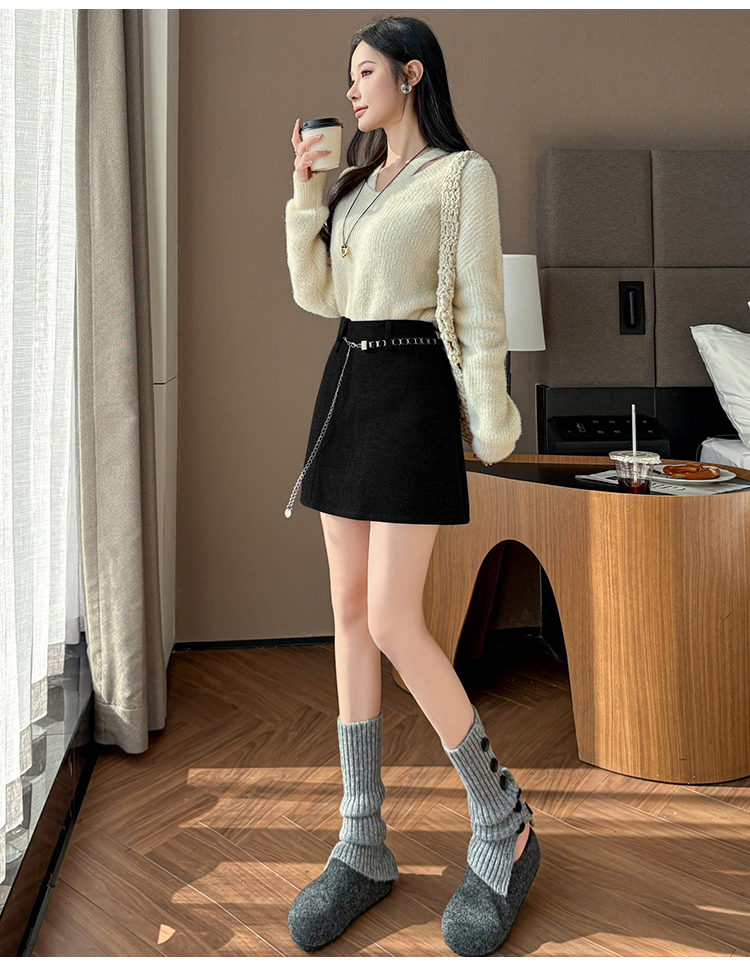 MY14208# 毛呢半身裙链条高腰A字裙显瘦包臀短裙女裝貨源服裝批發
