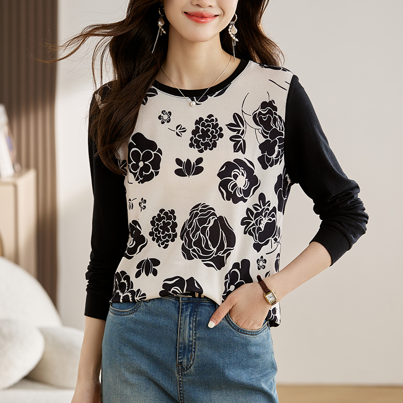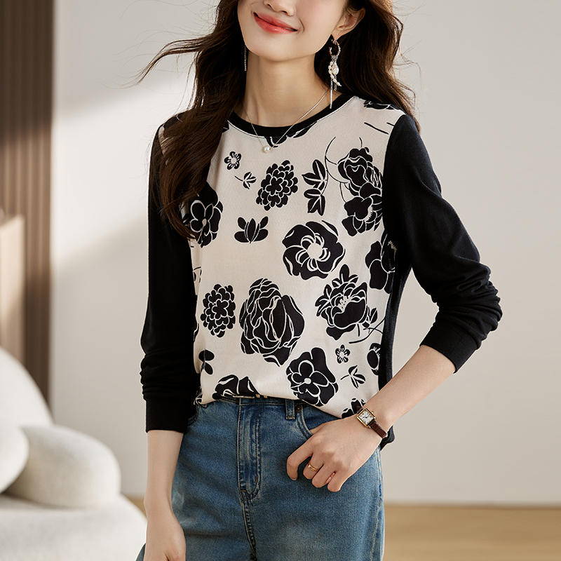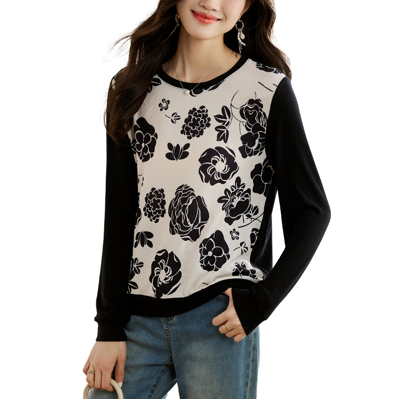 MY14215# 新款针织女长袖新款高端印花套头休闲圆领上衣女裝貨源服裝批發
