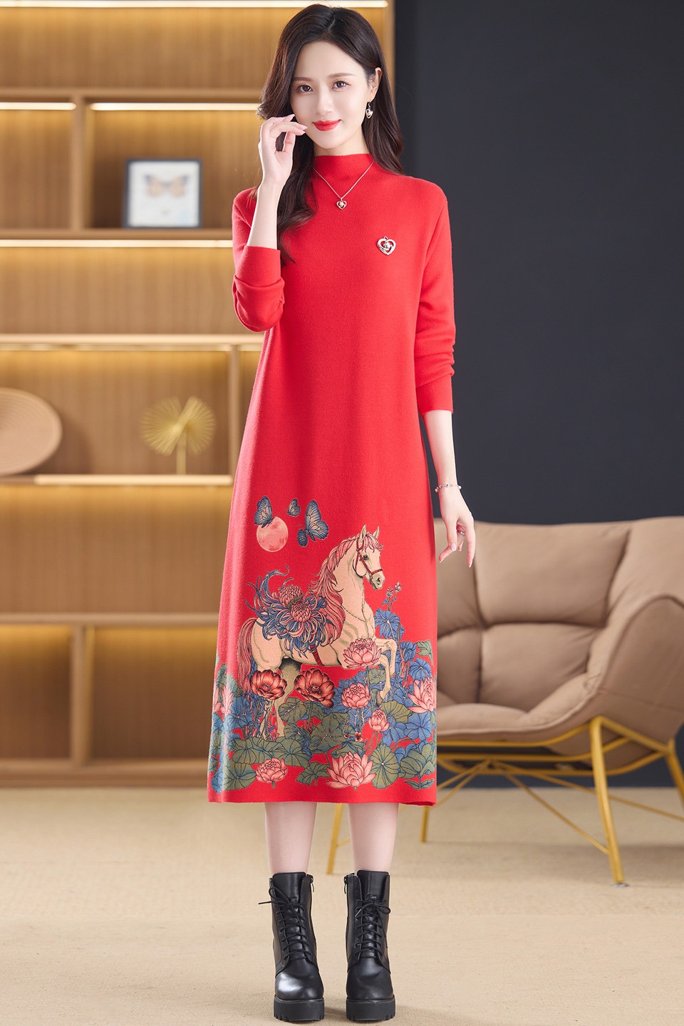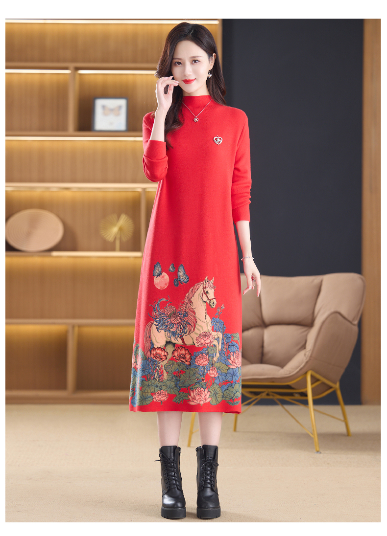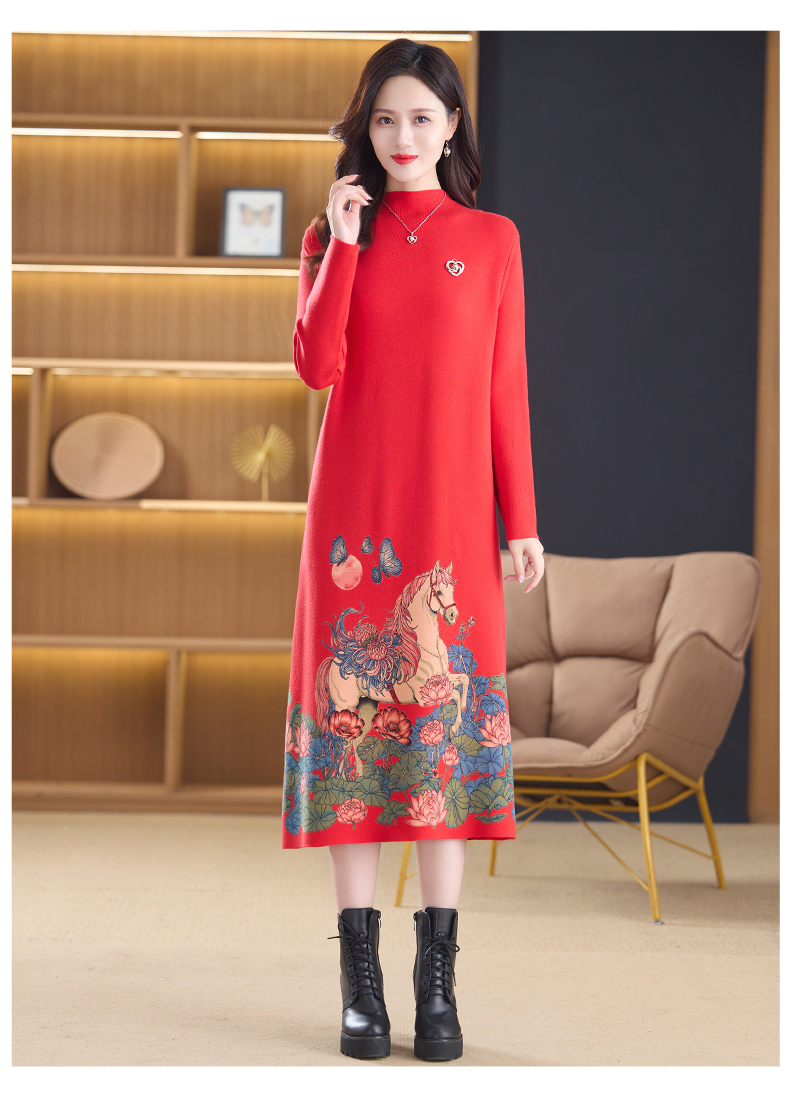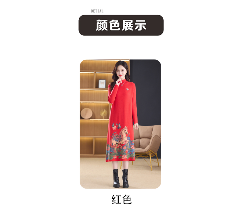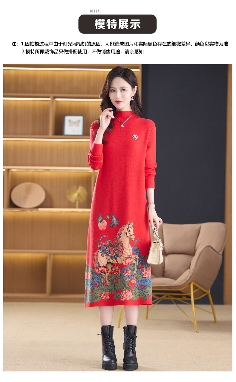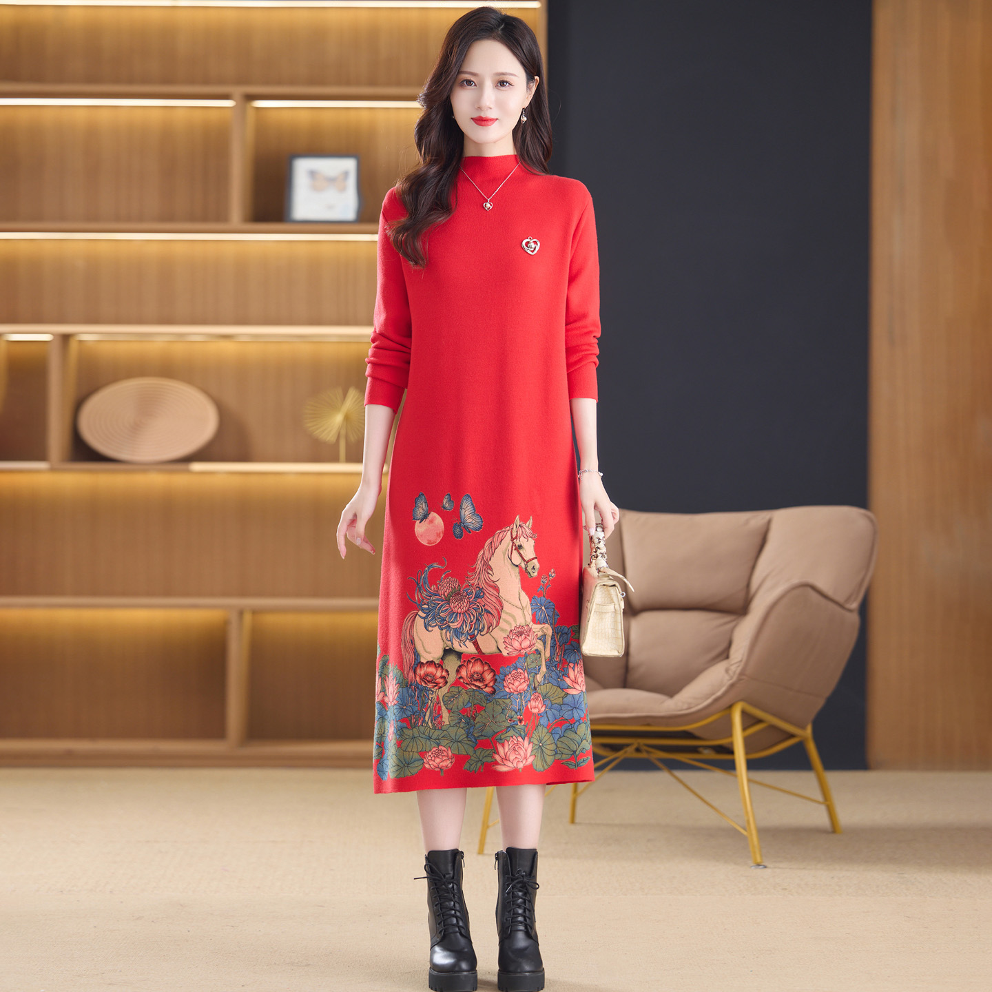 MY14393# 针织印花连衣裙新款女装洋气中长款打底毛衣裙子气质显瘦女裝貨源服裝批發