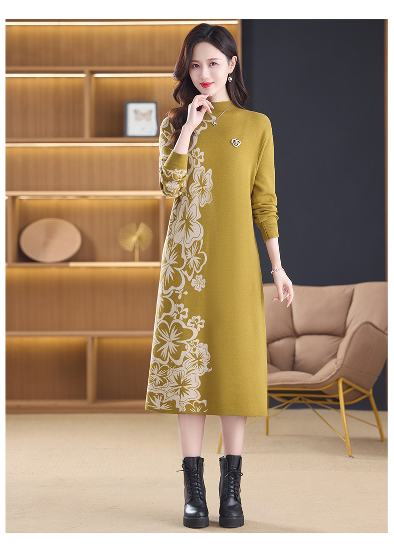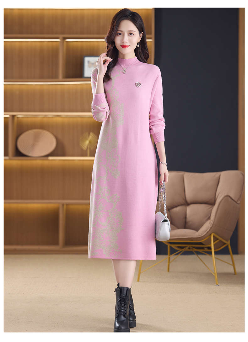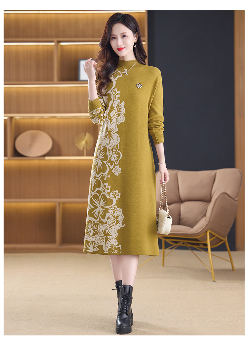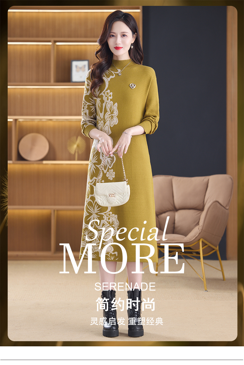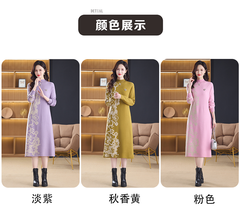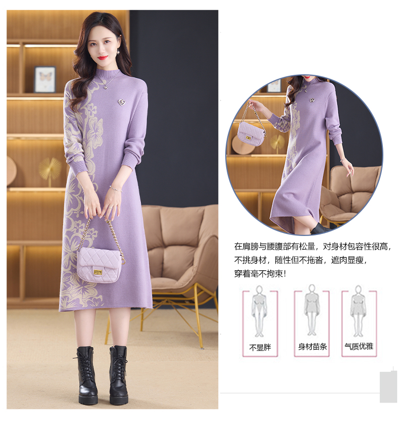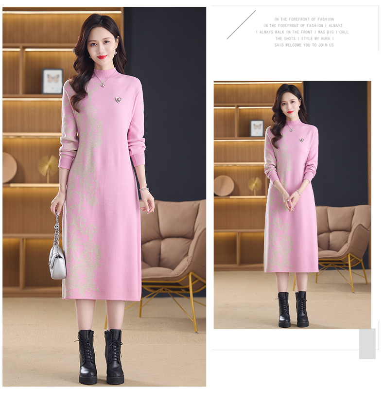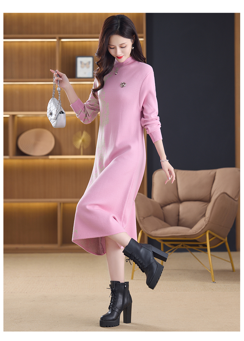 MY14397# 洋气新款女装毛衣裙半高领宽松中长款针织打底连衣裙女裝貨源服裝批發