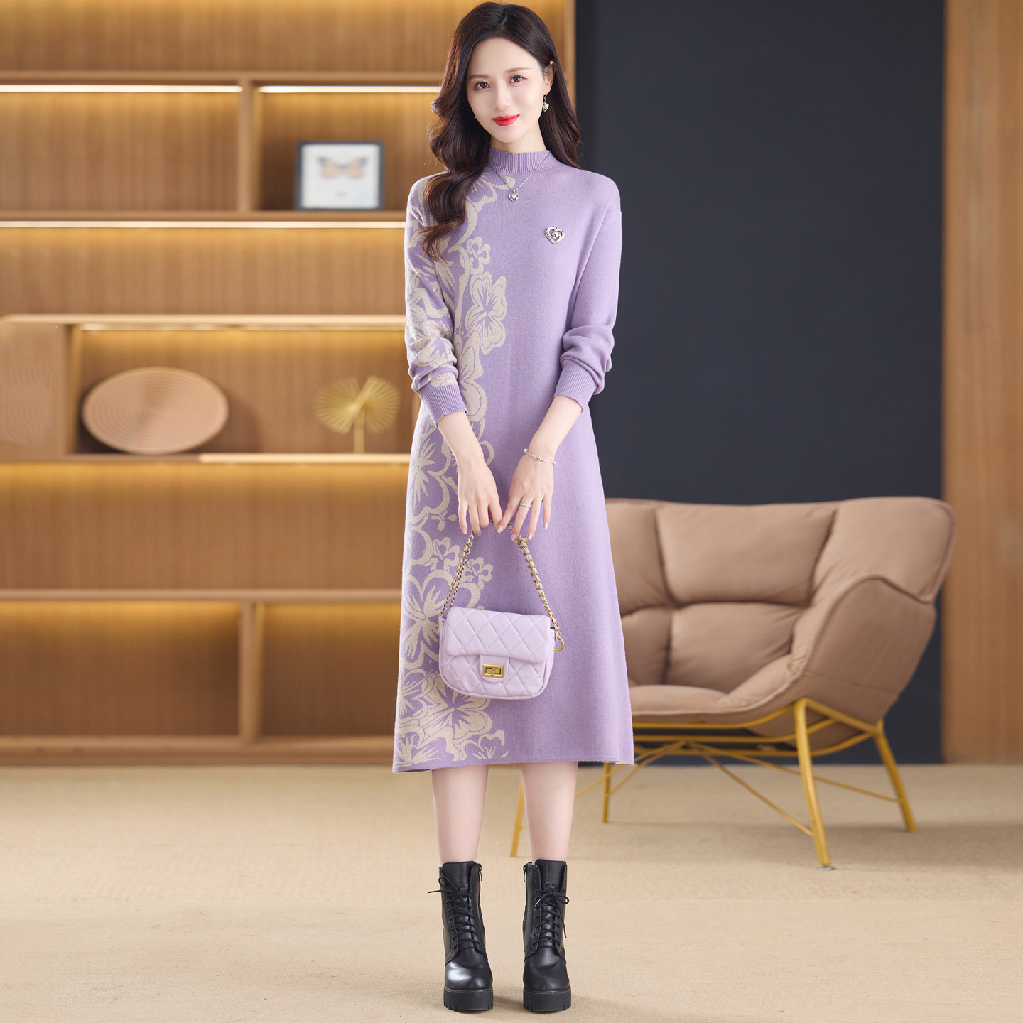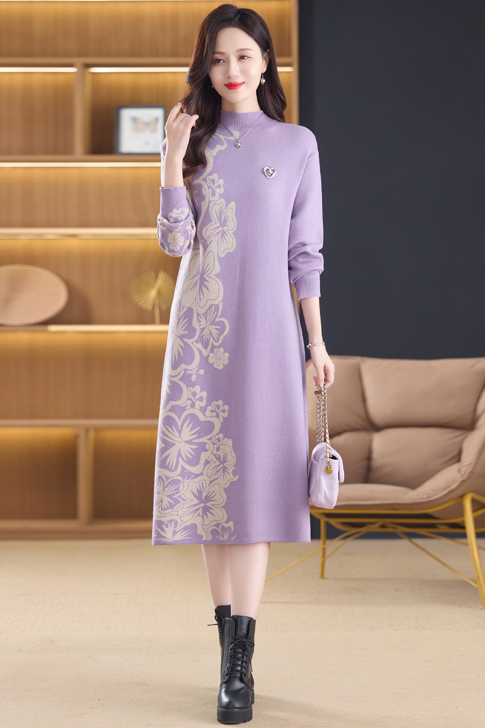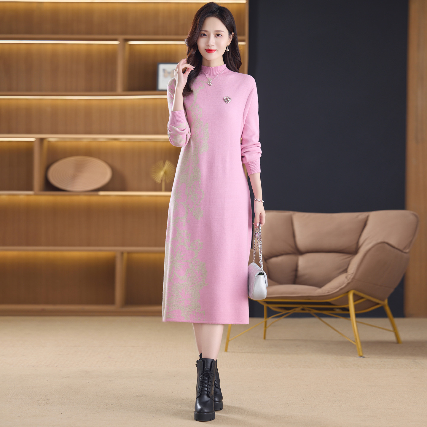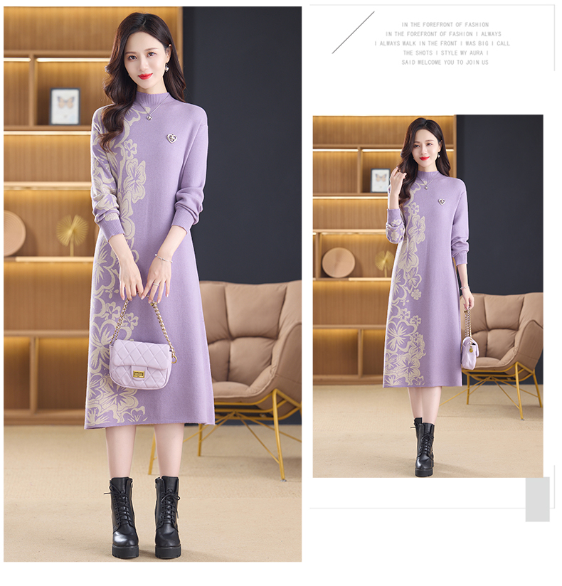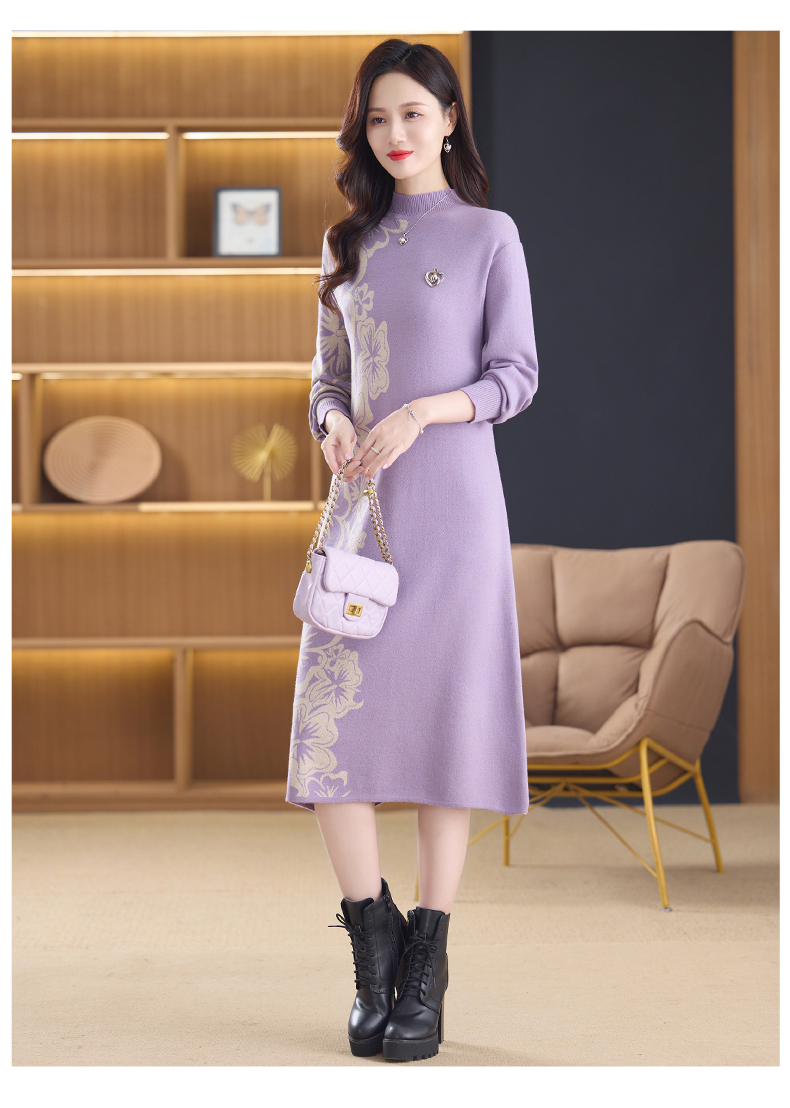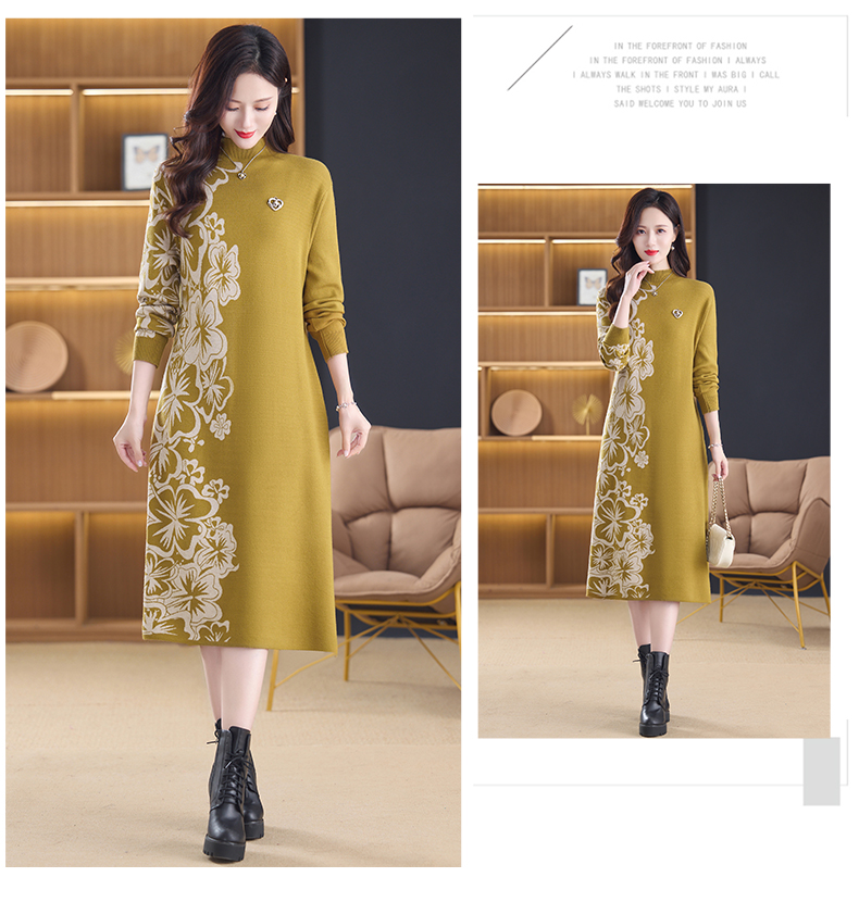 MY14397# 洋气新款女装毛衣裙半高领宽松中长款针织打底连衣裙女裝貨源服裝批發