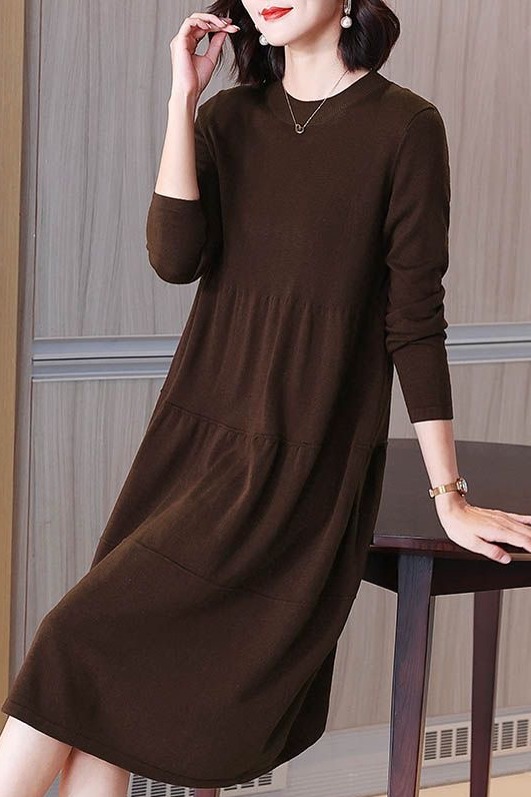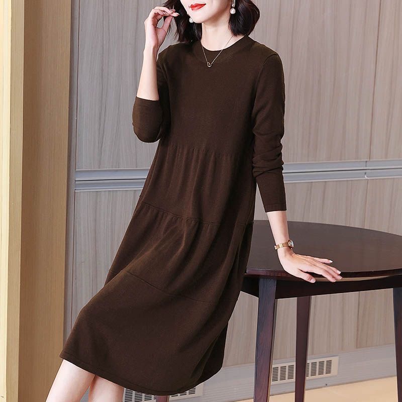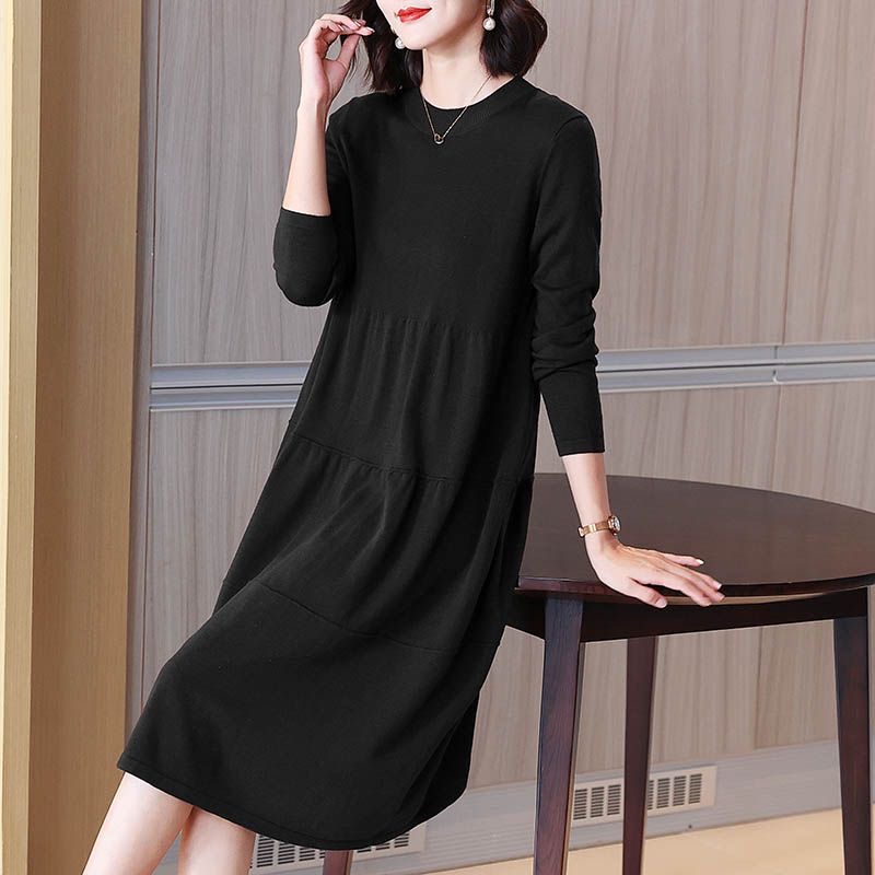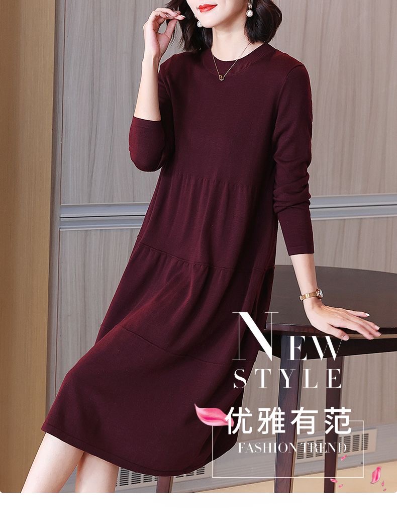 MY14399# 针织连衣裙女大码高端洋气胖mm长袖针织裙女裝貨源服裝批發