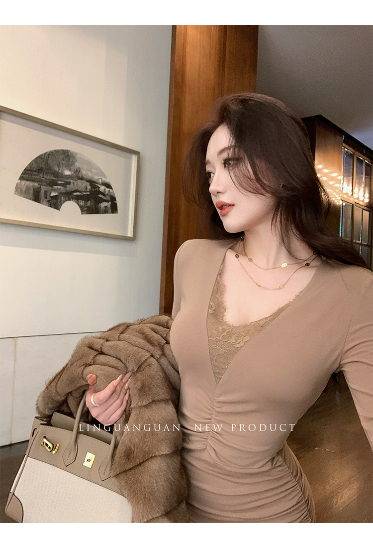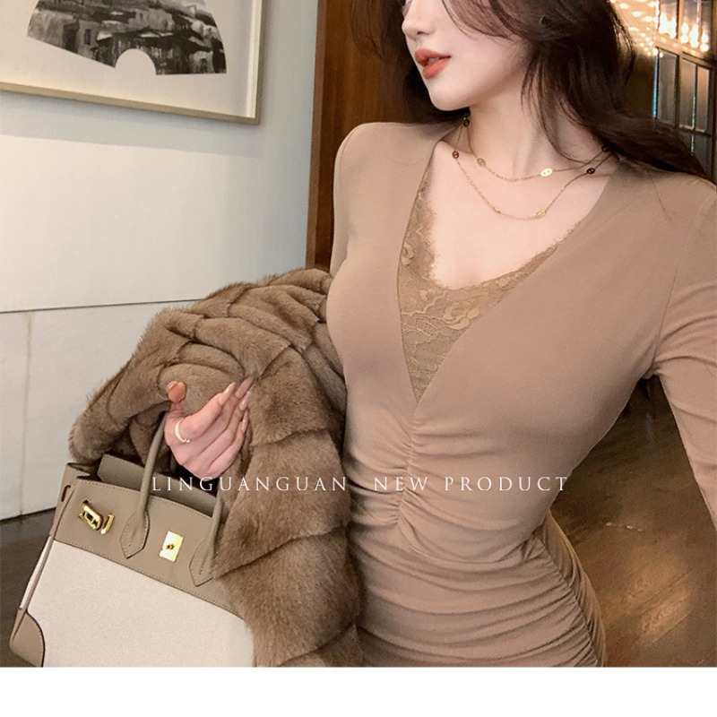 MY14432# CUTE专属美拉德色系辣妹秋季气质修身包臀裙长袖打底连衣裙女裝貨源服裝批發