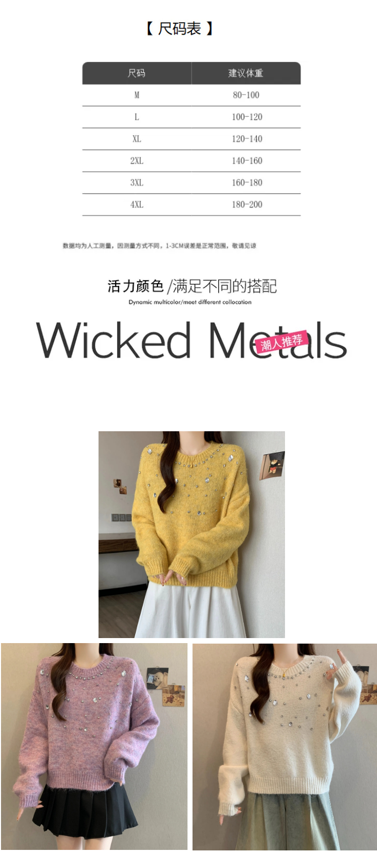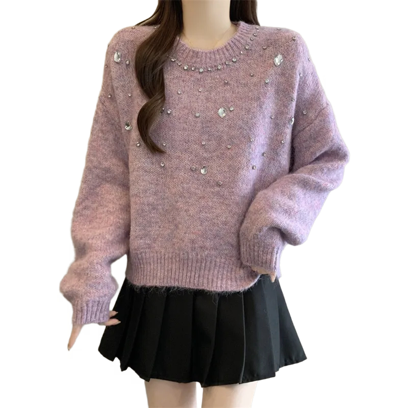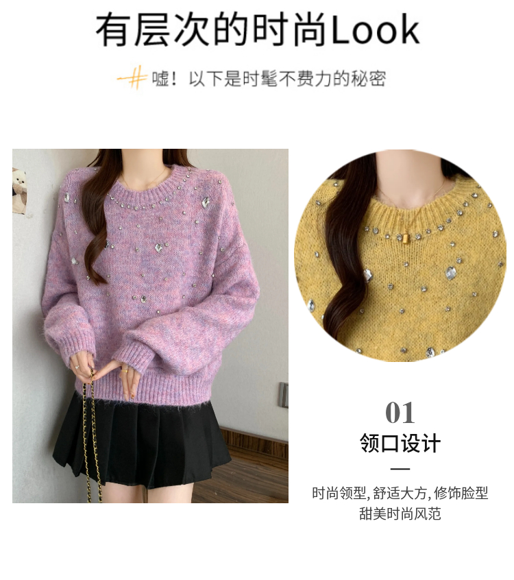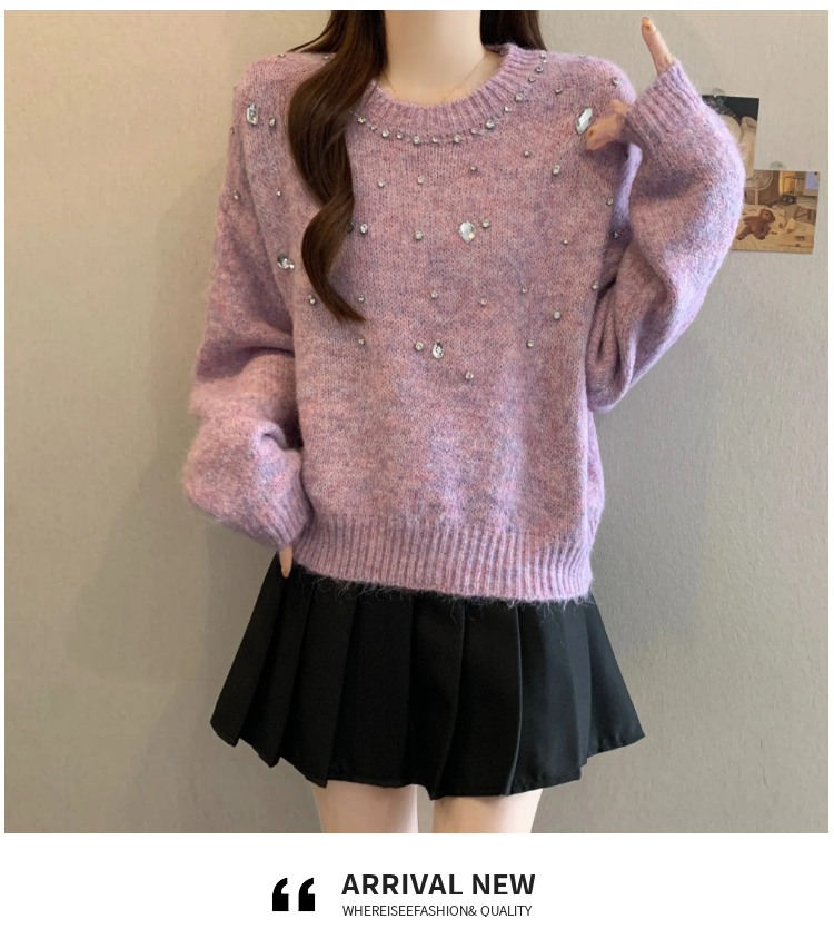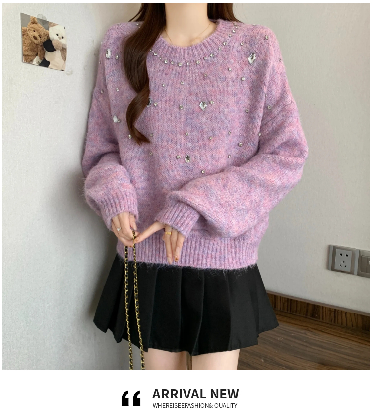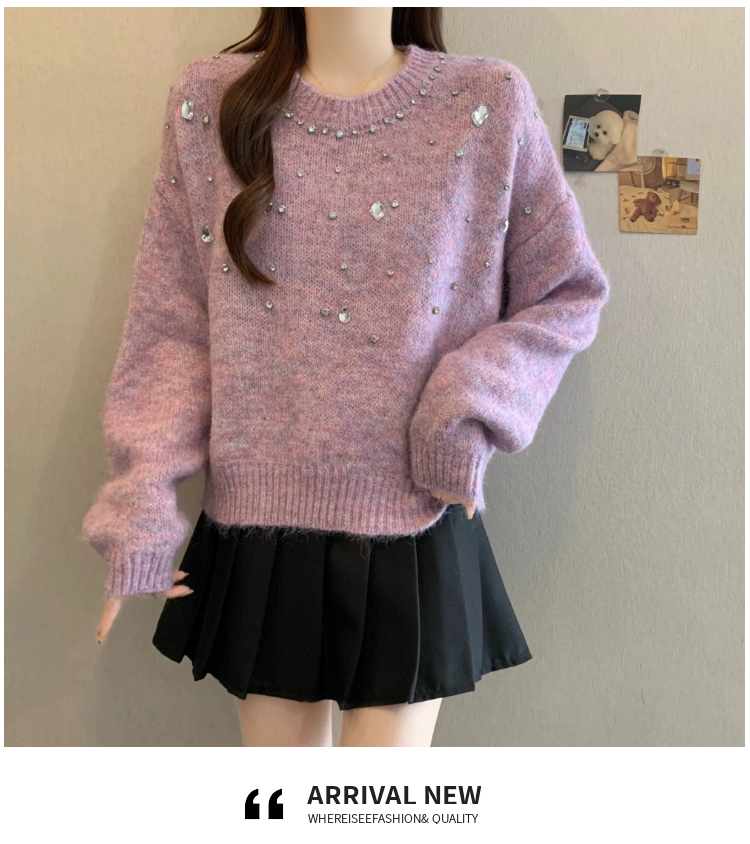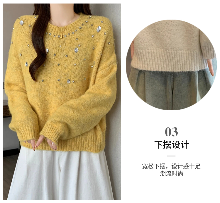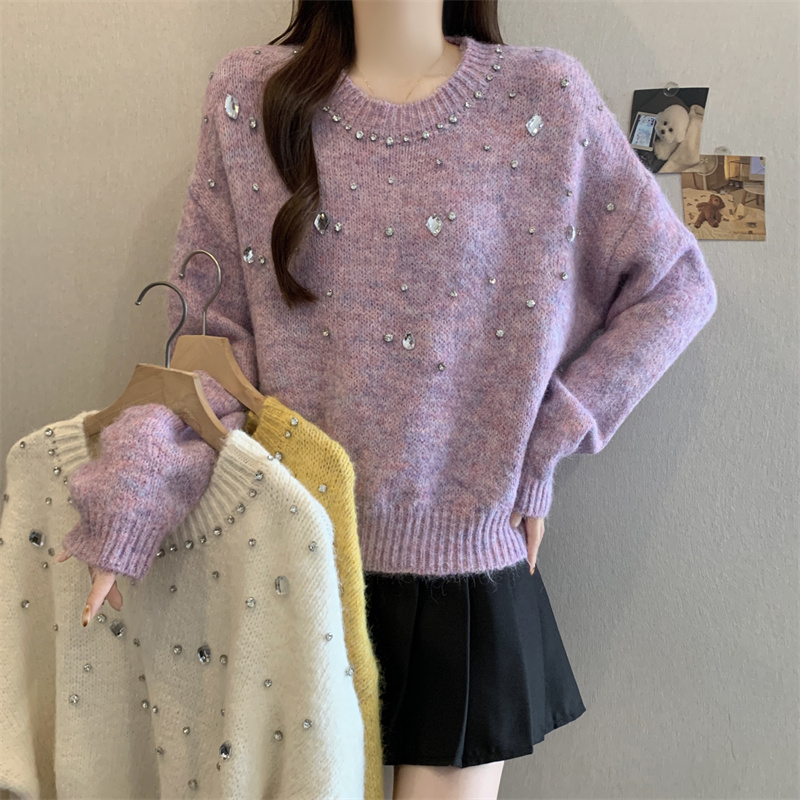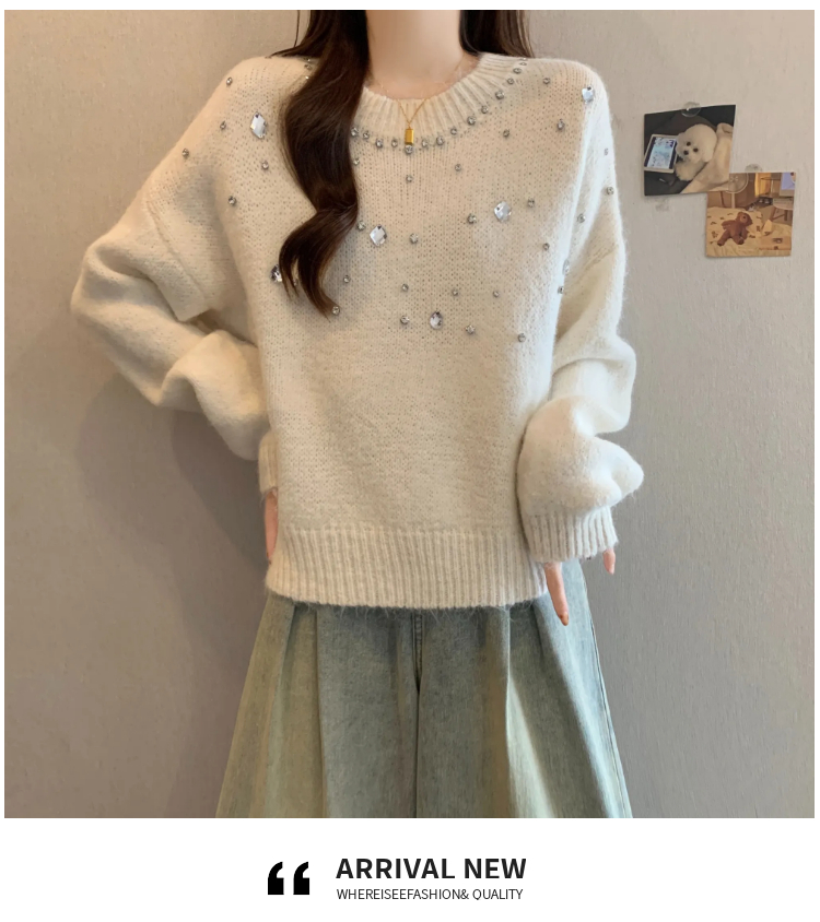 MY14438# 大码烫钻针织衫毛衣女款慵懒风休闲宽松显瘦巨好看毛衣女女裝貨源服裝批發