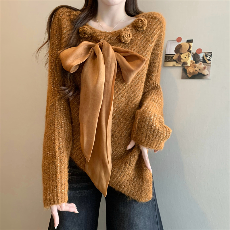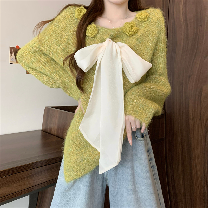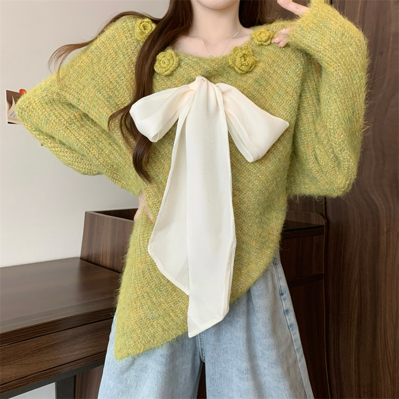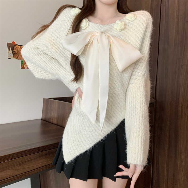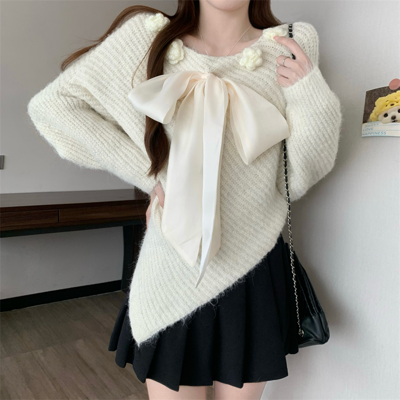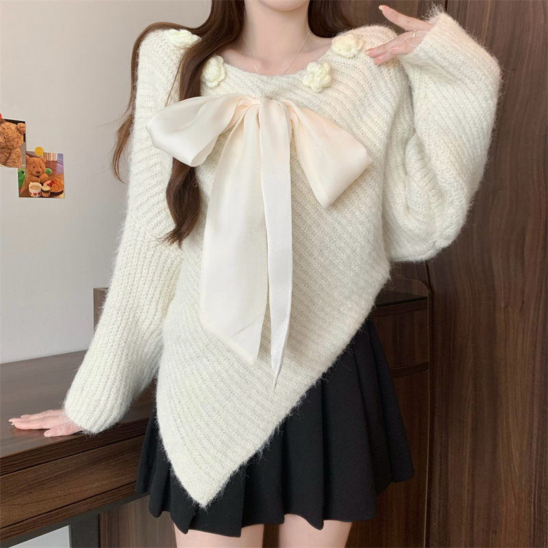 MY14448# 新版韩风设计感不规则立体花朵针织衫毛衣女裝貨源服裝批發