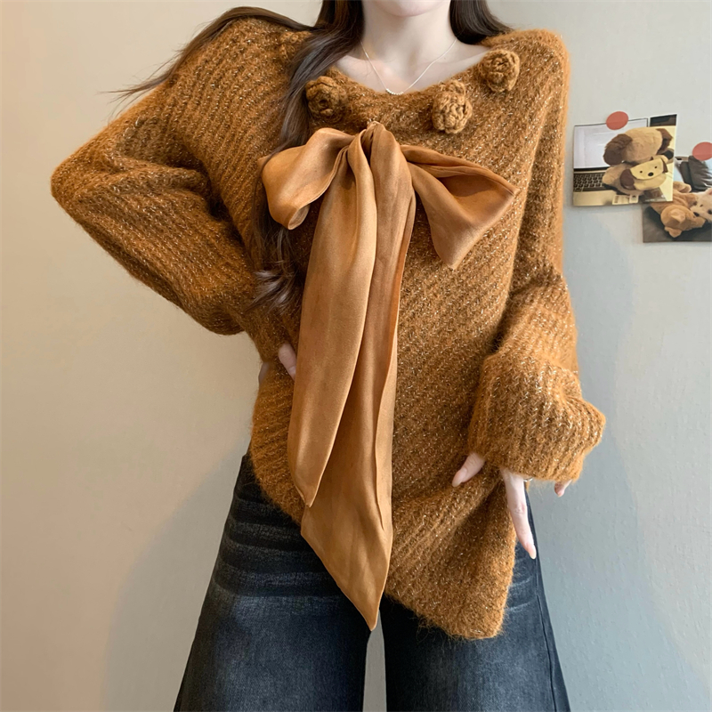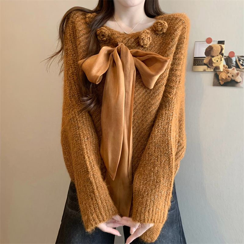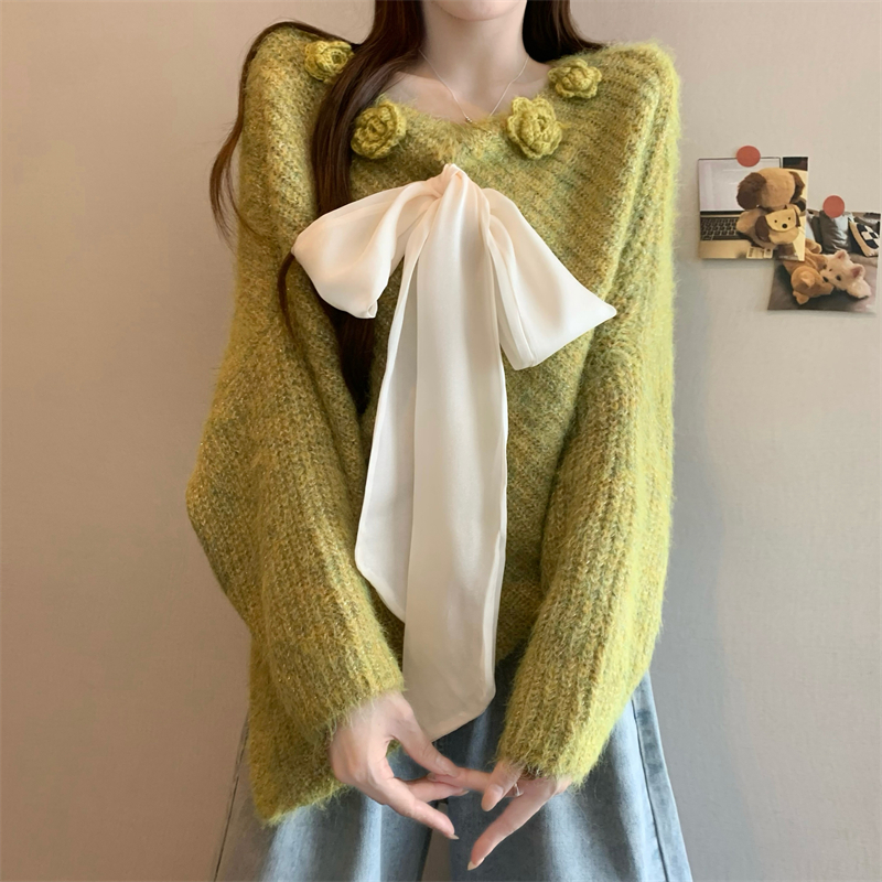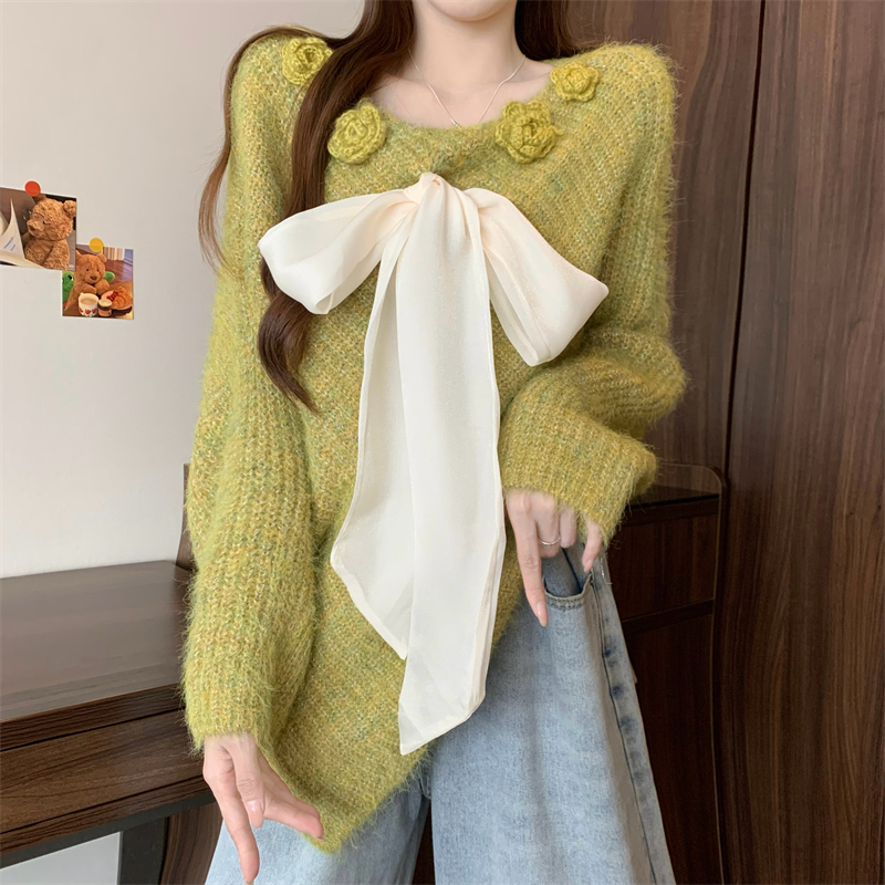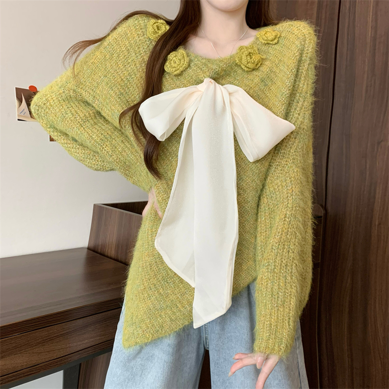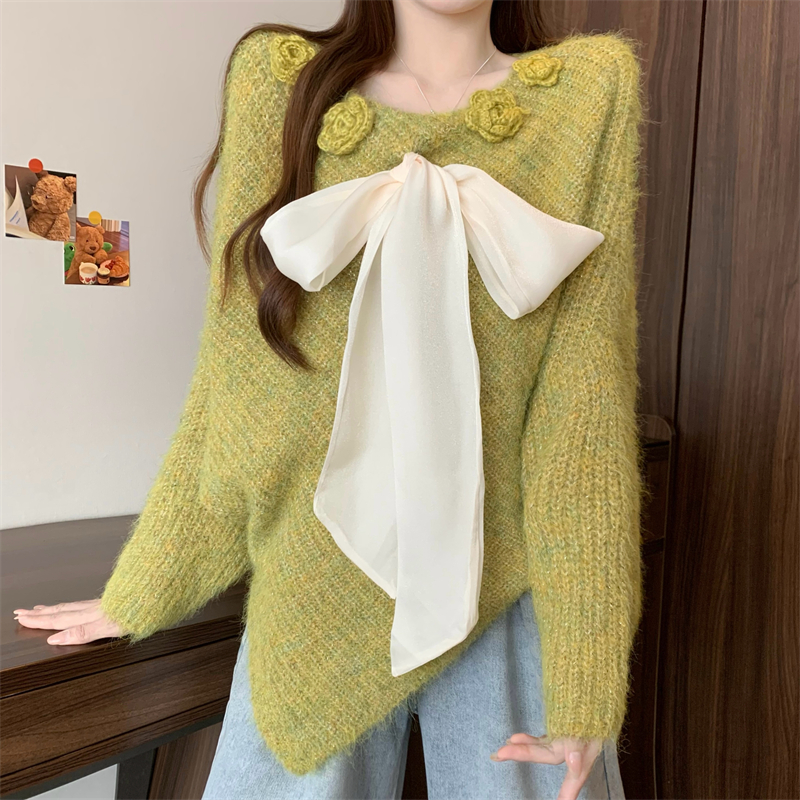 MY14448# 新版韩风设计感不规则立体花朵针织衫毛衣女裝貨源服裝批發