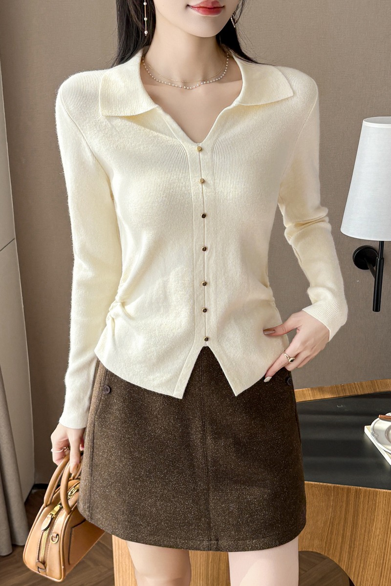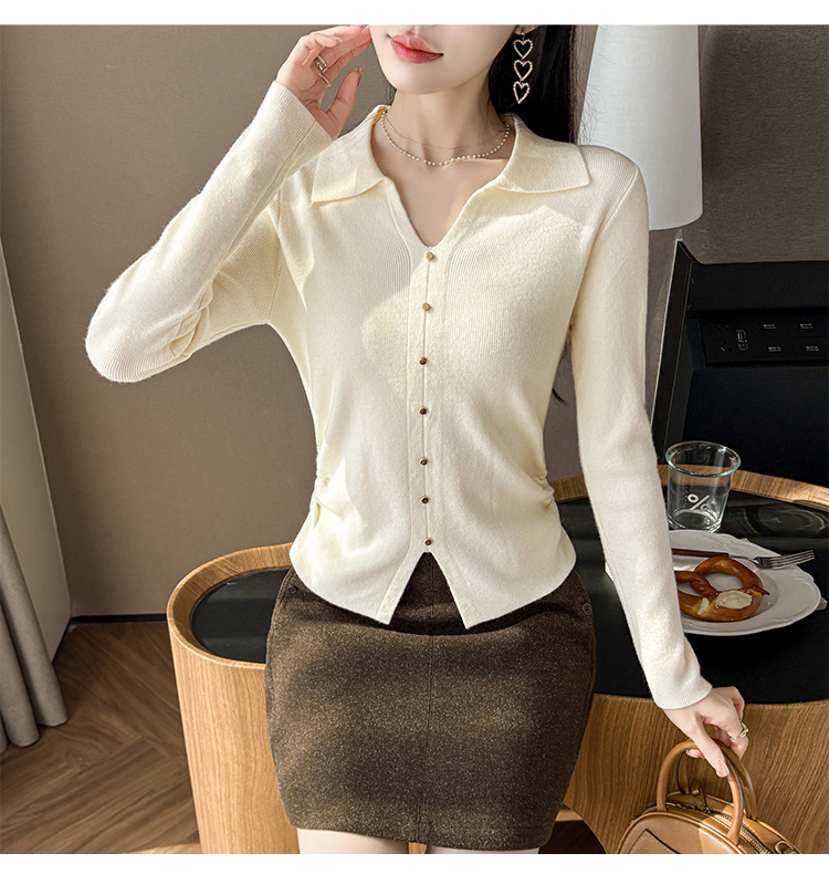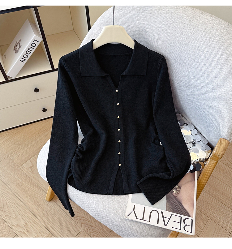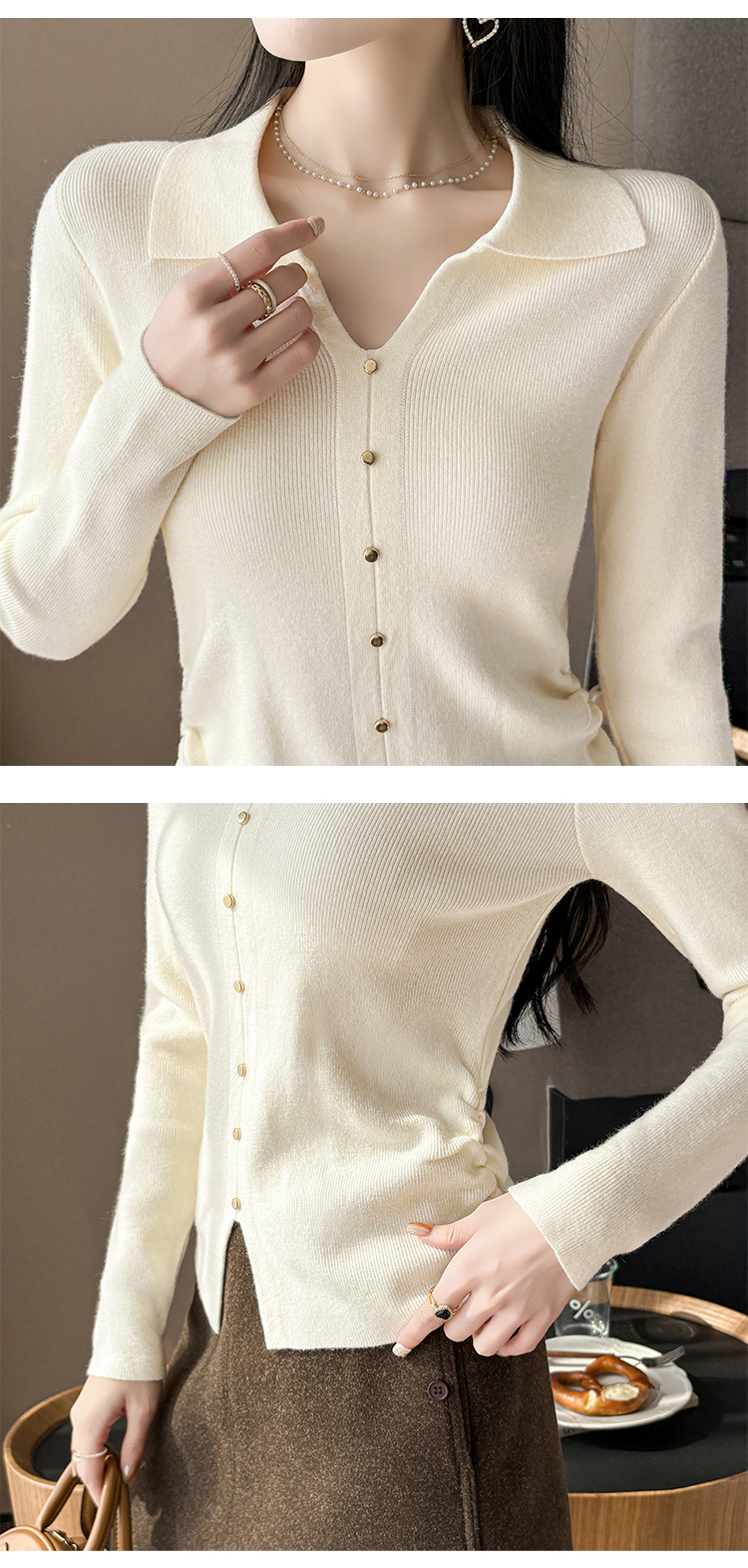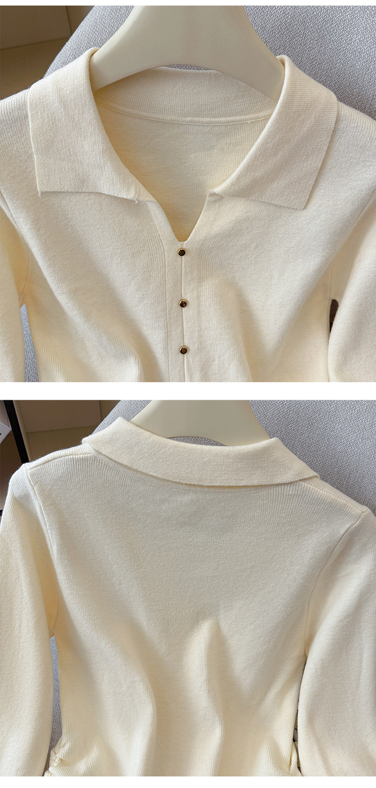 MY14453# 长袖毛衣polo领洋气针织衫女设计感排扣打底衫内搭外穿女裝貨源服裝批發