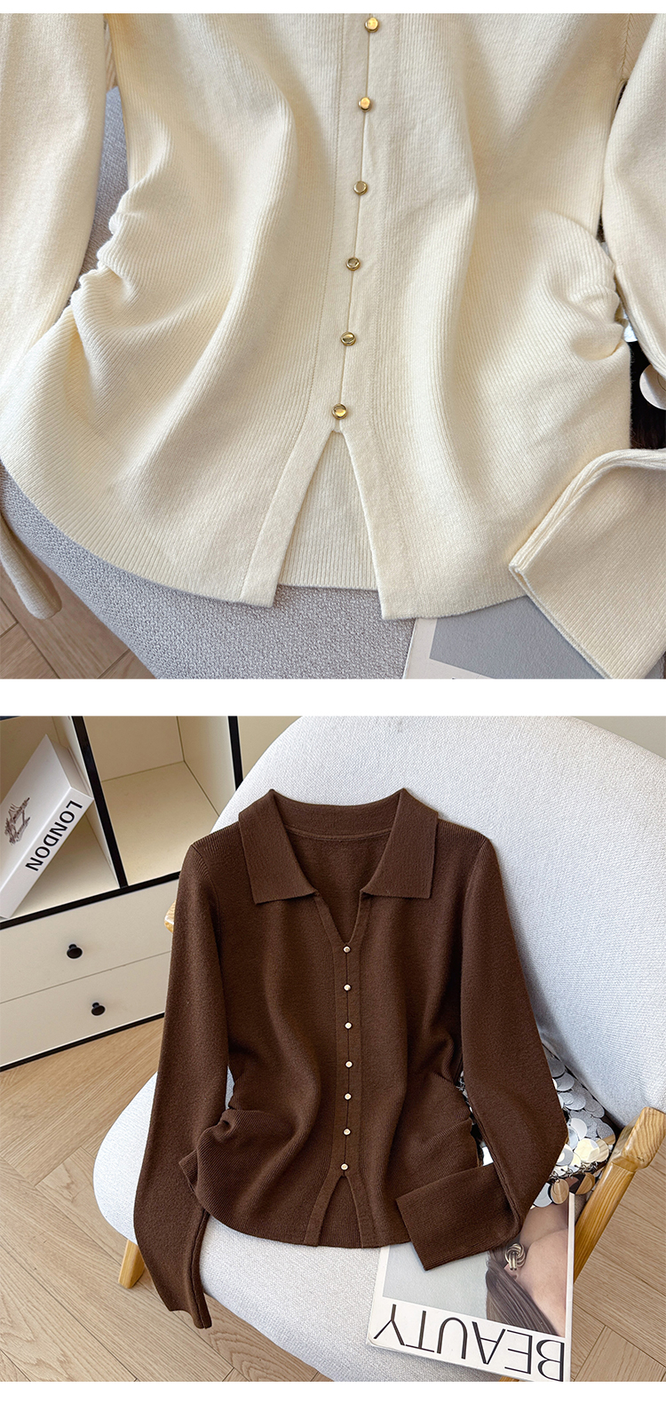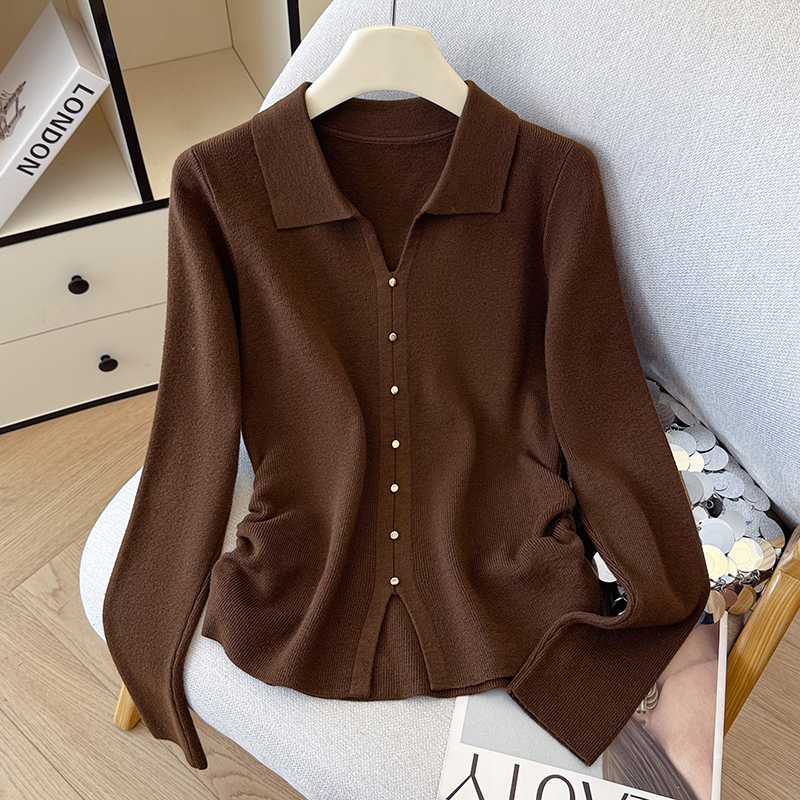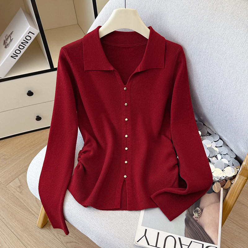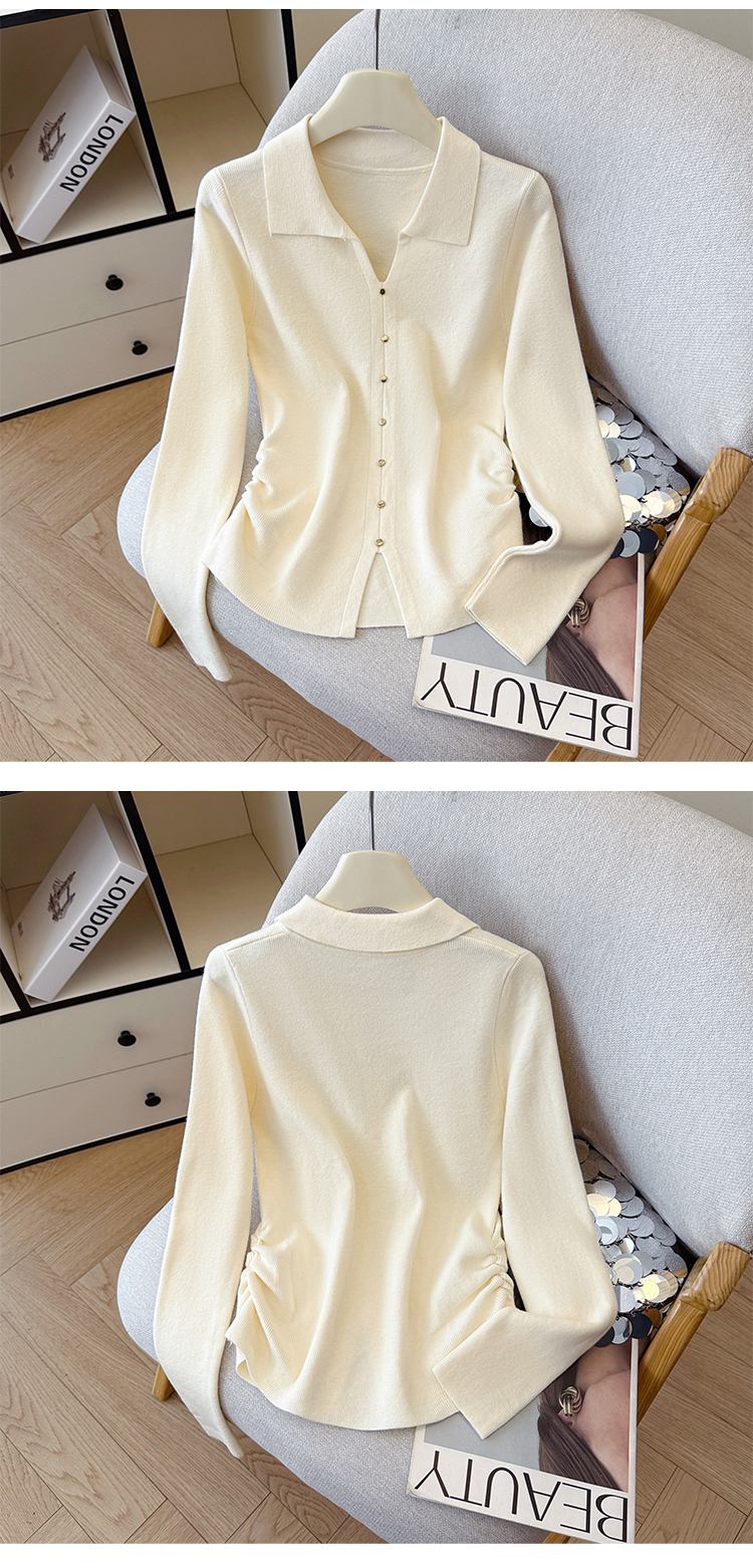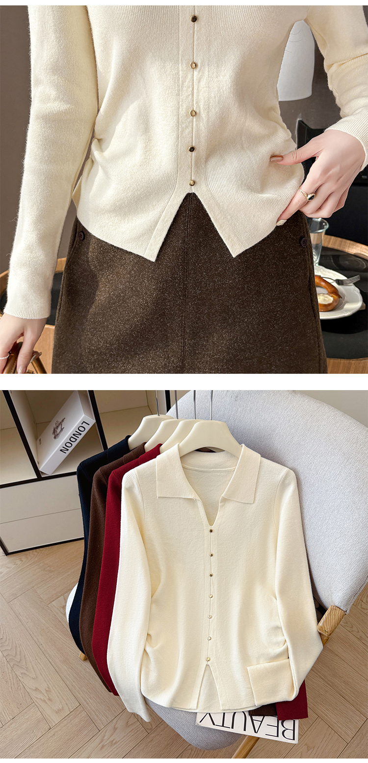 MY14453# 长袖毛衣polo领洋气针织衫女设计感排扣打底衫内搭外穿女裝貨源服裝批發