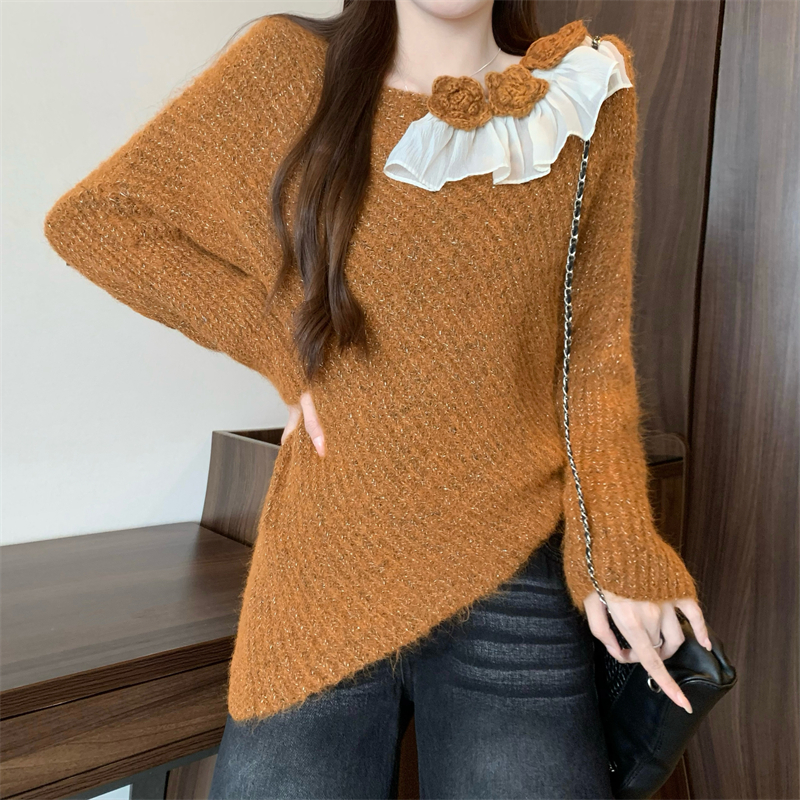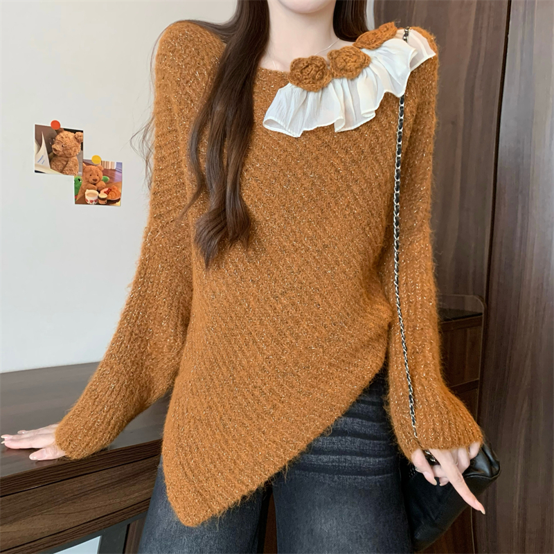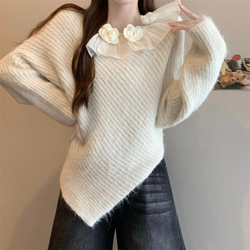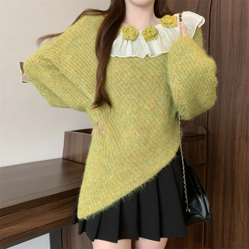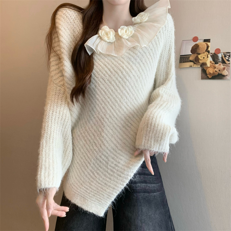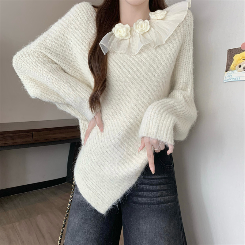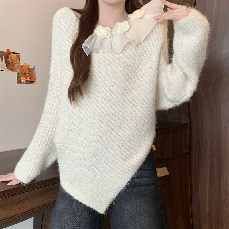 MY14458# 新版韩风设计感不规则立体花朵针织衫毛衣女裝貨源服裝批發